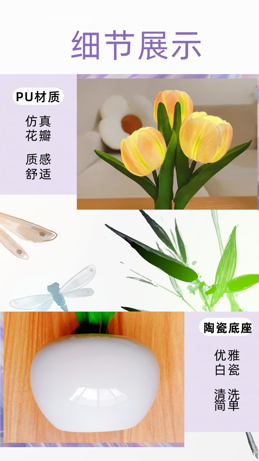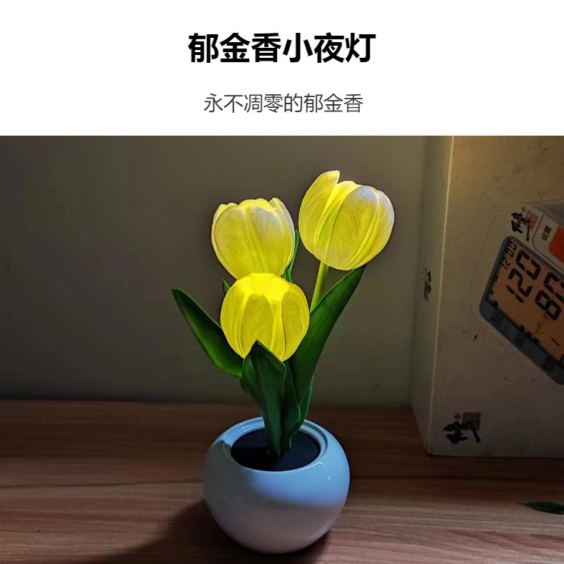 새로운 led 튤립 야간 조명 침실 침대 옆 시뮬레이션 꽃다발 장식 분위기 램프 아버지의 날 창조적 인 선물
