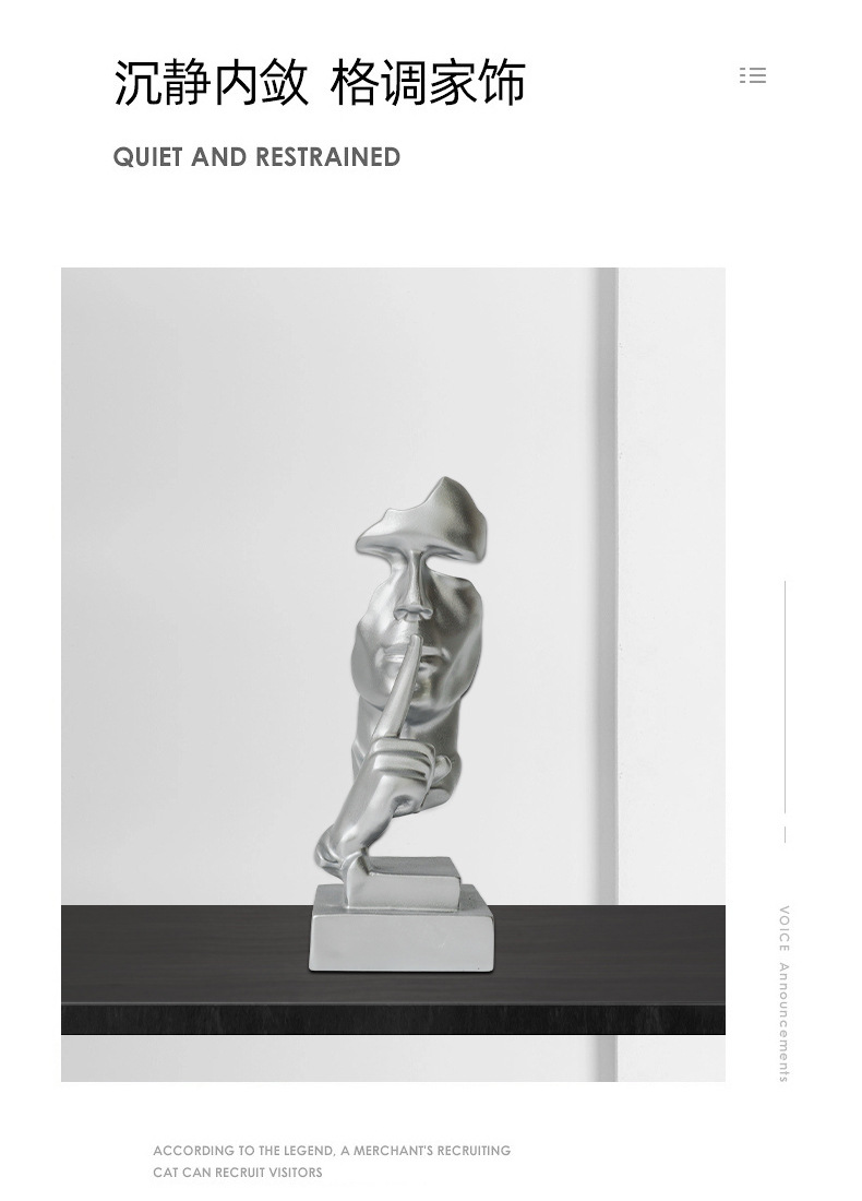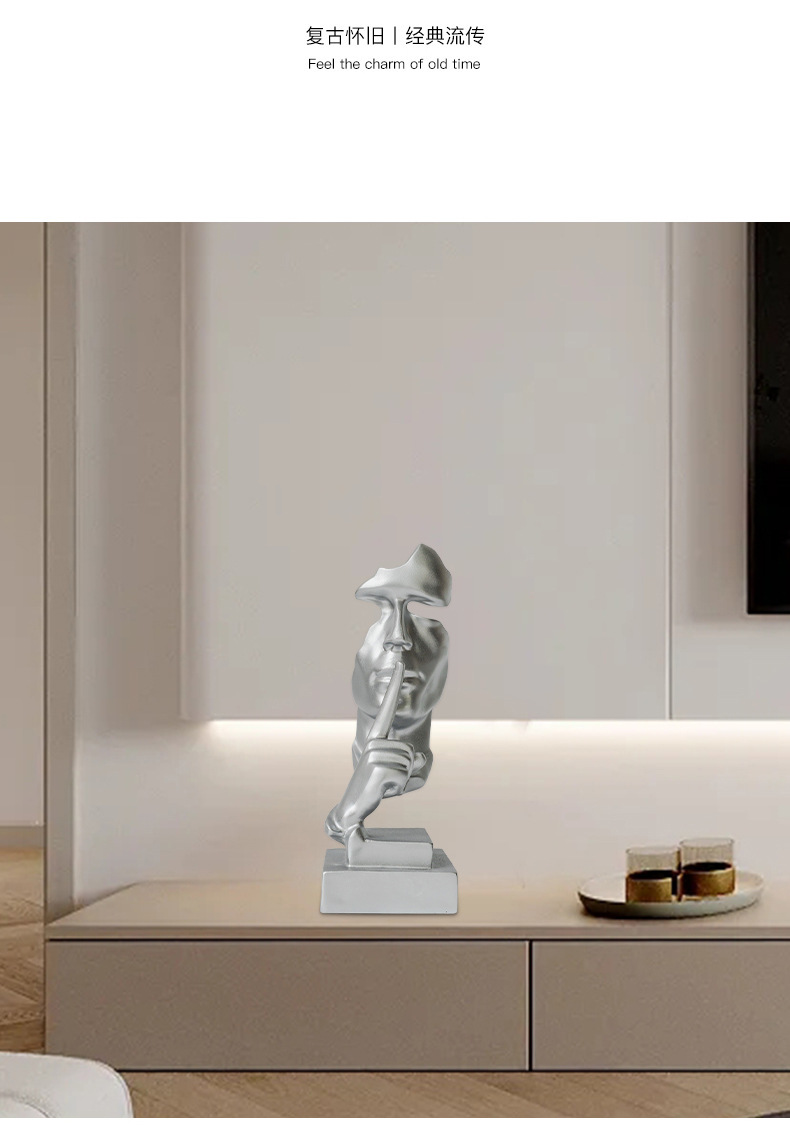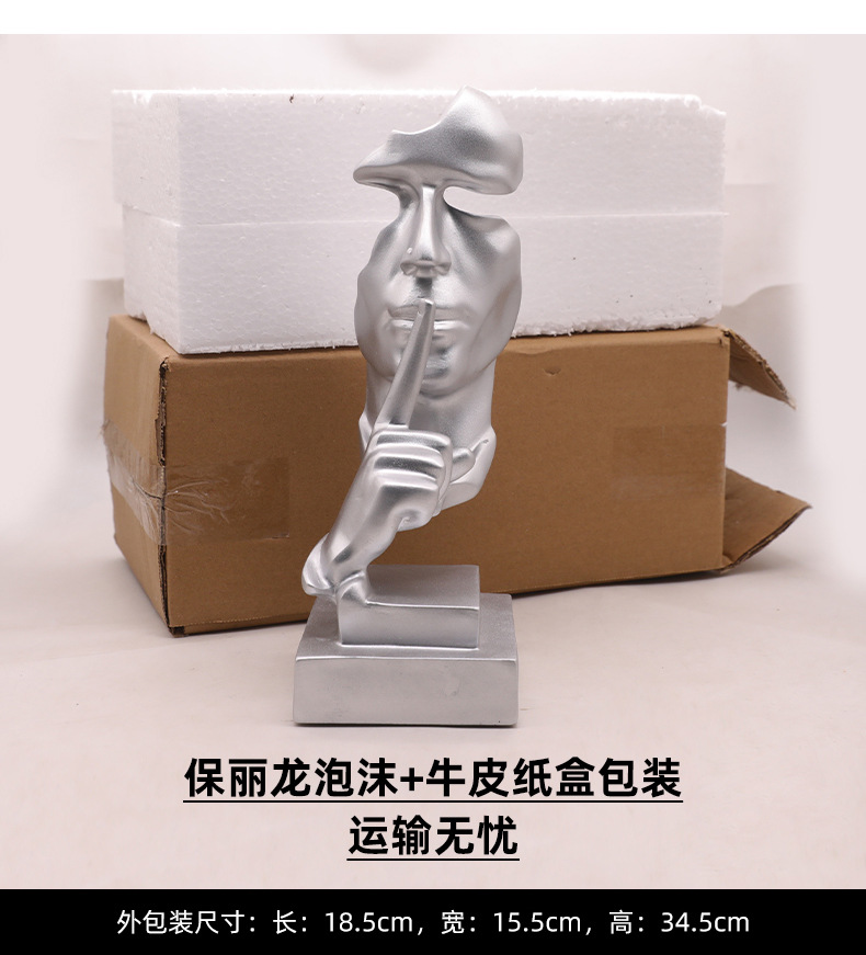 간단한 현대 침묵은 금 실버 창조적 인 수지 장식품 홈 액세서리 거실 와인 캐비닛 장식 북유럽 조각입니다스토어 가기