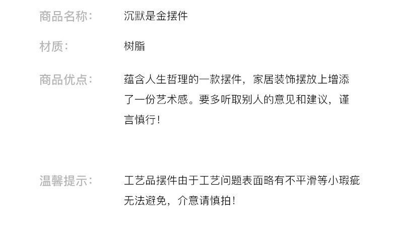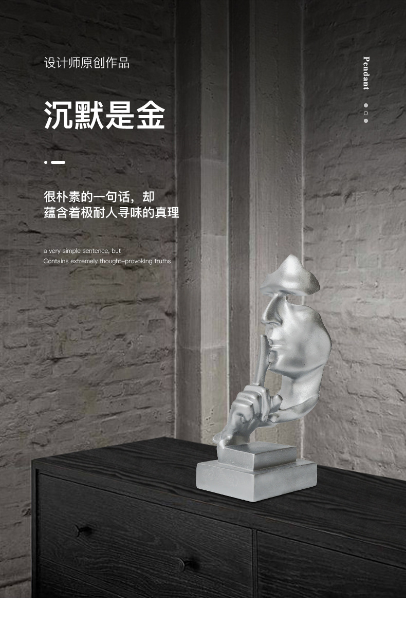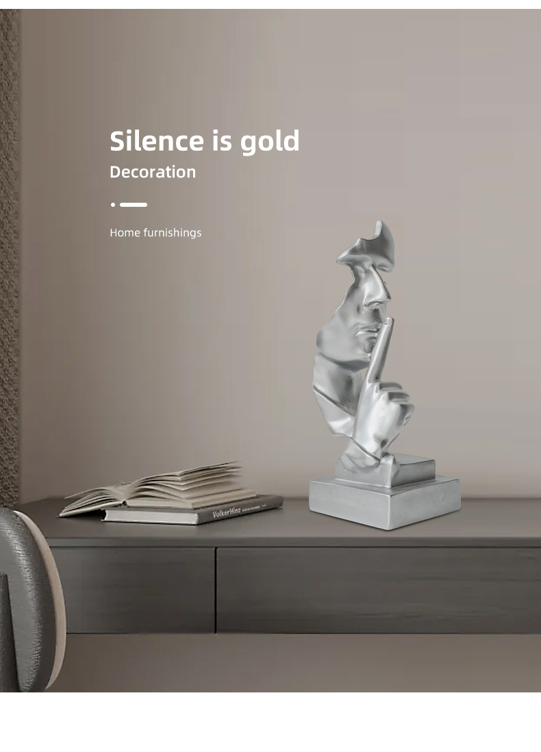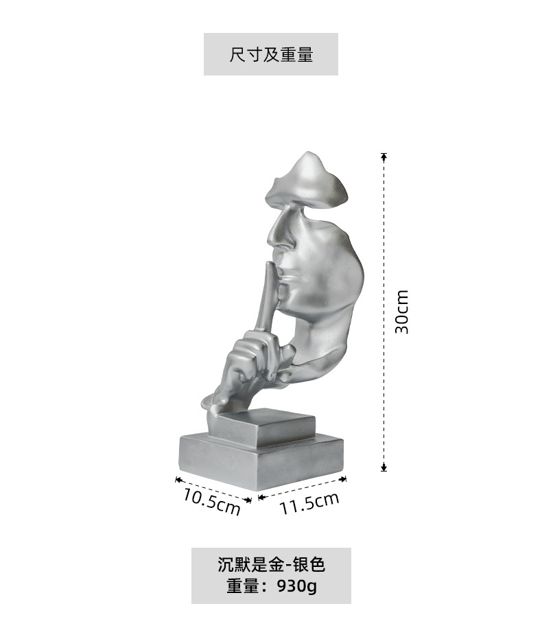 간단한 현대 침묵은 금 실버 창조적 인 수지 장식품 홈 액세서리 거실 와인 캐비닛 장식 북유럽 조각입니다
