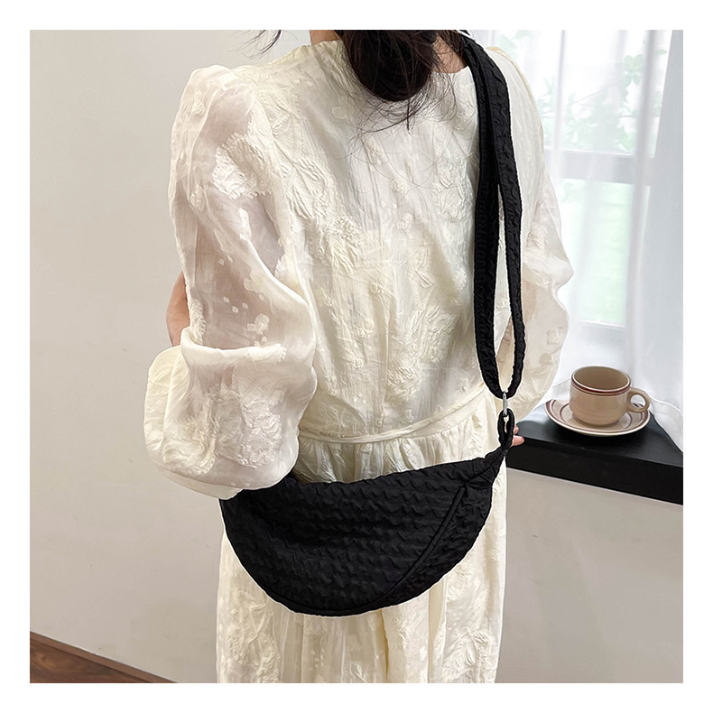 일본식 인 심플 솔리드 컬러 신선한 만두 가방 올매치 숄더 크로스바디 백 대용량 플리츠 스몰 백 학생용