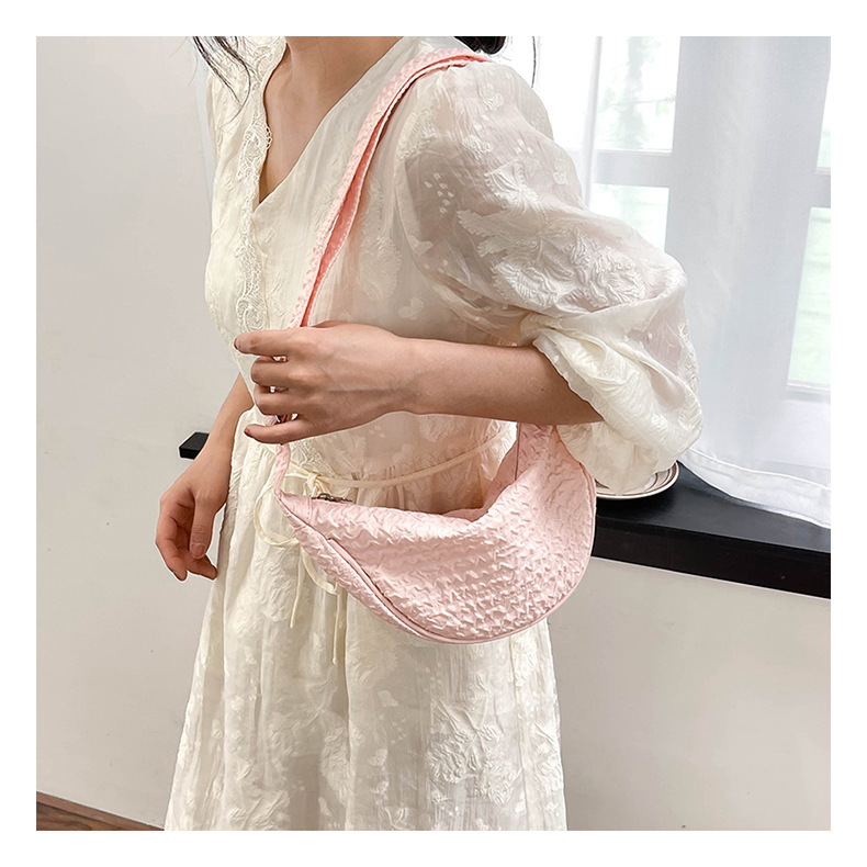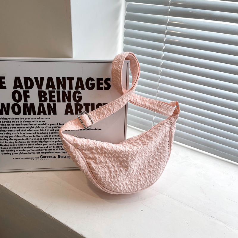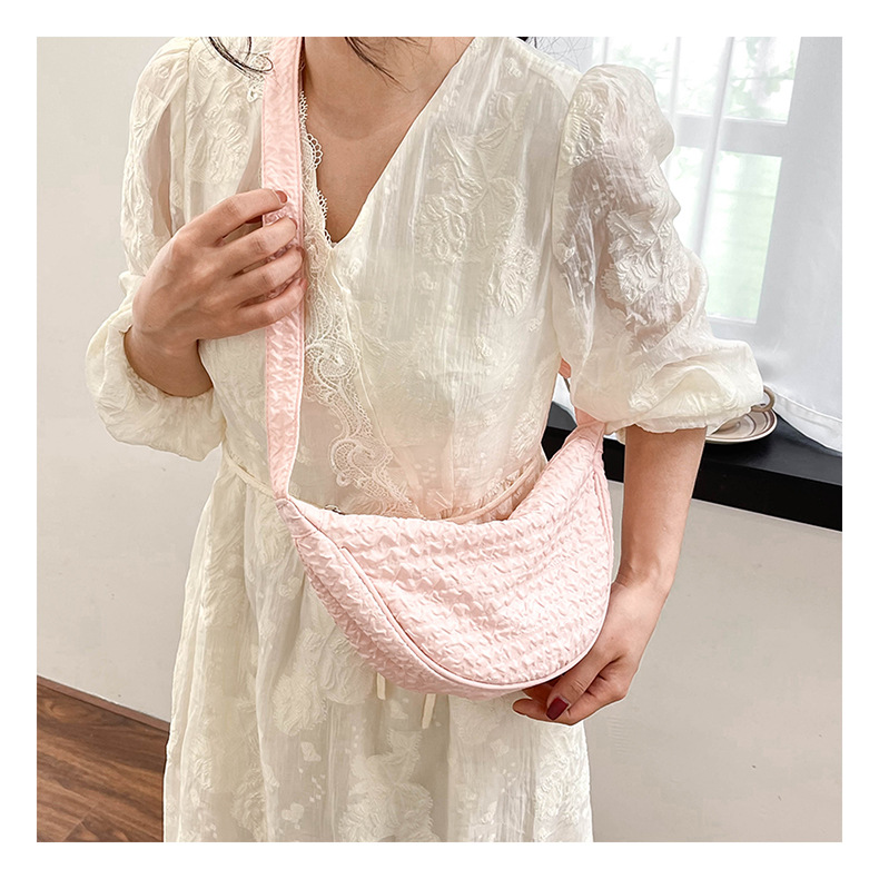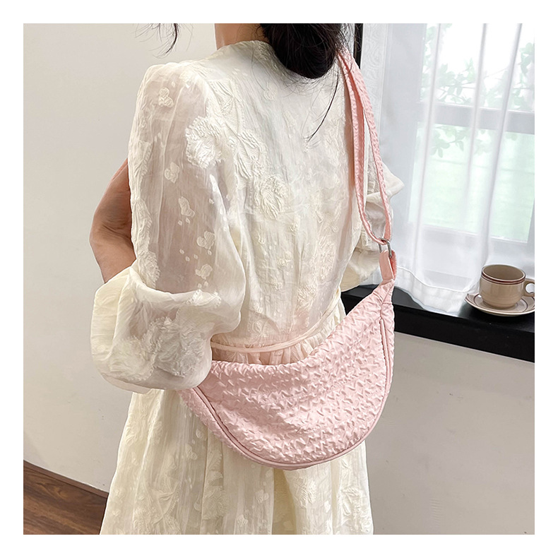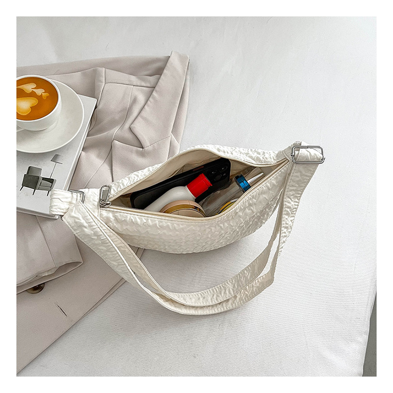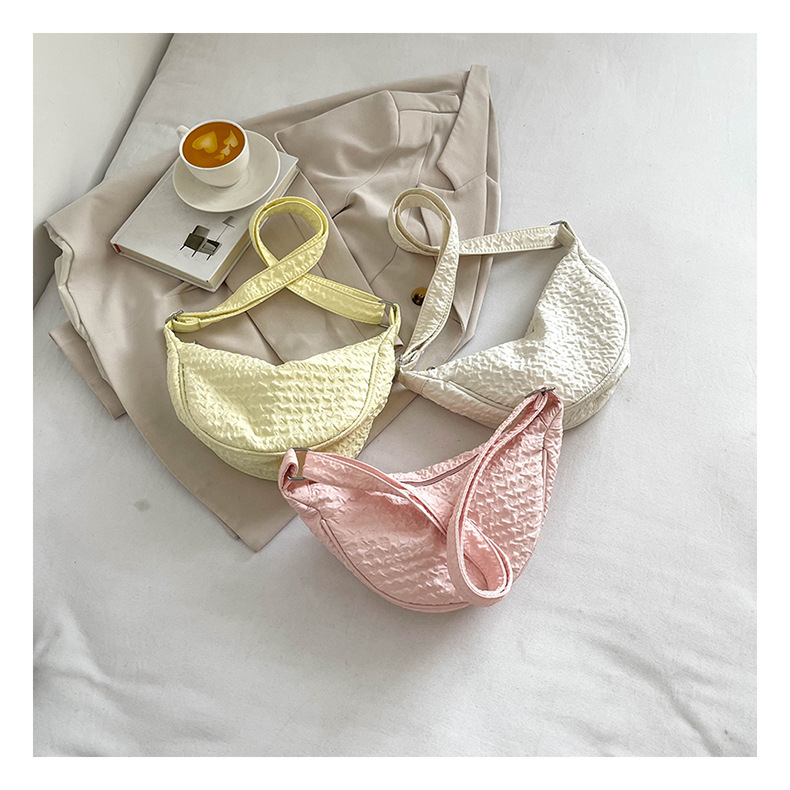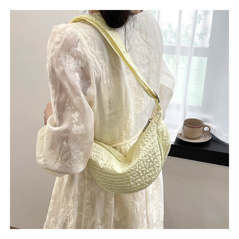 일본식 인 심플 솔리드 컬러 신선한 만두 가방 올매치 숄더 크로스바디 백 대용량 플리츠 스몰 백 학생용스토어 가기