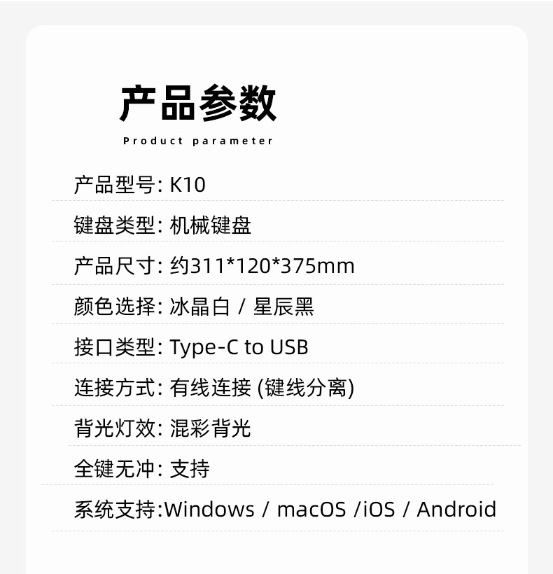 크로스보더 스팟 K10 유선 기계식 키보드 100키 투명 키캡 맞춤형 지원 e스포츠 게임용 키보드