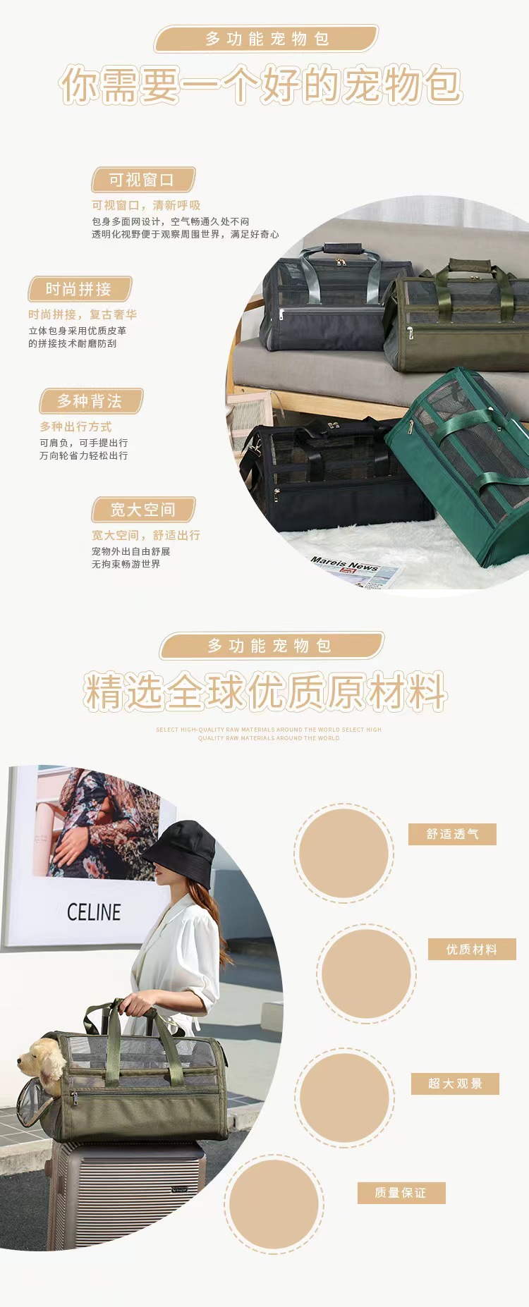 재고 새로운 고양이와 개 애완 동물 가방 대용량 야외 휴대용 유행 통기성 고양이 가방 개 가방 휴대용 애완 동물 가방