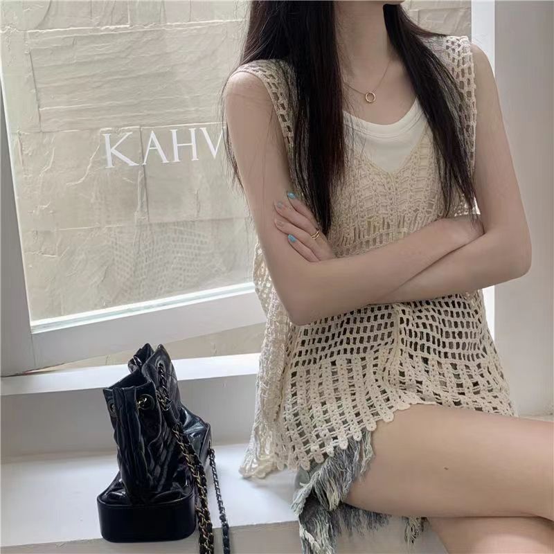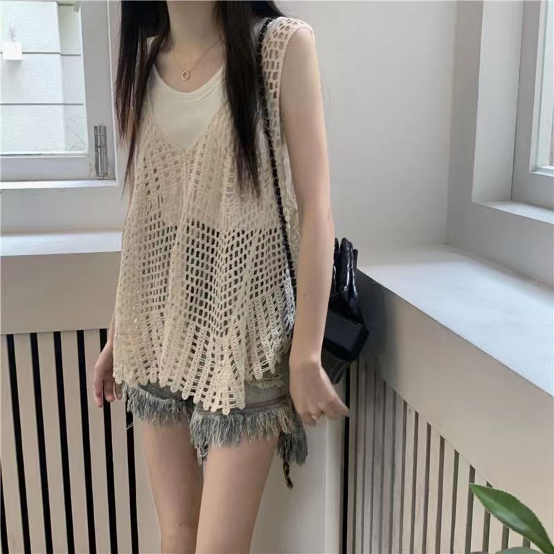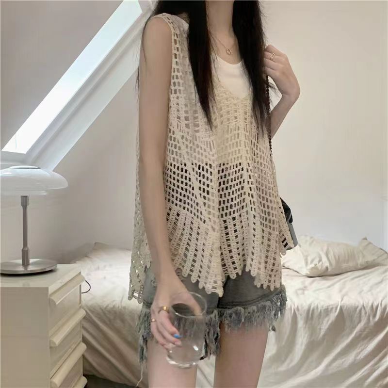 여름 뜨거운 소녀 디자인 중공 니트 조끼 겉옷 여성의 봄 조끼 겉옷 민소매 블라우스 탑 여성스토어 가기