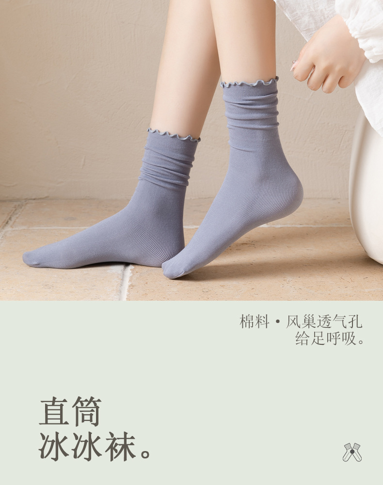 양말 여성용 미드 배럴 여름 얇은 우드 이어 아이스 아이스 양말 통기성 모든 매치 레이스 양말 2023 새로운 스택 양말스토어 가기