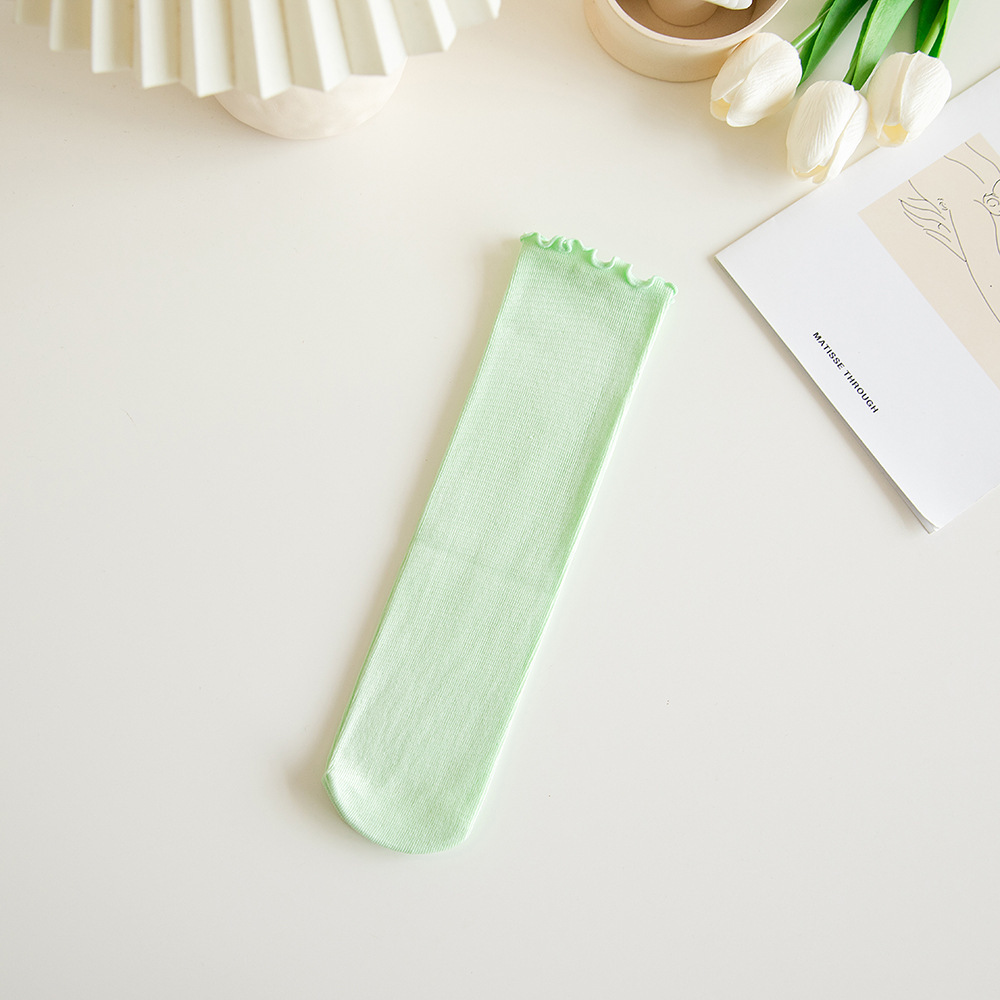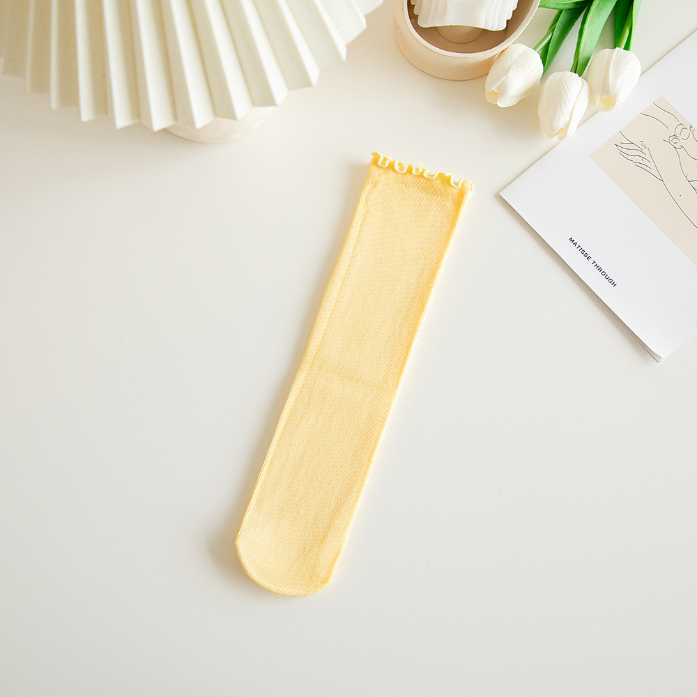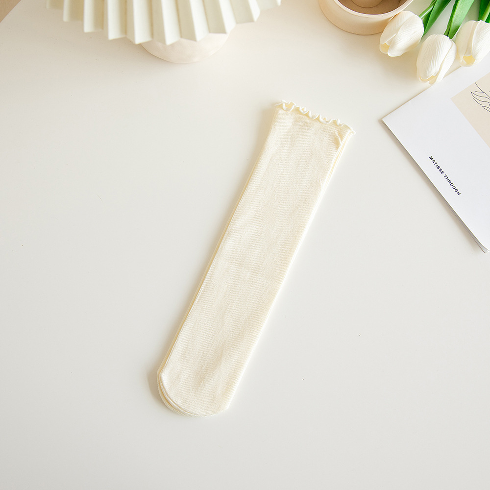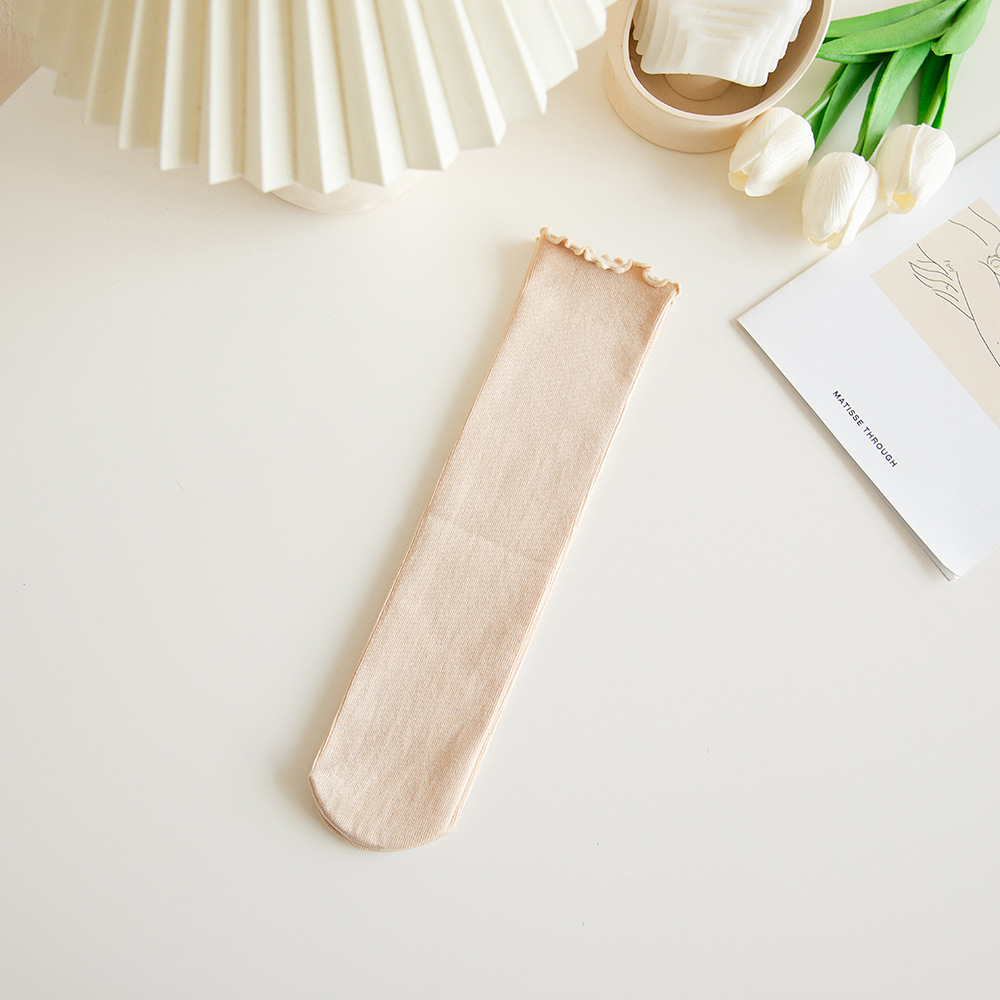 양말 여성용 미드 배럴 여름 얇은 우드 이어 아이스 아이스 양말 통기성 모든 매치 레이스 양말 2023 새로운 스택 양말