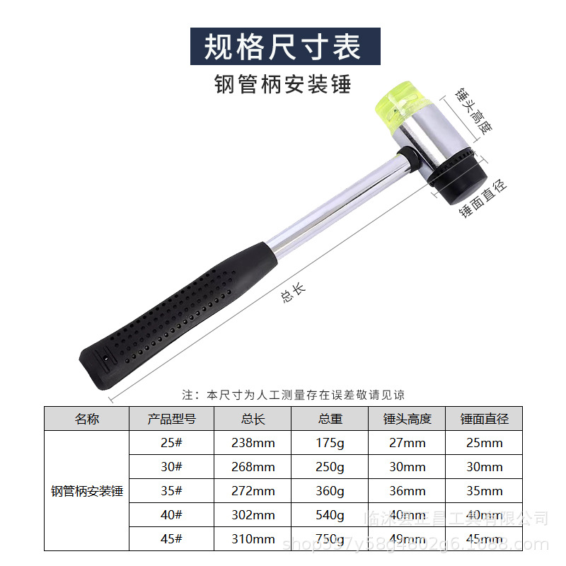 공장 도매 강관 손잡이 설치 망치 공장 연장 인쇄 및 염색 고무 플라스틱 소형 망치 스틱 바닥 특수 고무 망치스토어 가기