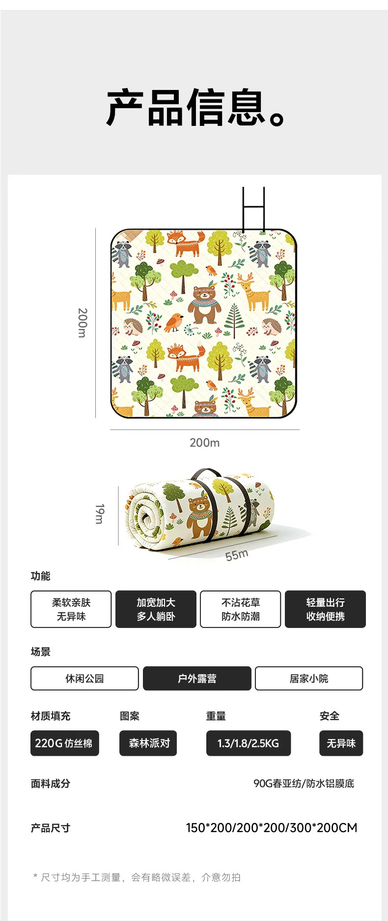 • 2* 2m 일반 모델 약 4mm 두께 80g 모조 실크 면 + peva 바닥