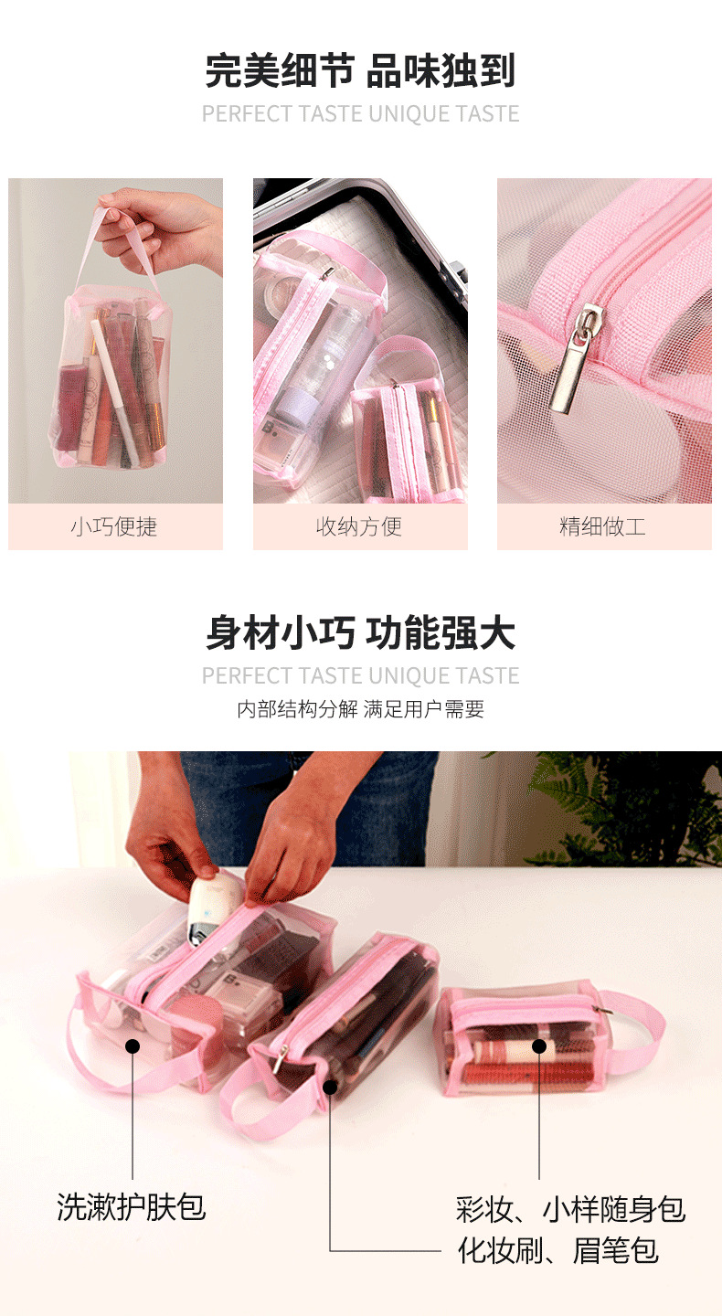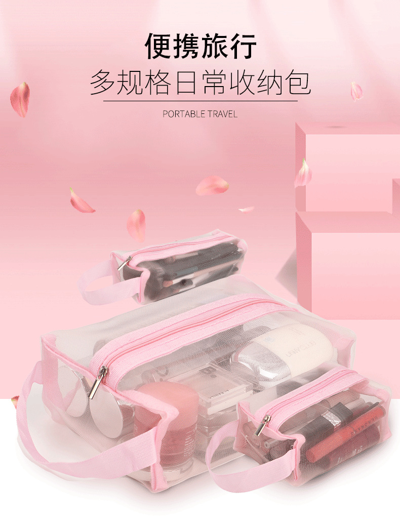 化妆包三件套采用尼龙网纱.