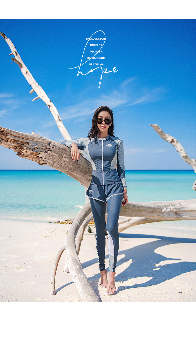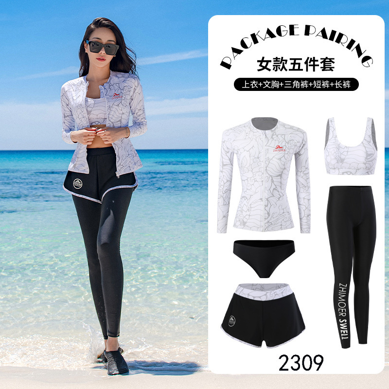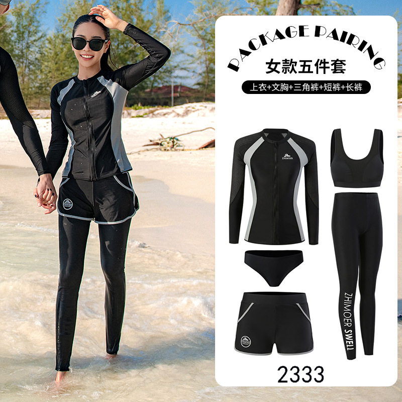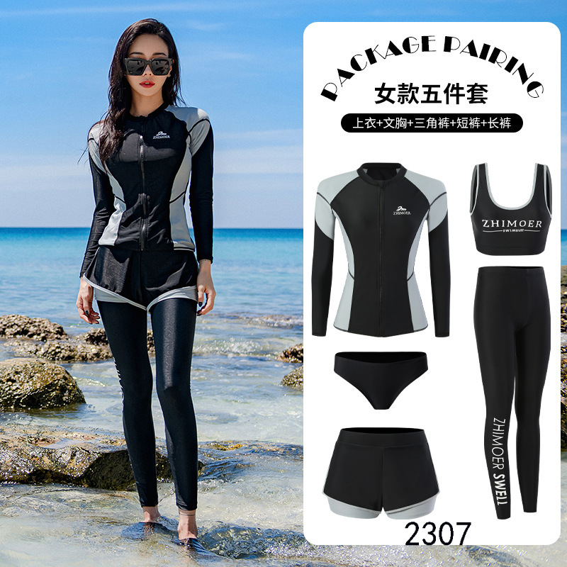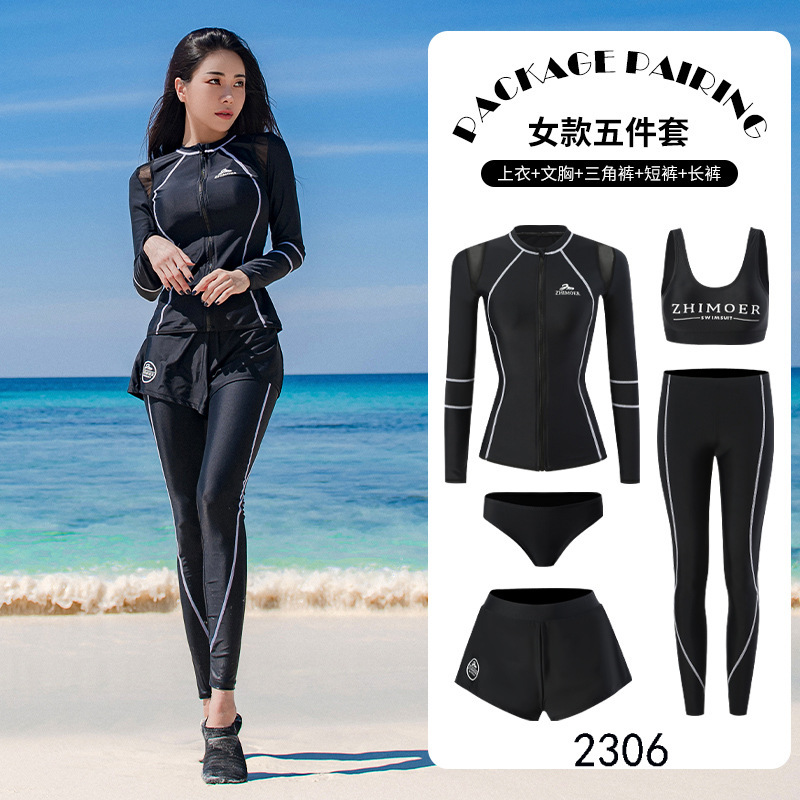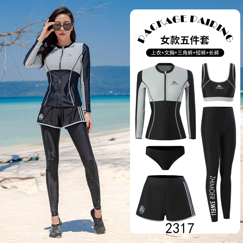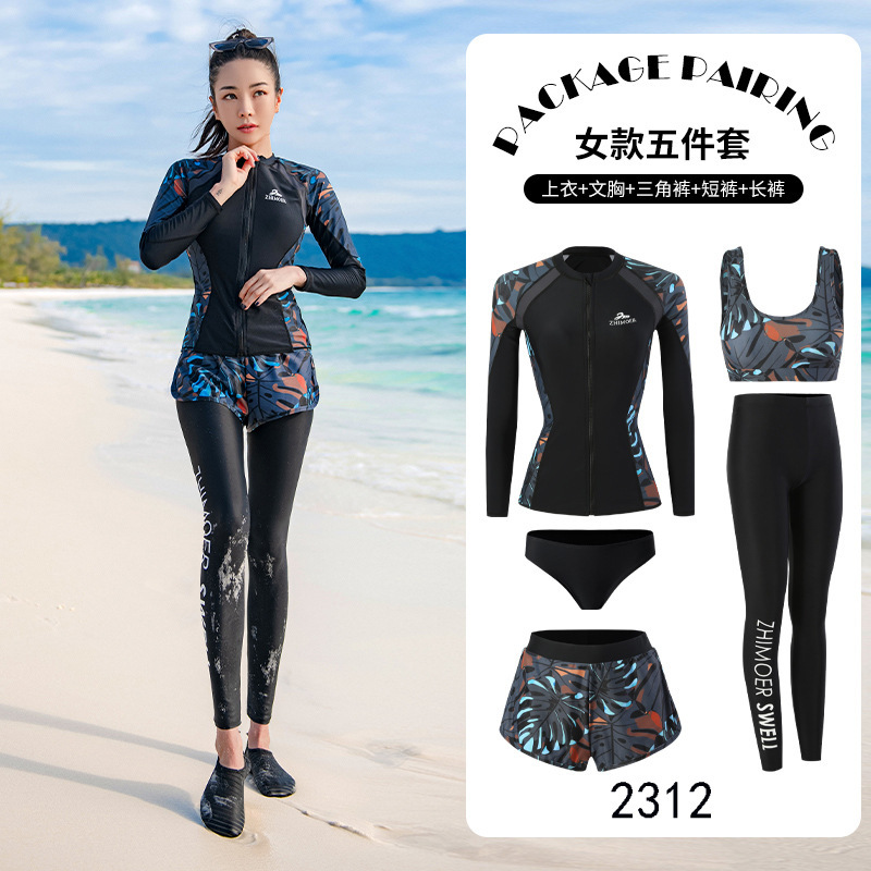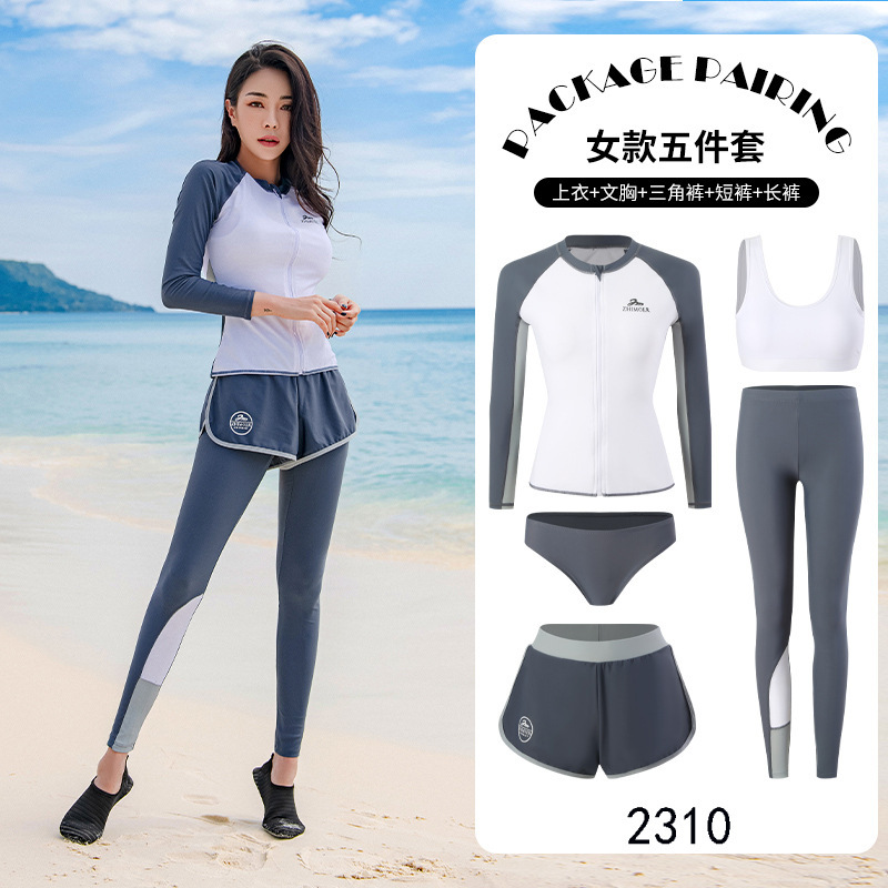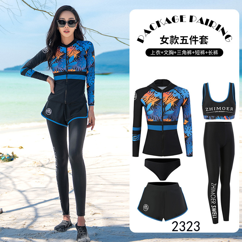 2023 신상품 다이빙 세트 여성의 긴 소매 수영복 분할 바지 세트 슬림 한국 스타일 전문 서퍼 세트