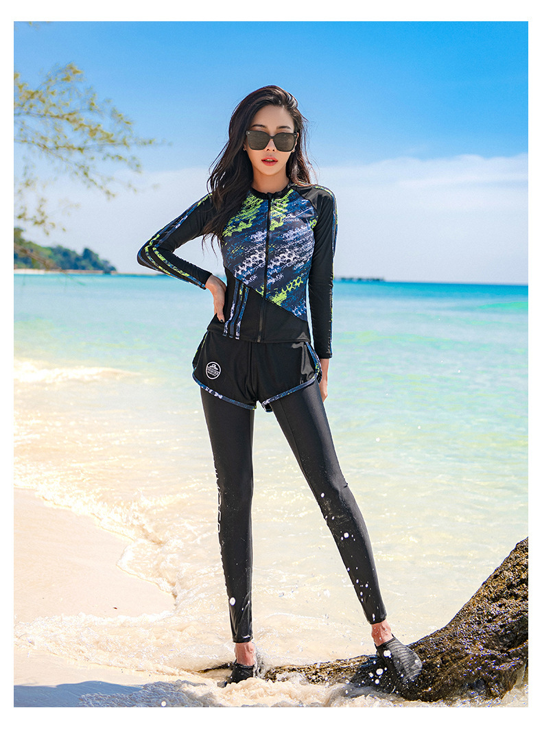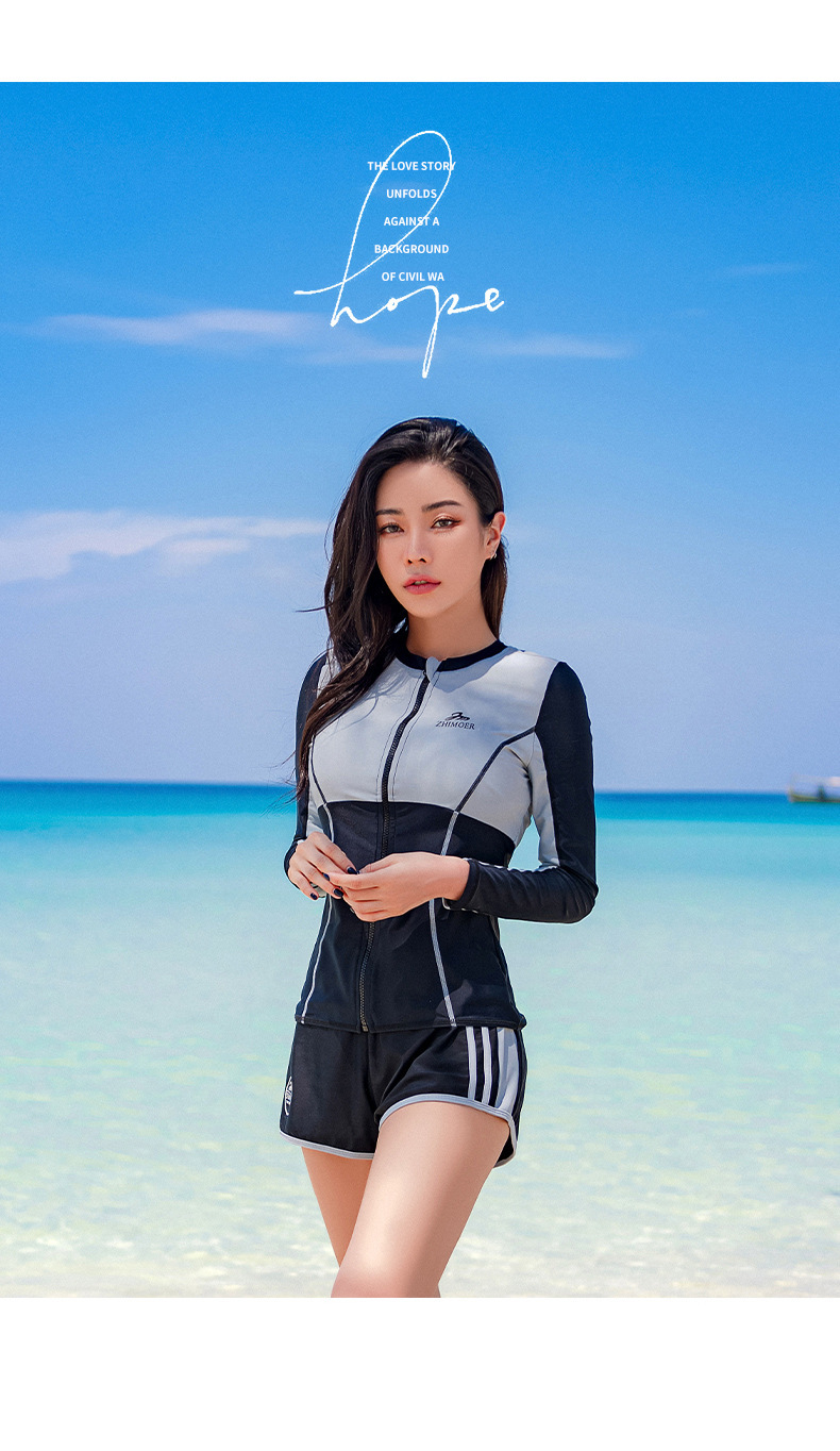 2023 신상품 다이빙 세트 여성의 긴 소매 수영복 분할 바지 세트 슬림 한국 스타일 전문 서퍼 세트스토어 가기