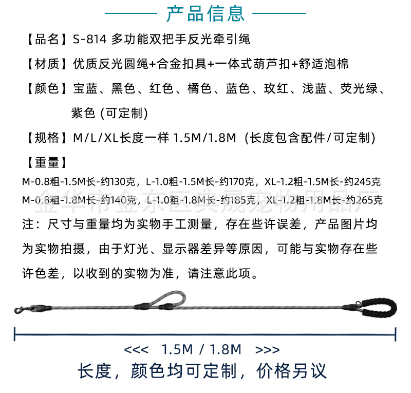 국경 간 폭발 다기능 이중 핸들 반사 개 가죽 끈 대형 및 중형 개 산책 로프