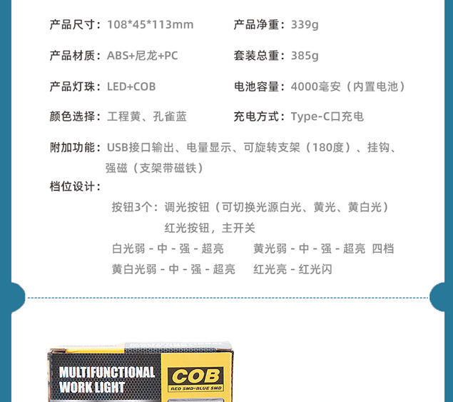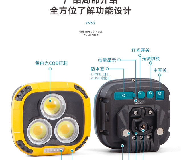 크로스 보더 개암 나무 야외 캠핑 텐트 램프 자동 수리 작업 충전식 강한 빛 투광 조명 비상 자기 led스토어 가기