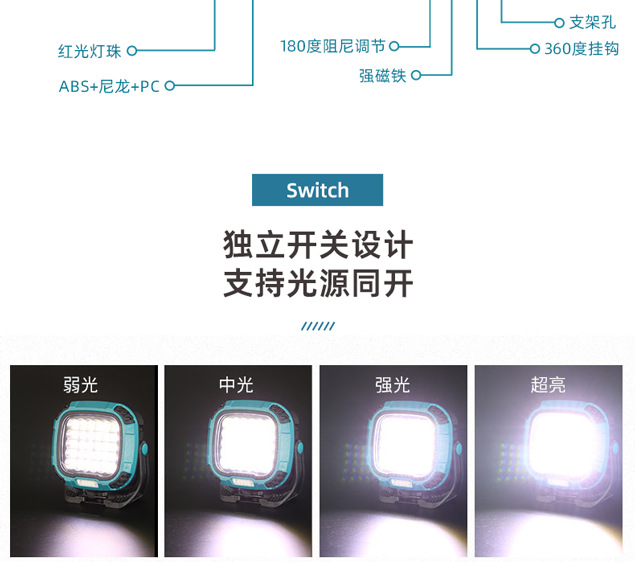 크로스 보더 개암 나무 야외 캠핑 텐트 램프 자동 수리 작업 충전식 강한 빛 투광 조명 비상 자기 led