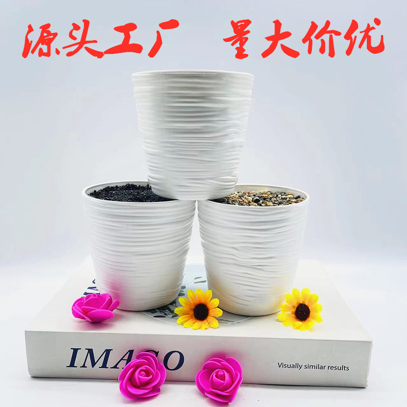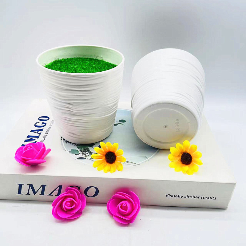 도매 시뮬레이션 화분 꽃꽂이 용기 플라스틱 화분 수평 패턴 둥근 냄비 화분 창조적 인 작은 냄비
