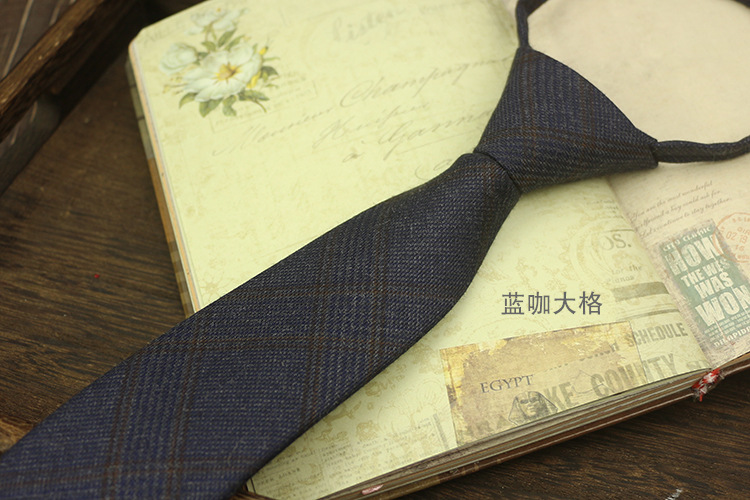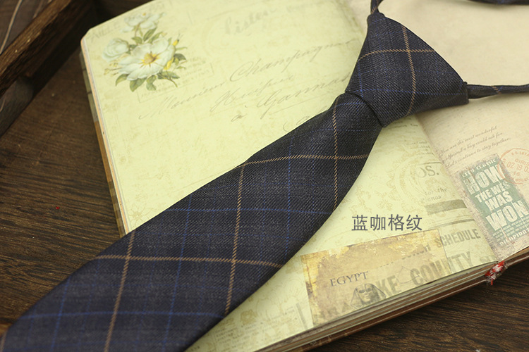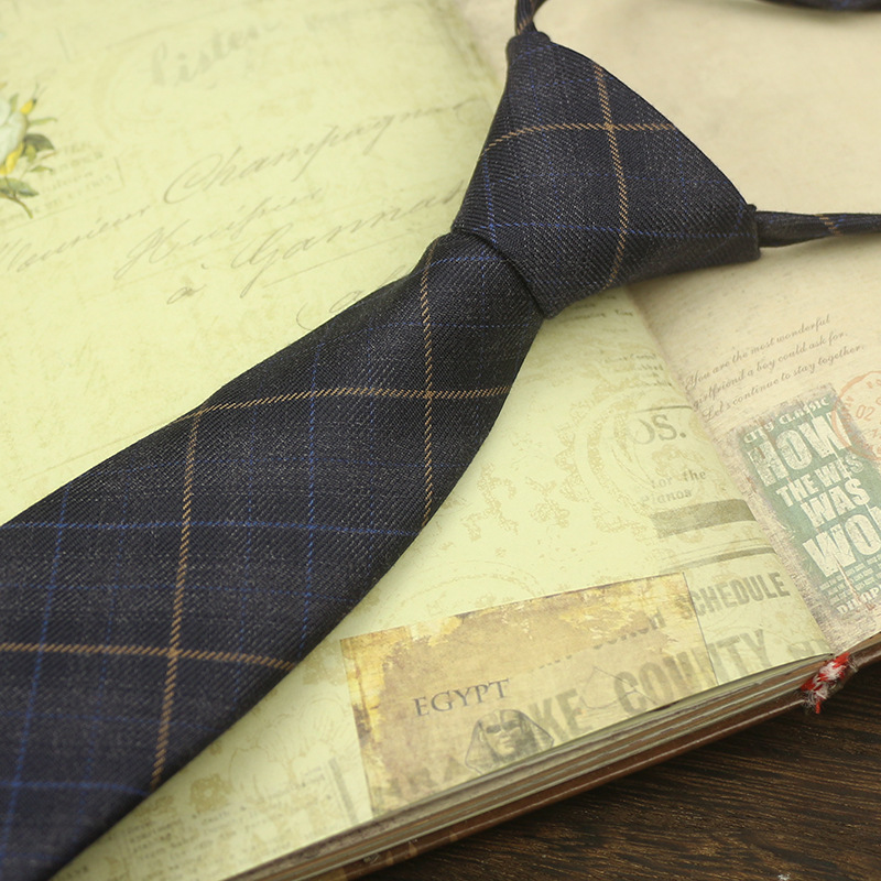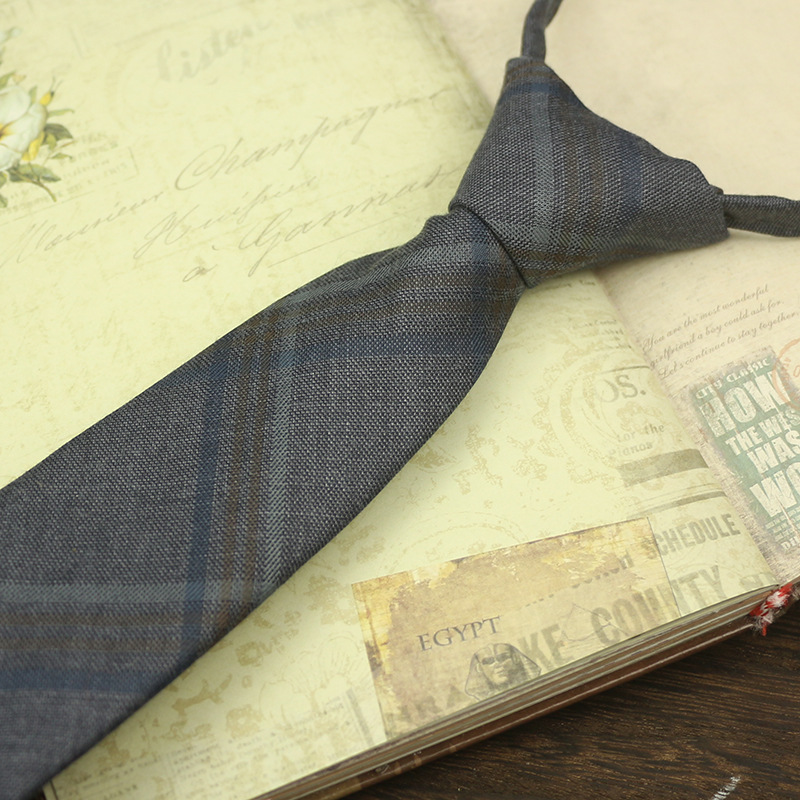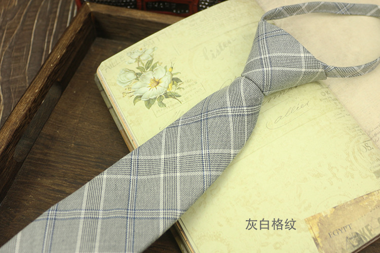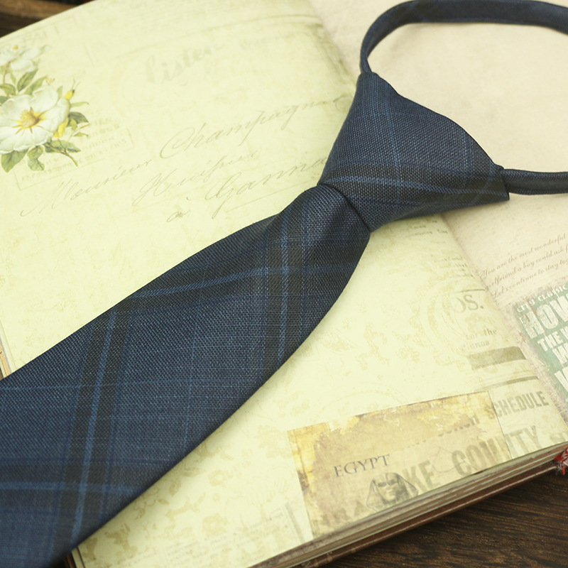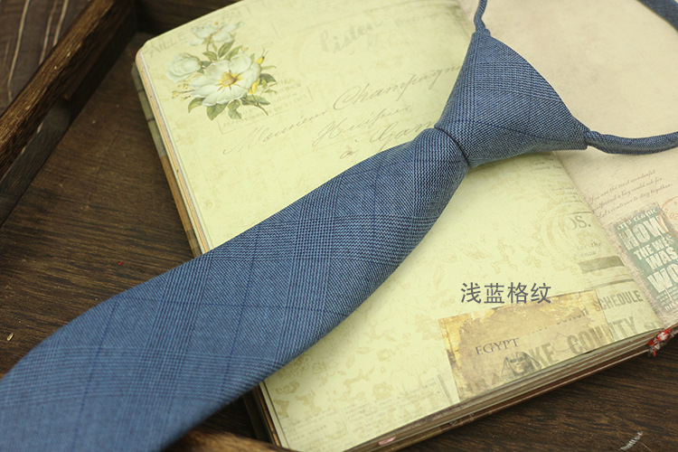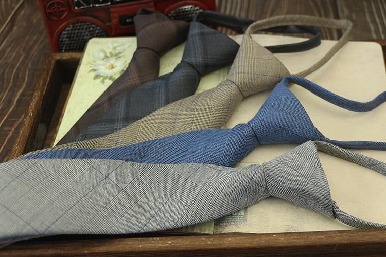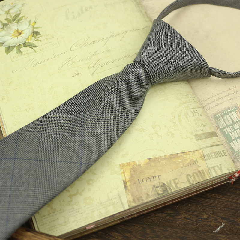 넥타이 남자의 한국 스타일 캐주얼 지퍼 7cm 영국 격자 무늬 그레이 블루 비즈니스 원피스 전문 모든 경기 쉽게 당겨스토어 가기