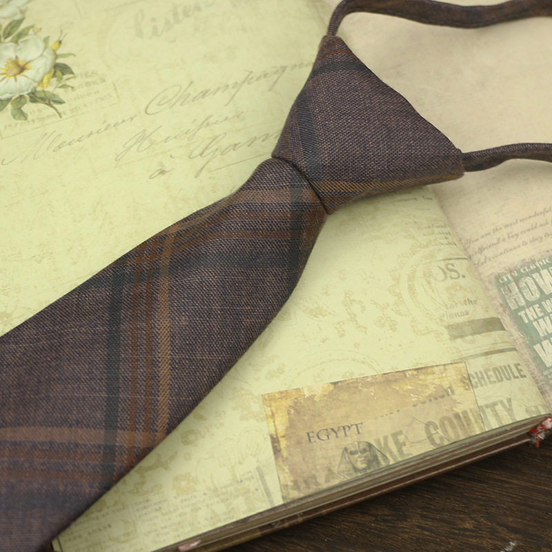 • 다크 브라운 체크 TR 면 지퍼 넥타이 * 48cm