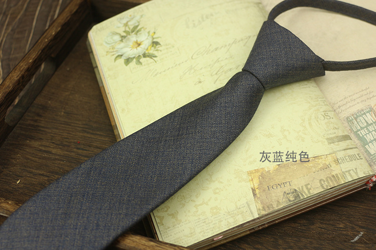 • 그레이 블루 단색 TR 면 지퍼 넥타이 * 48cm