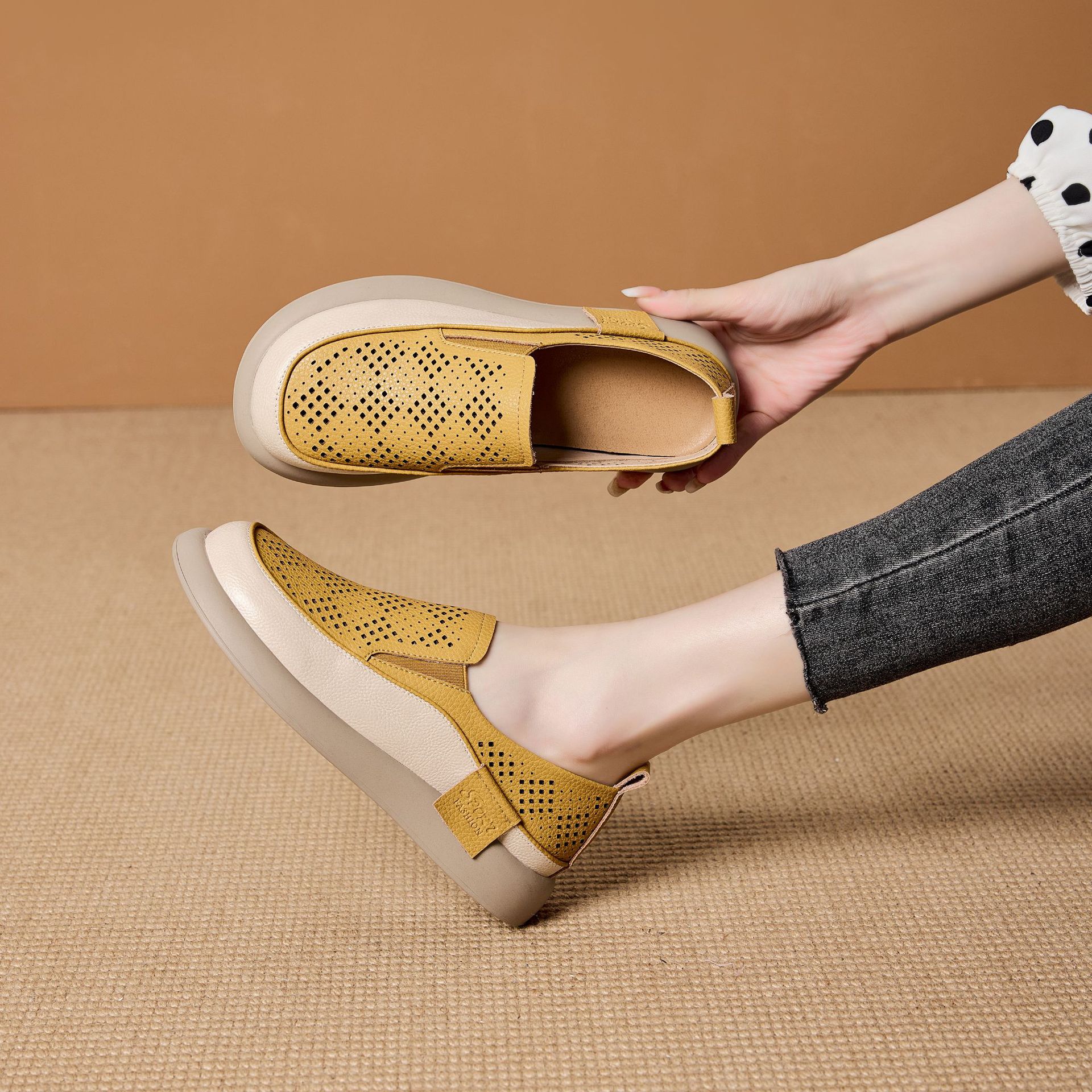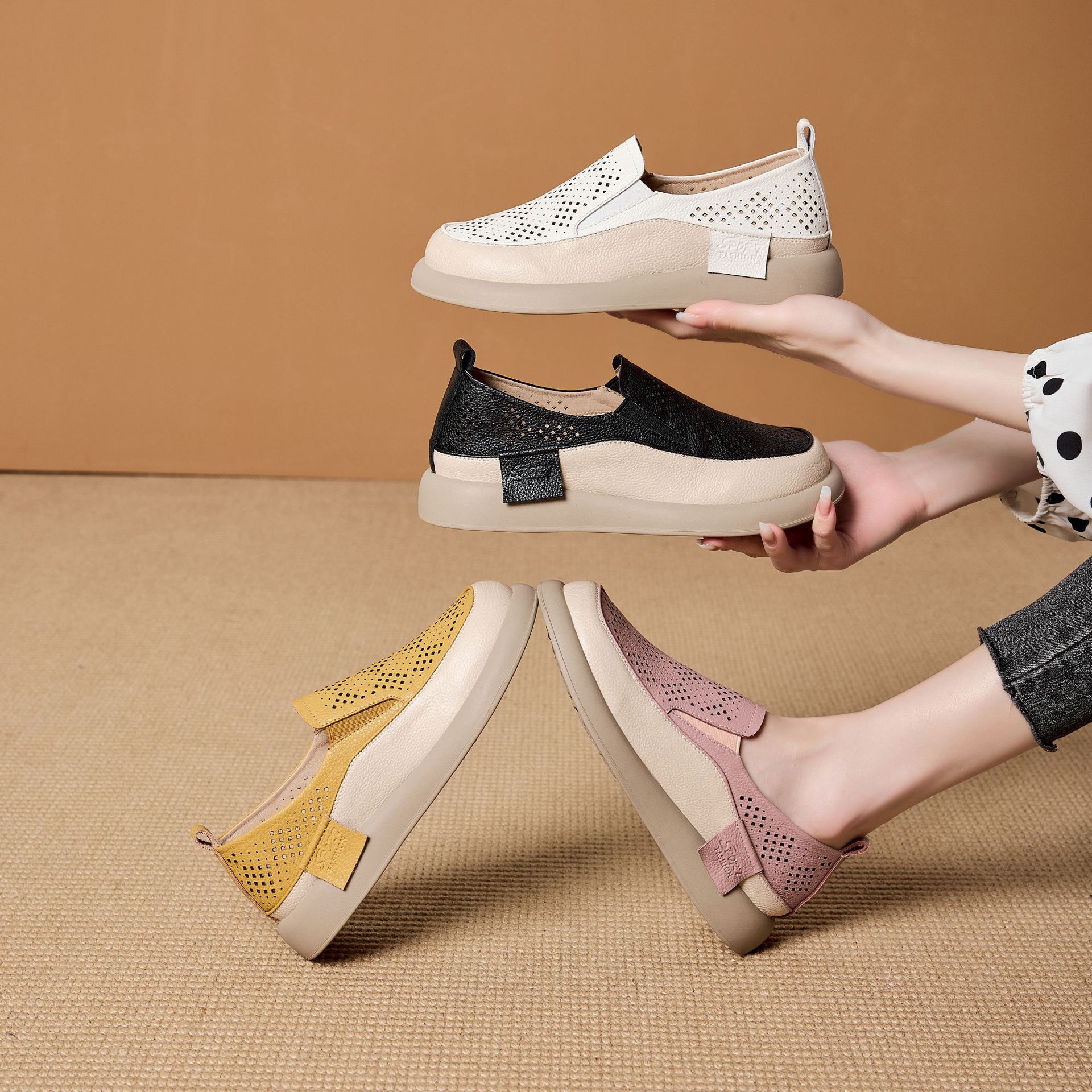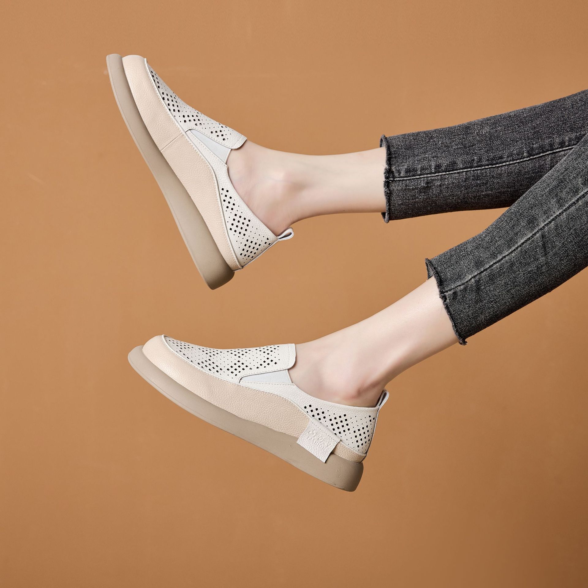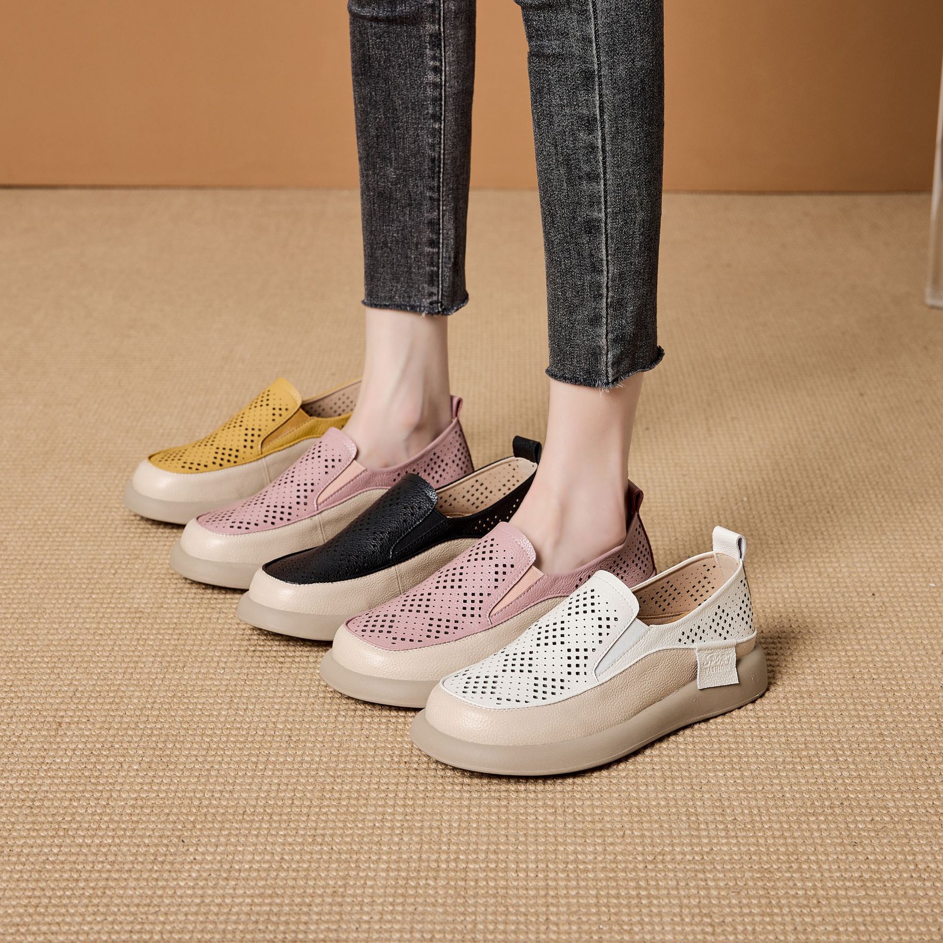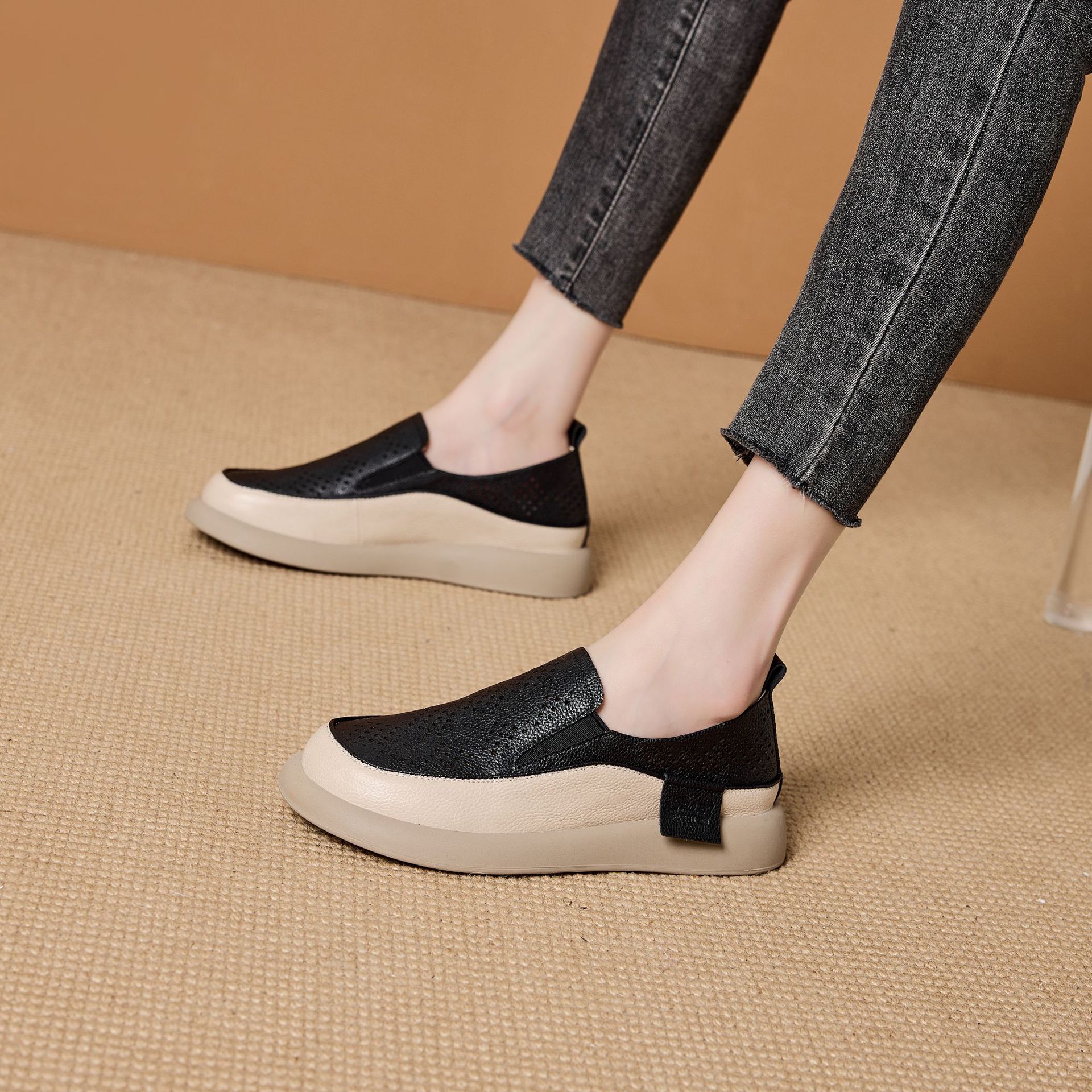 정품 가죽 중공 통기성 로퍼 여성 여름 2022 새로운 플랫 캐주얼 싱글 신발 슬립 온 슬립 온 슬립 온 신발스토어 가기