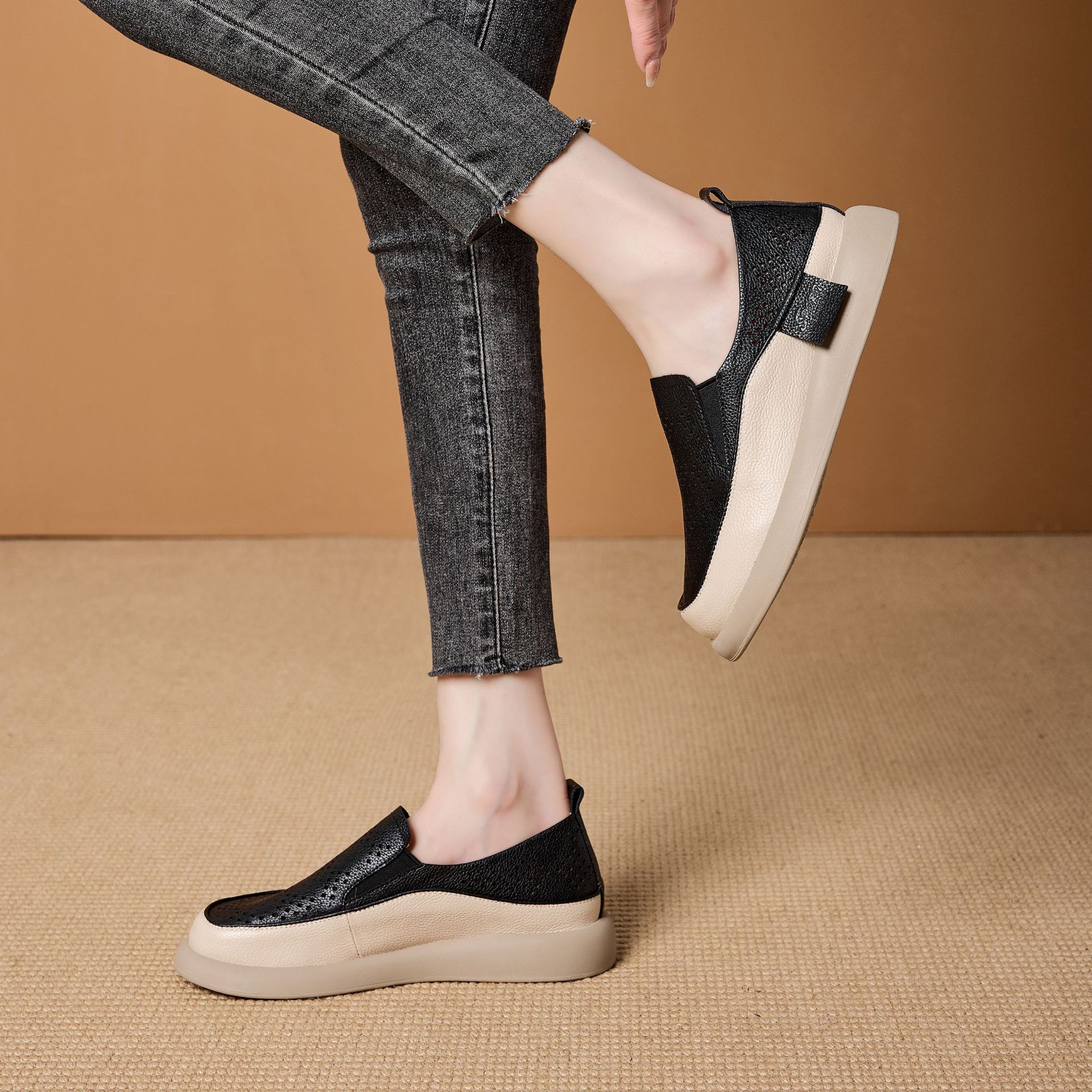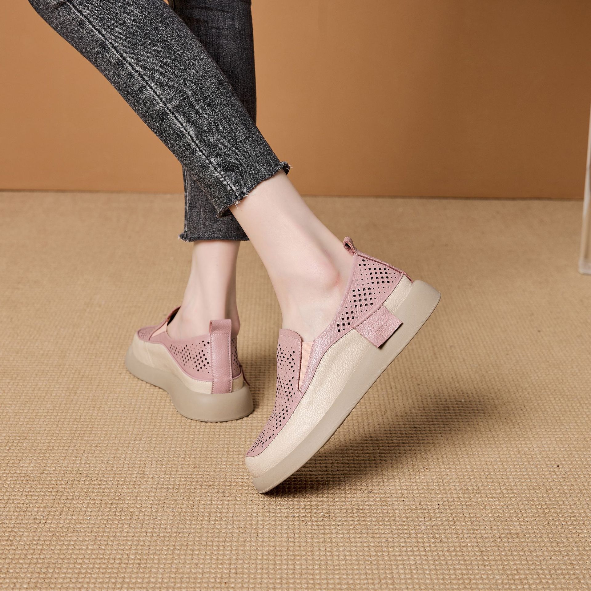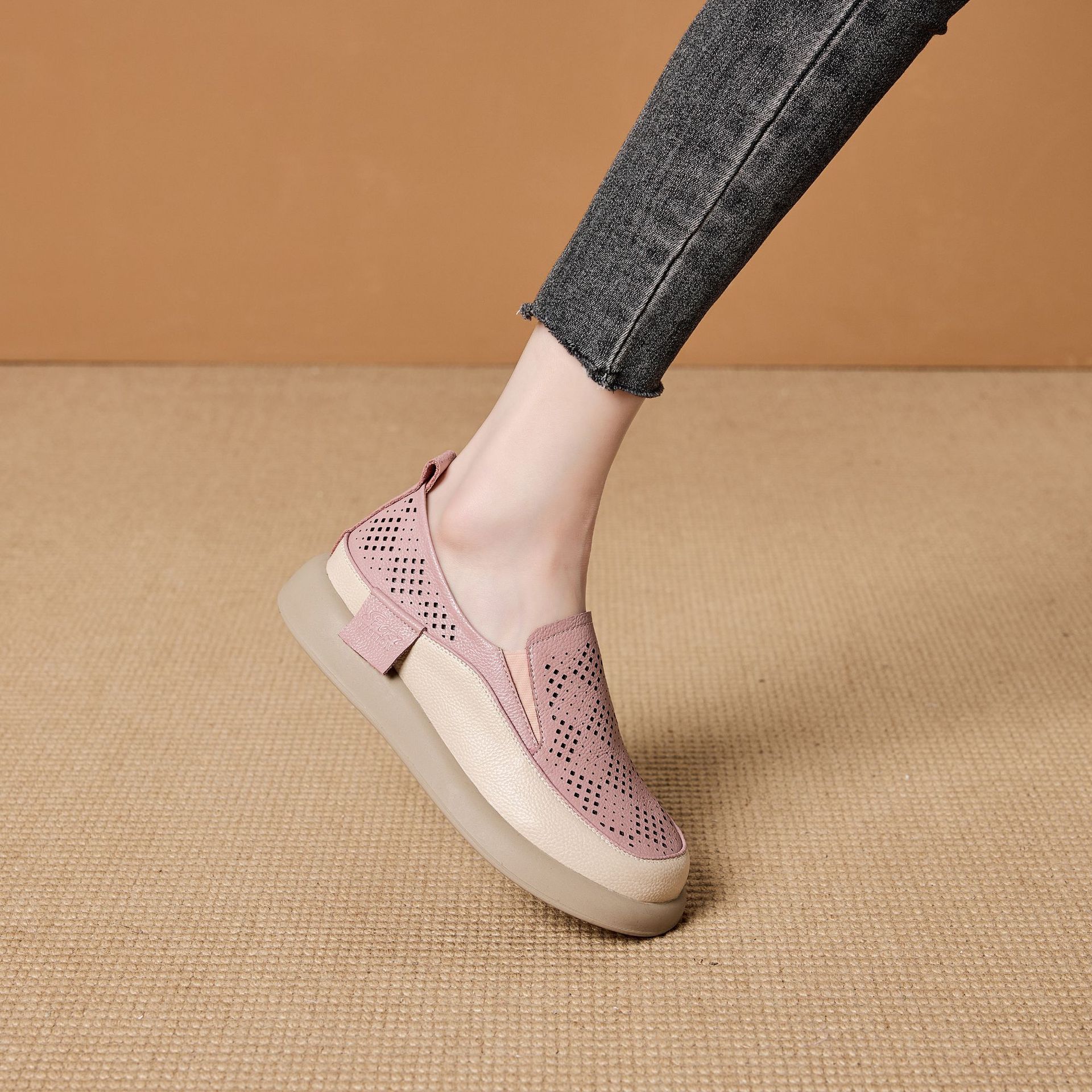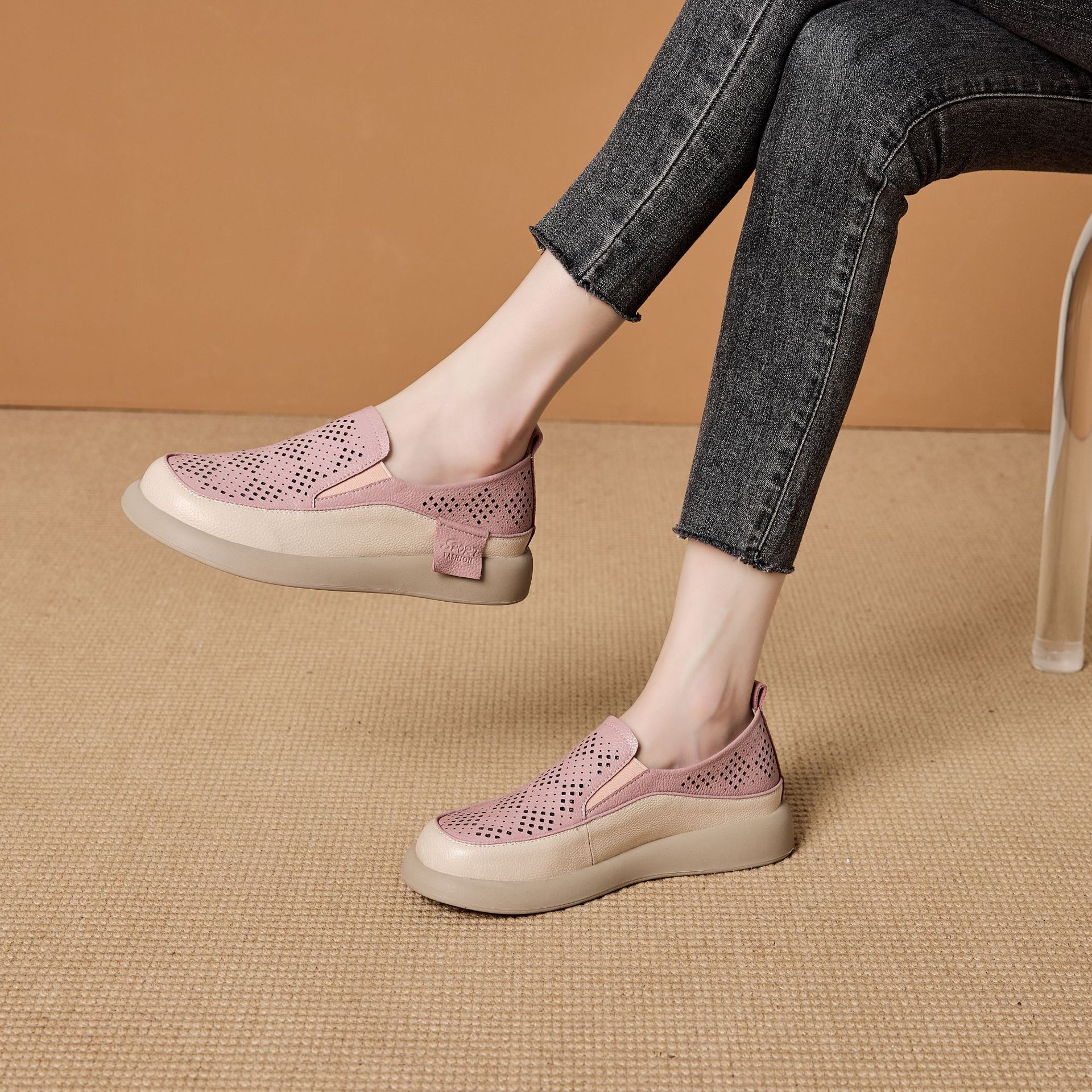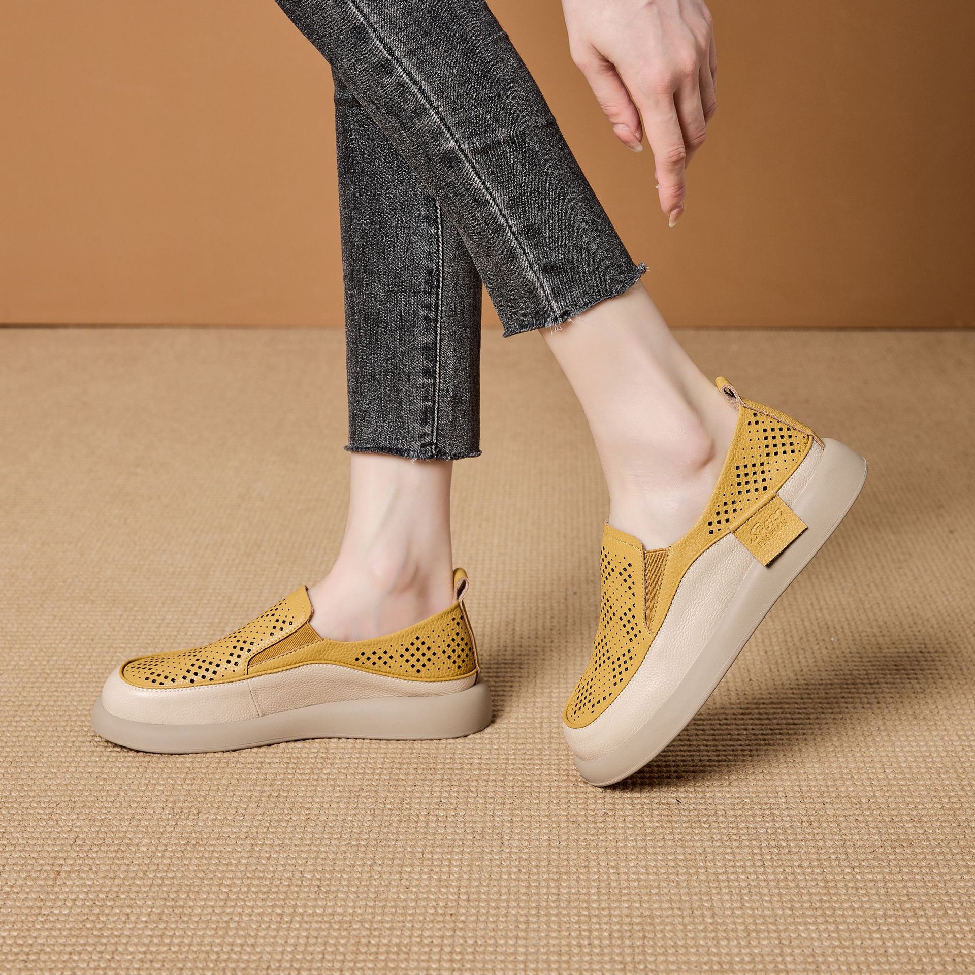 정품 가죽 중공 통기성 로퍼 여성 여름 2022 새로운 플랫 캐주얼 싱글 신발 슬립 온 슬립 온 슬립 온 신발스토어 가기