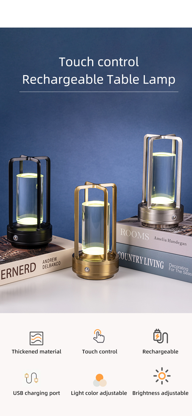 국경 led 테이블 램프 복고풍 터치 충전 분위기 램프 장식 테이블 램프 장식품 바 캠핑 침대 옆 야간 조명