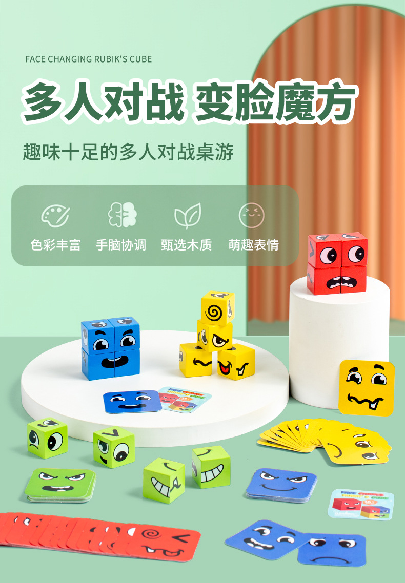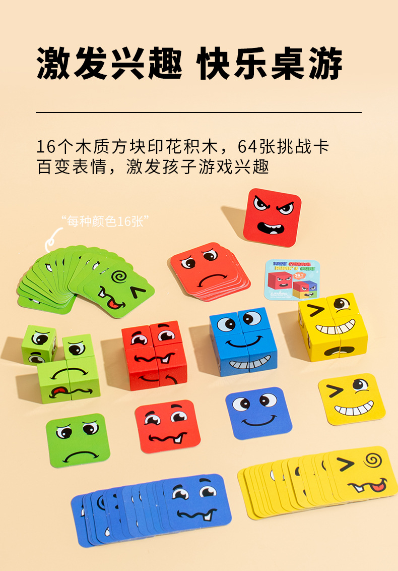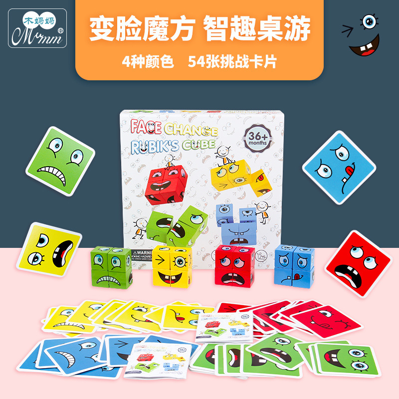 TikTok 뜨거운 얼굴 변화 루빅스 큐브 표현 빌딩 블록 어린이 조기 교육 퍼즐 부모-자식 대화 형 나무 놀이