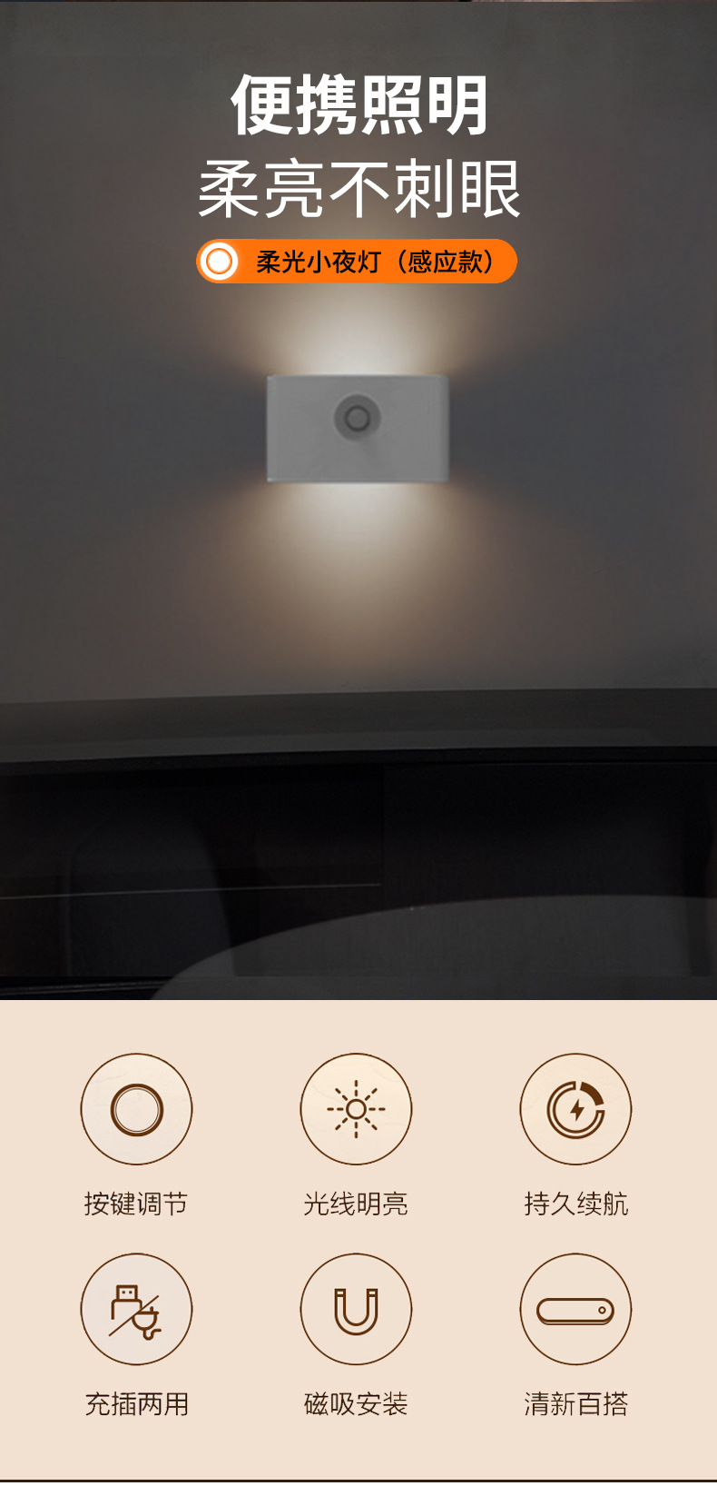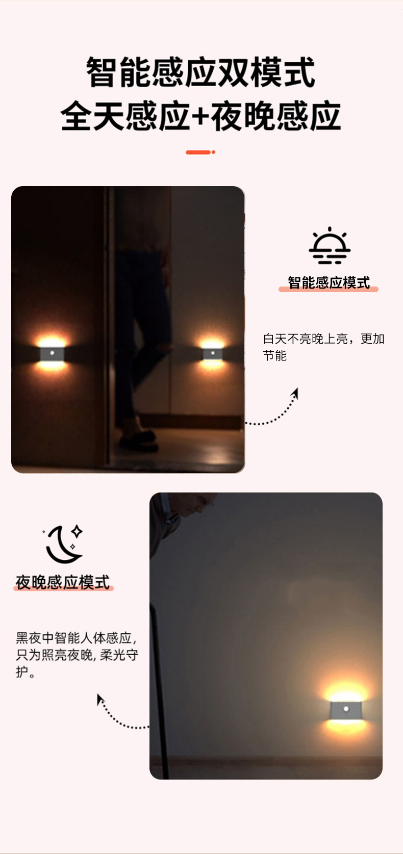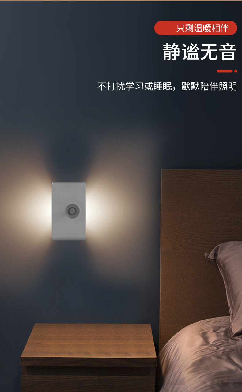 지능형 인체 유도 연계 야간 조명 도매 침대 옆 복도 침실 야간 조명 크리에이티브 충전 유도 벽 램프스토어 가기