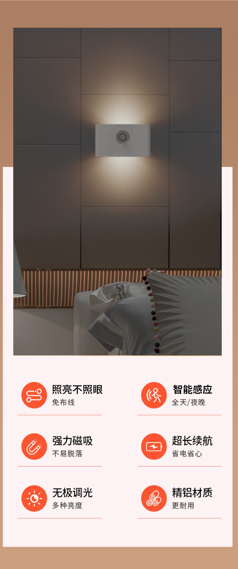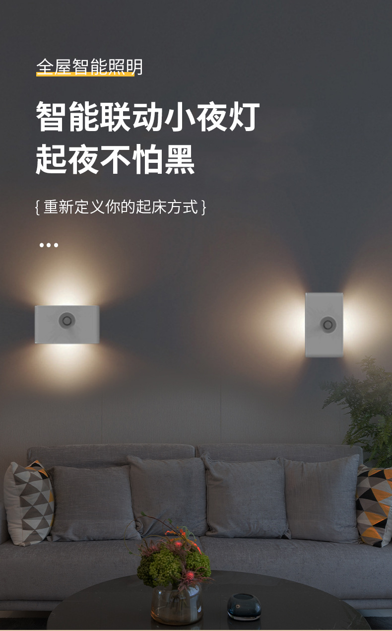 지능형 인체 유도 연계 야간 조명 도매 침대 옆 복도 침실 야간 조명 크리에이티브 충전 유도 벽 램프