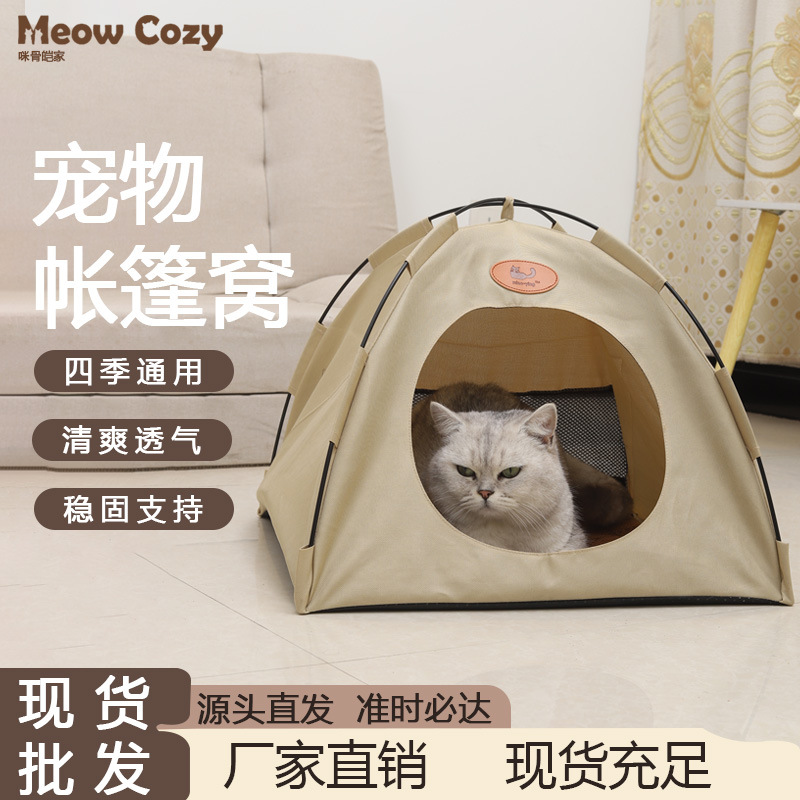인터넷 유명 애완동물 집, 탈부착 및 세탁 가능한 반폐쇄형 텐트, 고양이 집, 강아지 집, 접이식 통기성 매트 포함스토어 가기