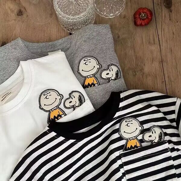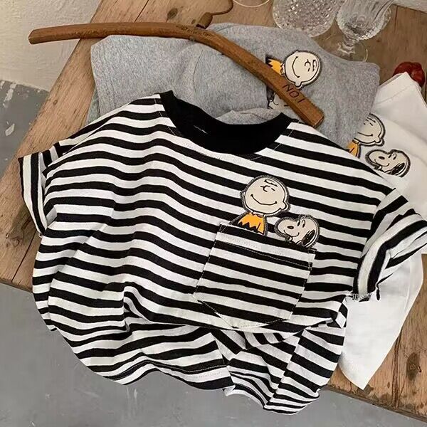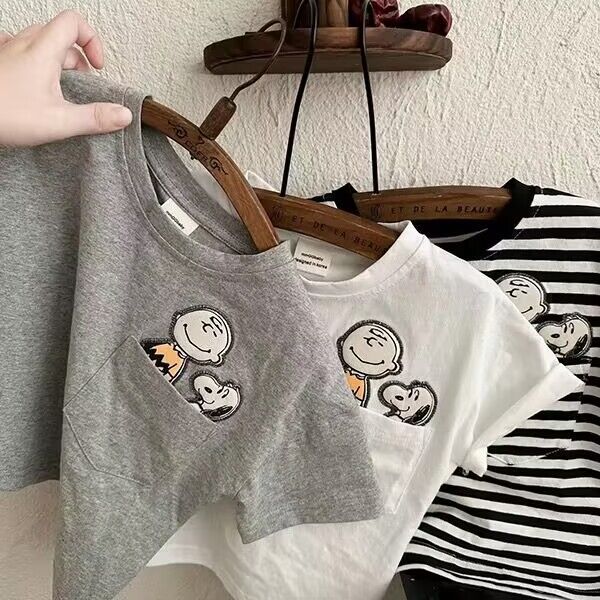 24 봄과 여름 새로운 일본식 소년과 소녀 치유 귀여운 인쇄 면화 만화 반팔 어린이 가방 티셔츠