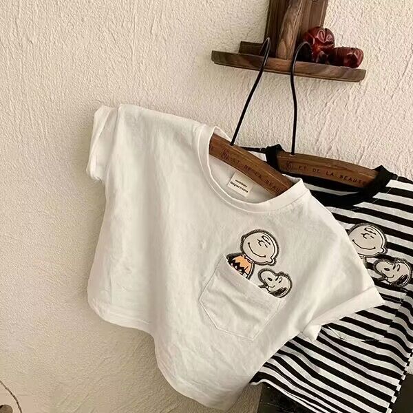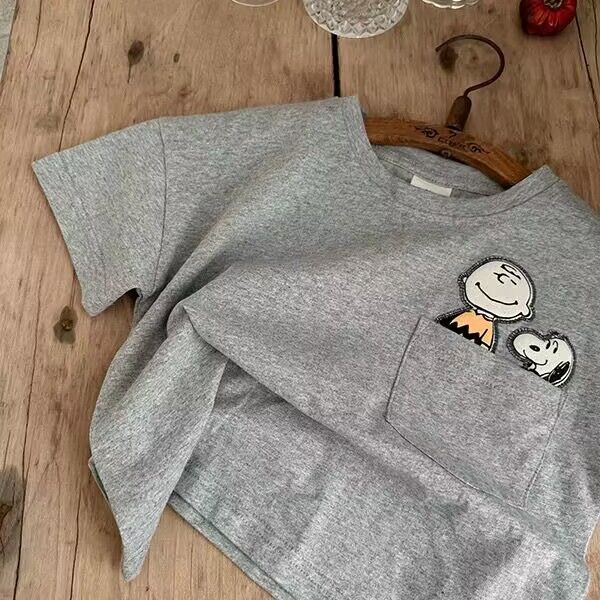 24 봄과 여름 새로운 일본식 소년과 소녀 치유 귀여운 인쇄 면화 만화 반팔 어린이 가방 티셔츠스토어 가기