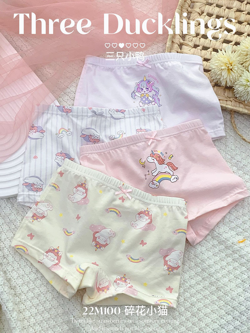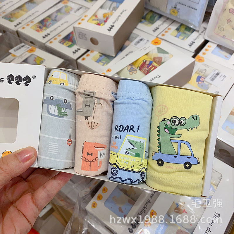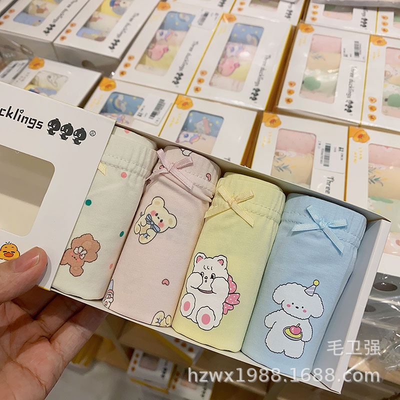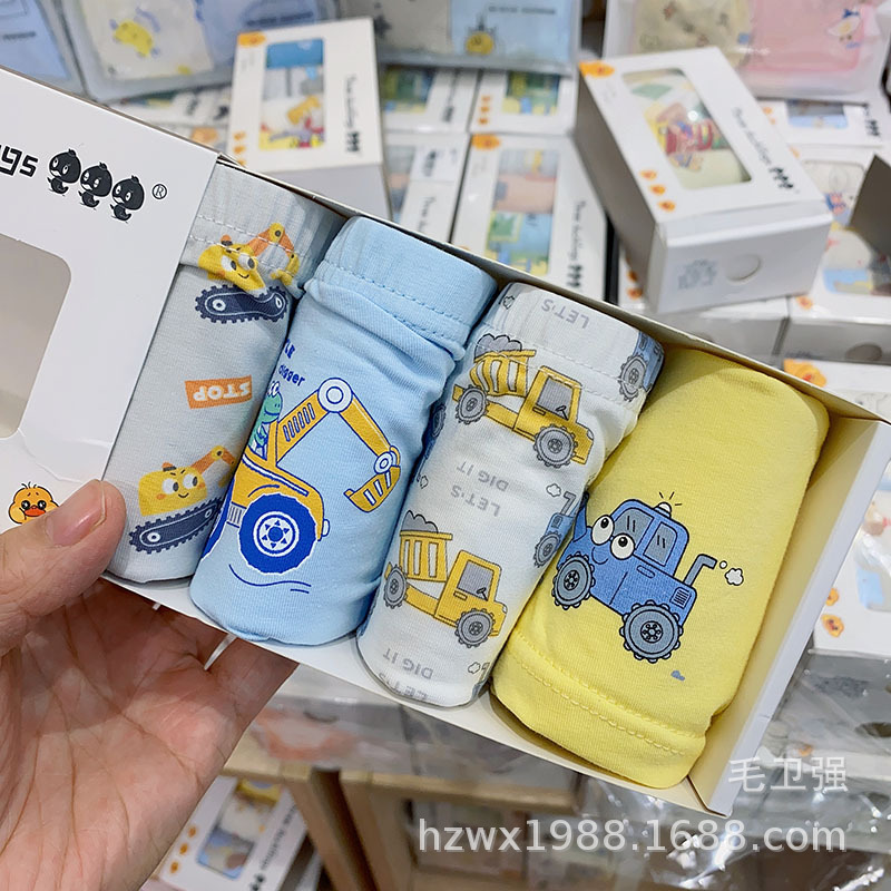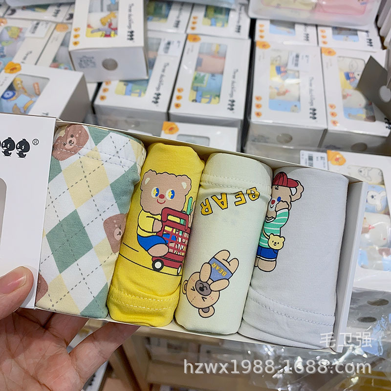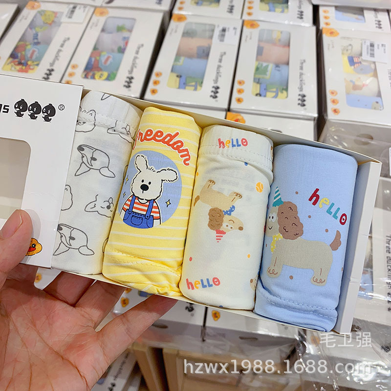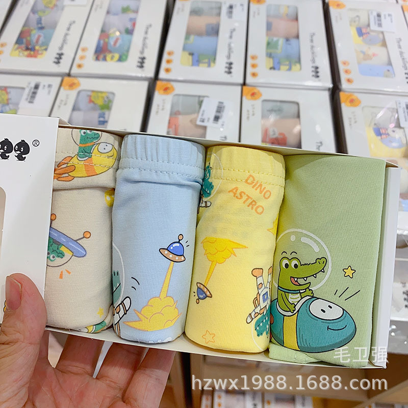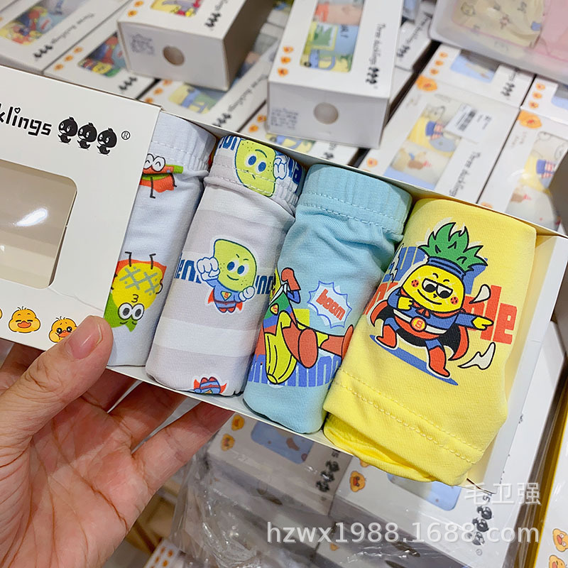 새끼 오리 어린이 속옷 면 4 개 소년과 소녀 만화 인쇄 뼈없는 복서 팬티스토어 가기