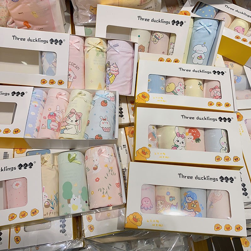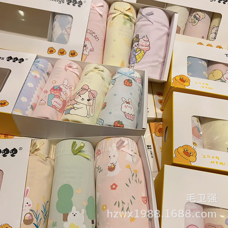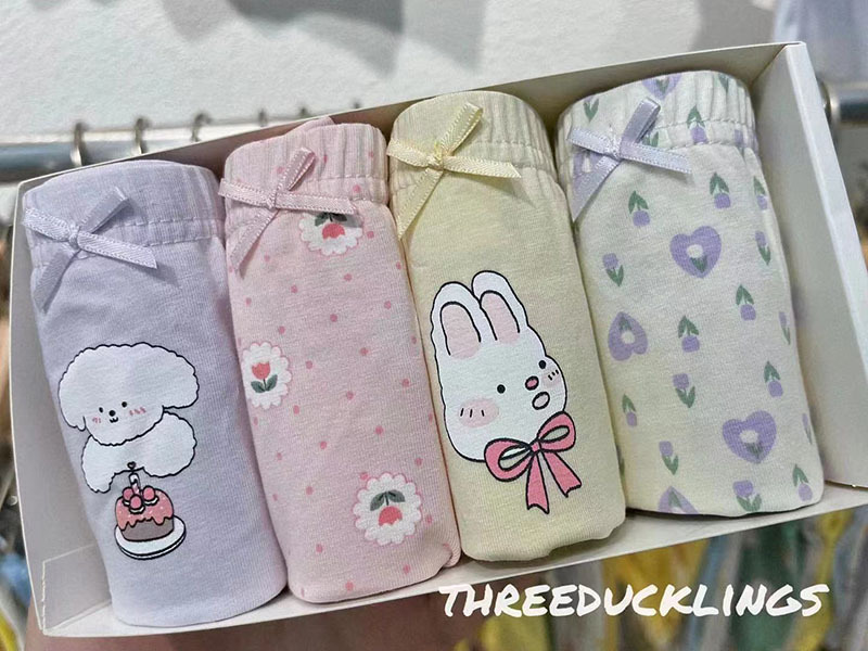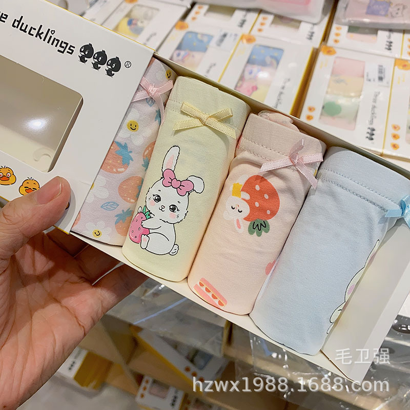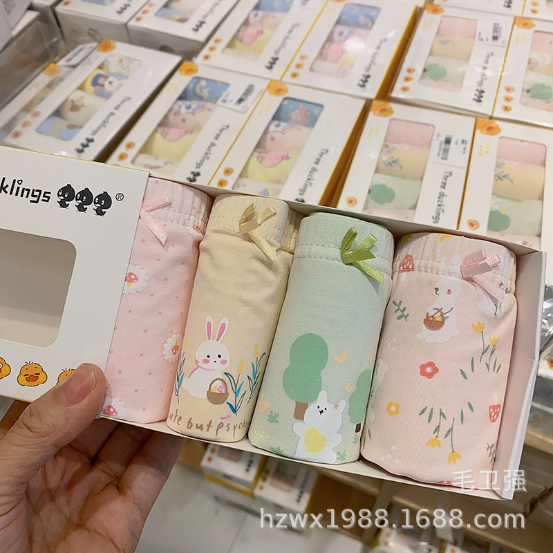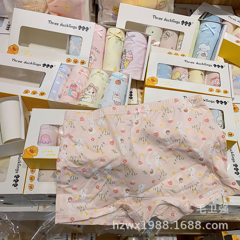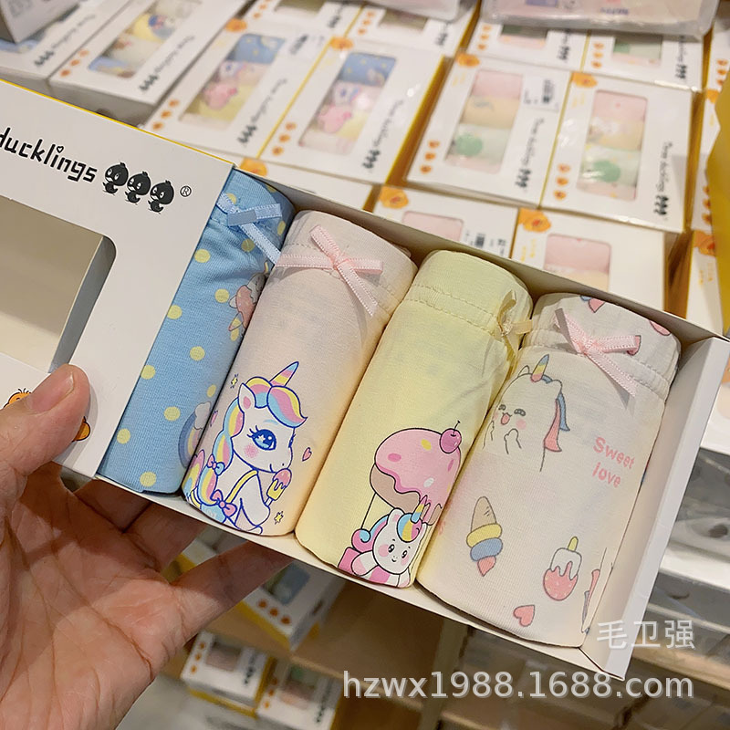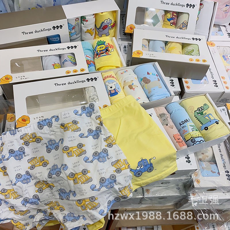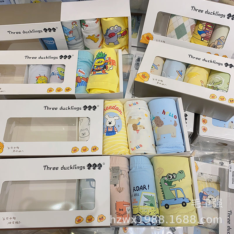 새끼 오리 어린이 속옷 면 4 개 소년과 소녀 만화 인쇄 뼈없는 복서 팬티스토어 가기