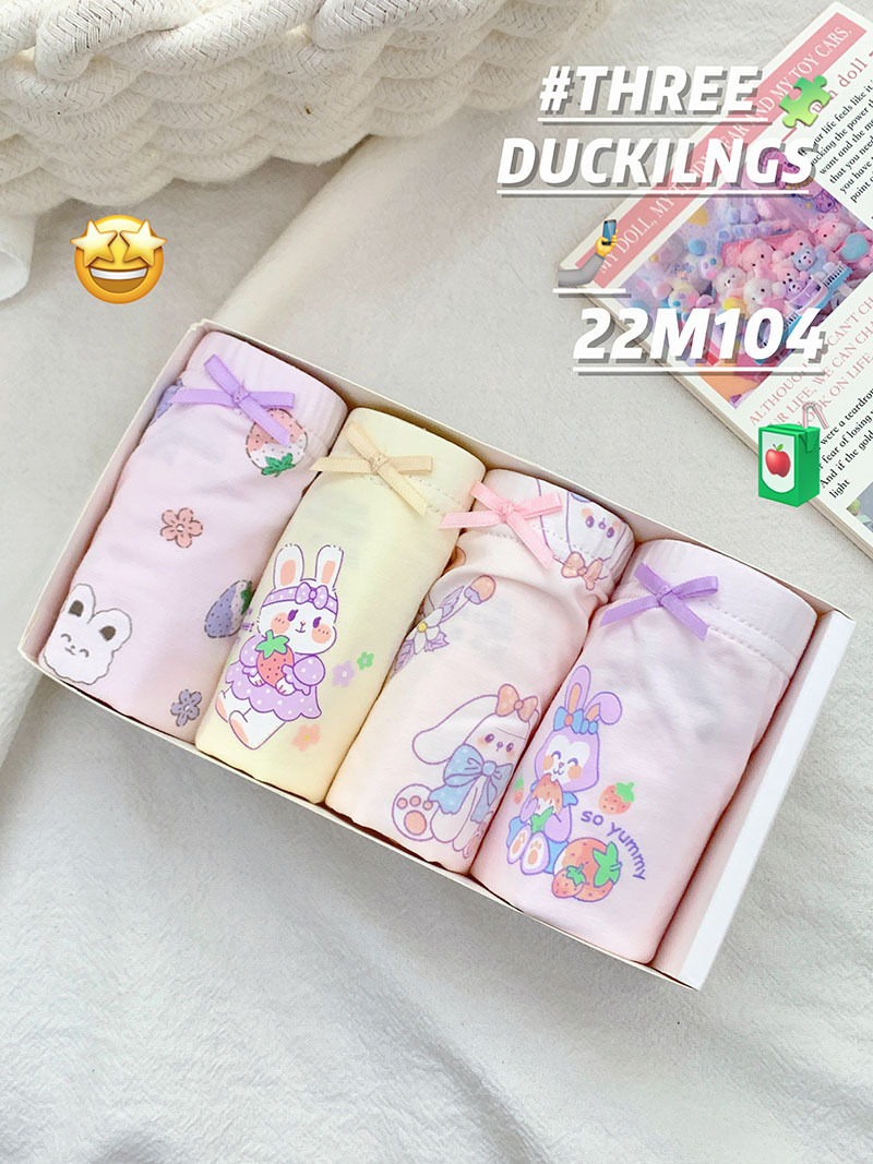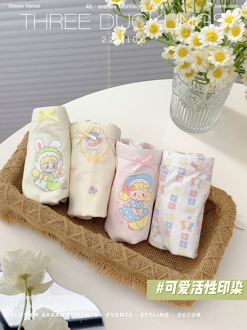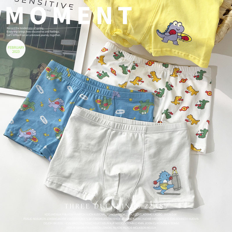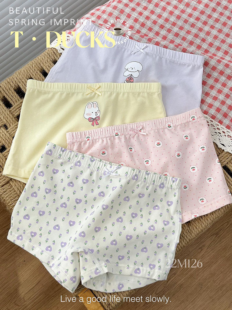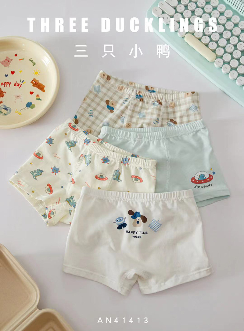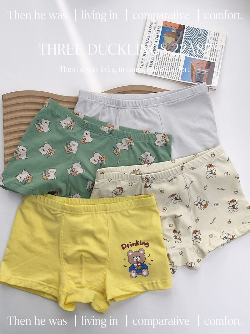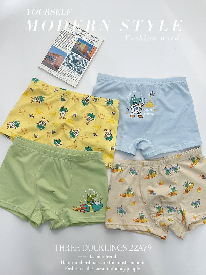 새끼 오리 어린이 속옷 면 4 개 소년과 소녀 만화 인쇄 뼈없는 복서 팬티