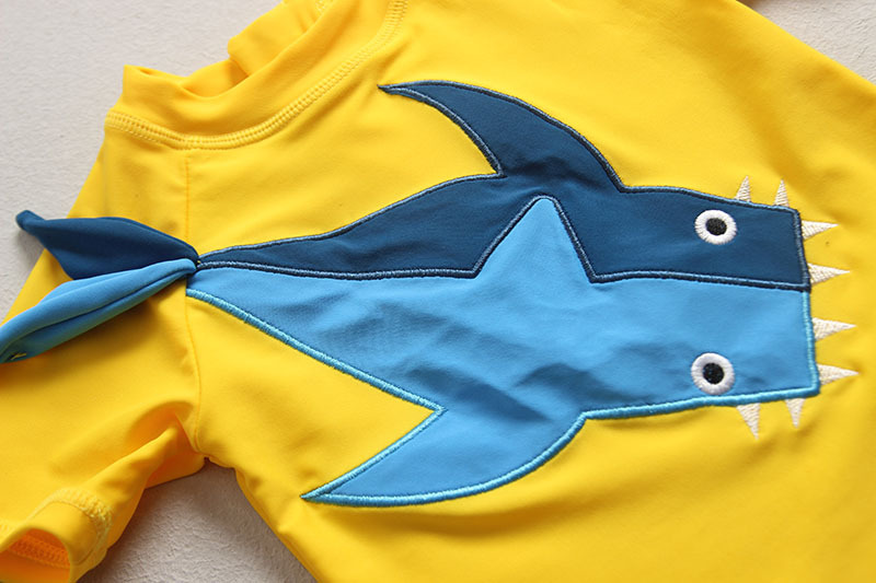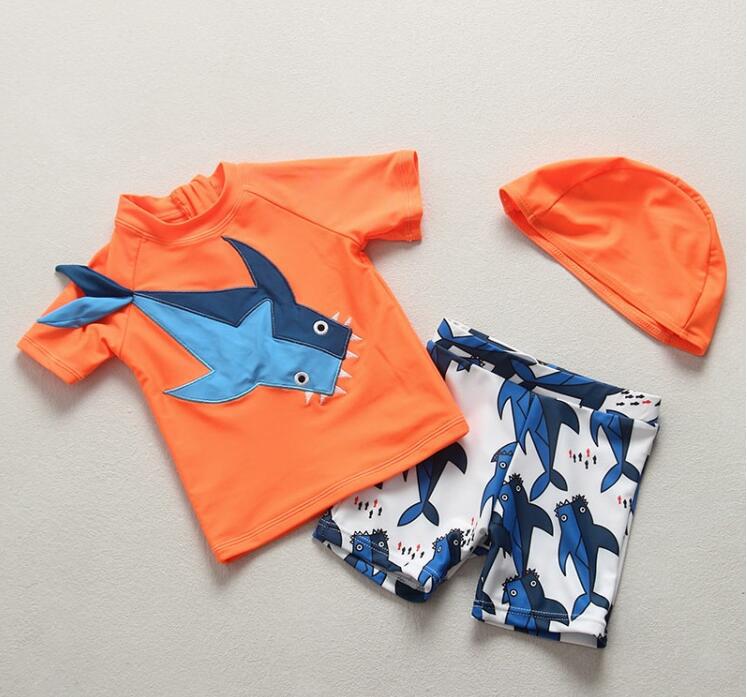 의 대외 무역 여름 새로운 소년 분할 상어 수영복 어린이 반팔 수영복 바지 세트 한국 아기 서퍼 의류스토어 가기
