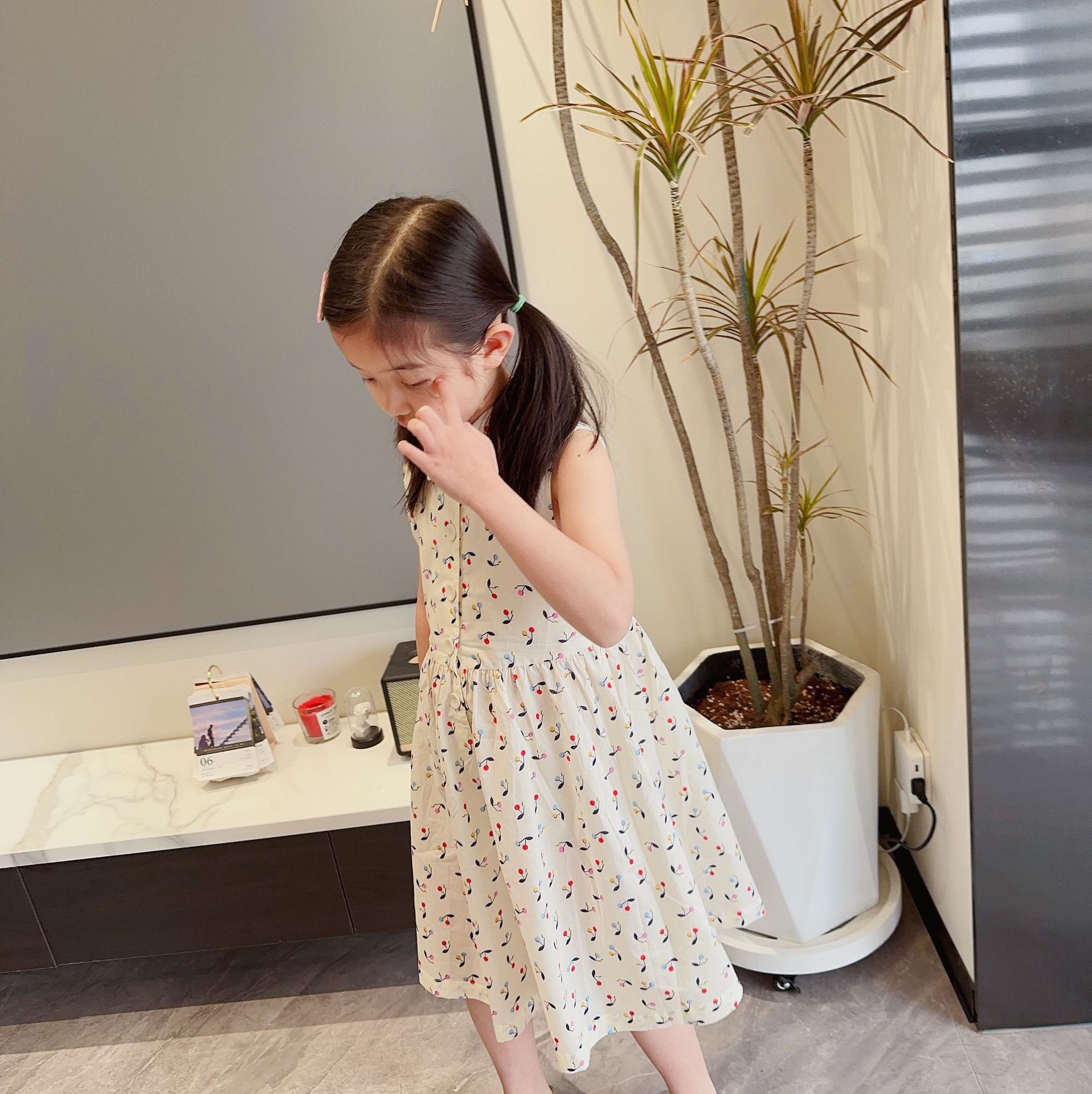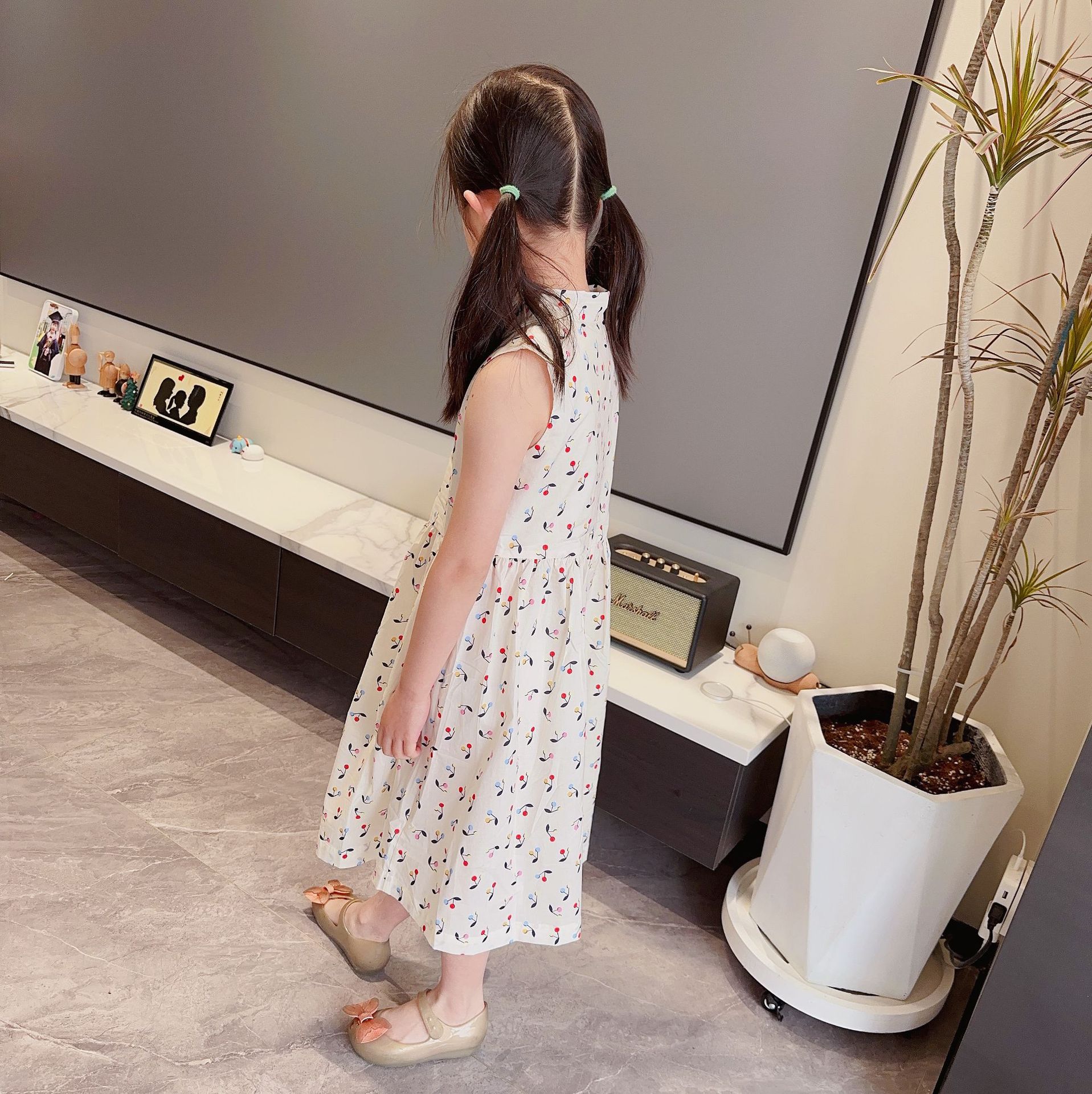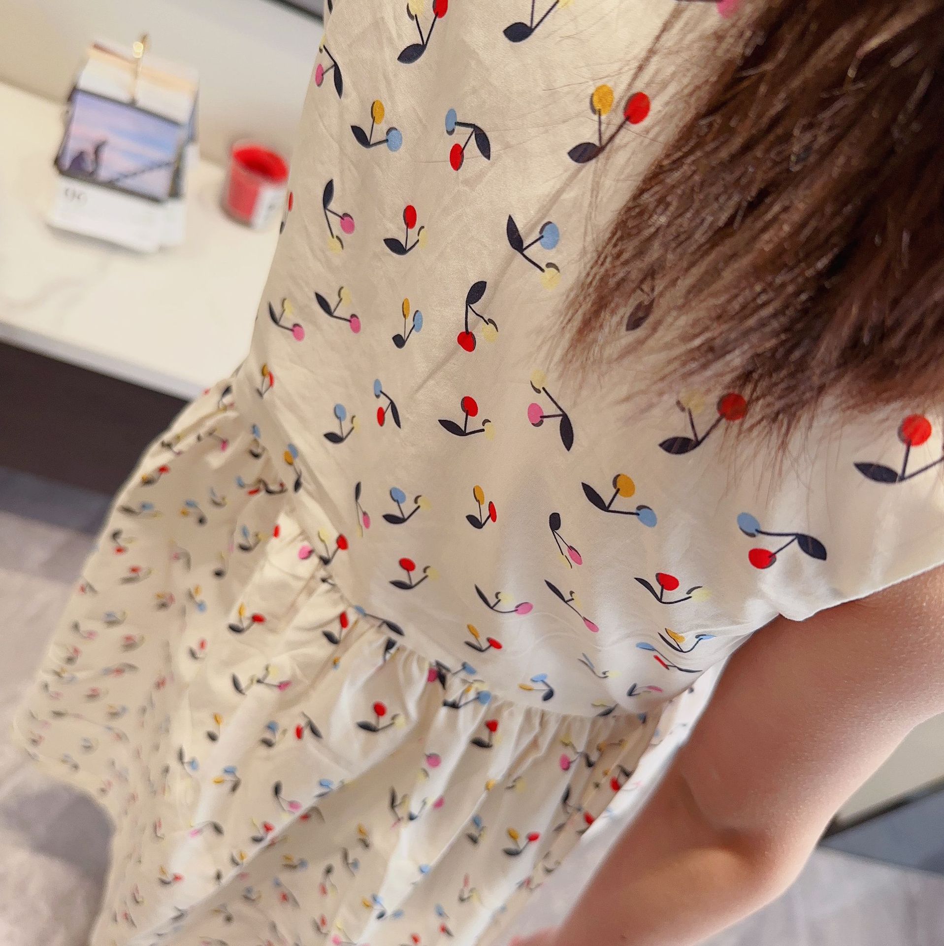 2025 여름 새로운 민소매 드레스 소녀 조끼 드레스 체리 프린트 코튼 롱 드레스 어린이 달콤한스토어 가기