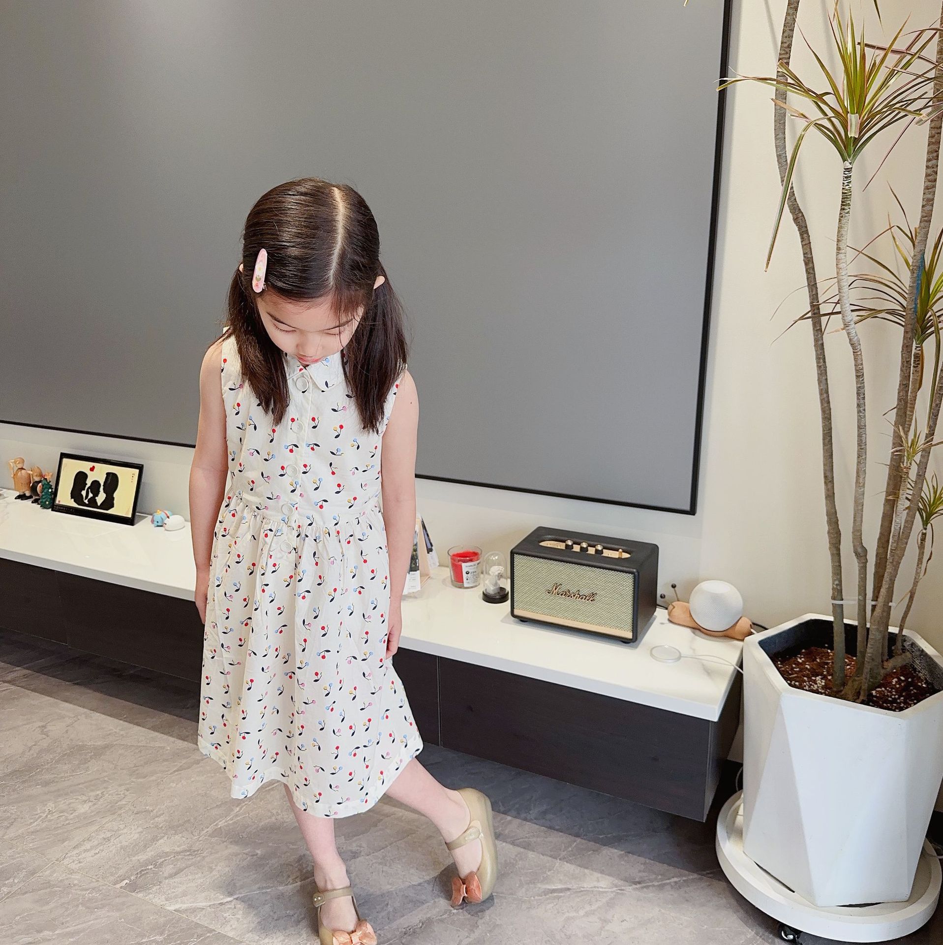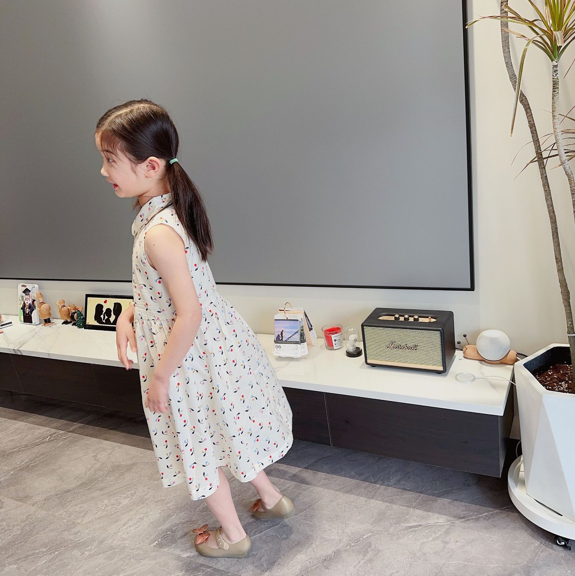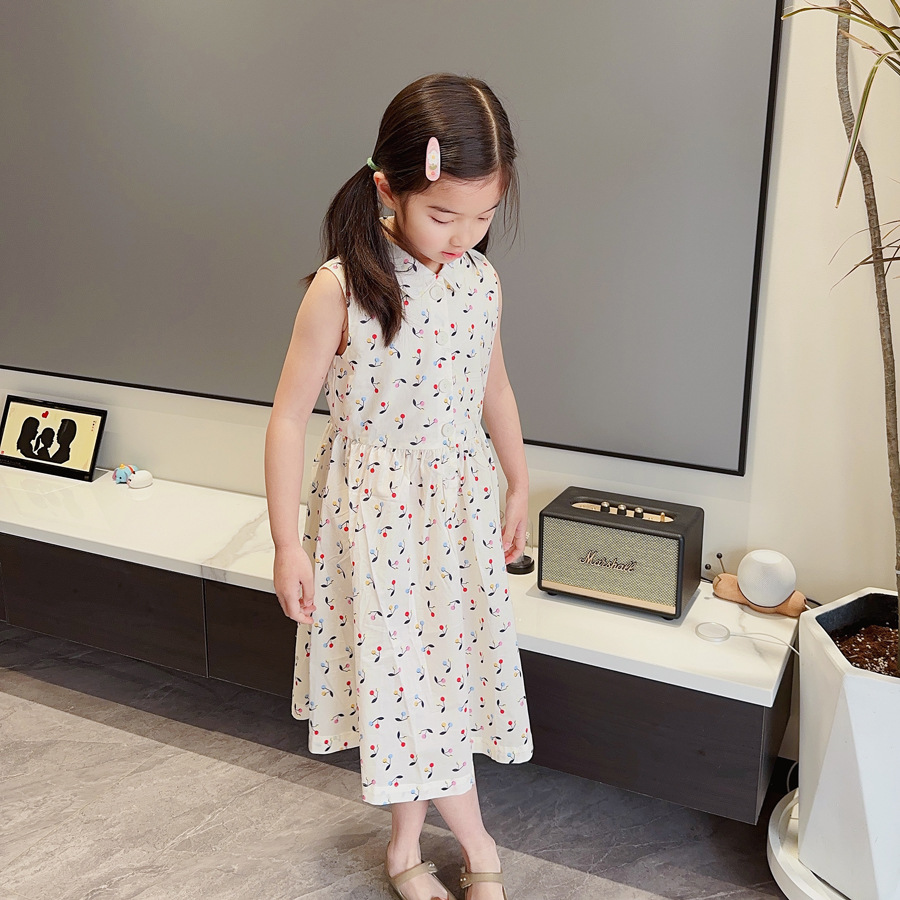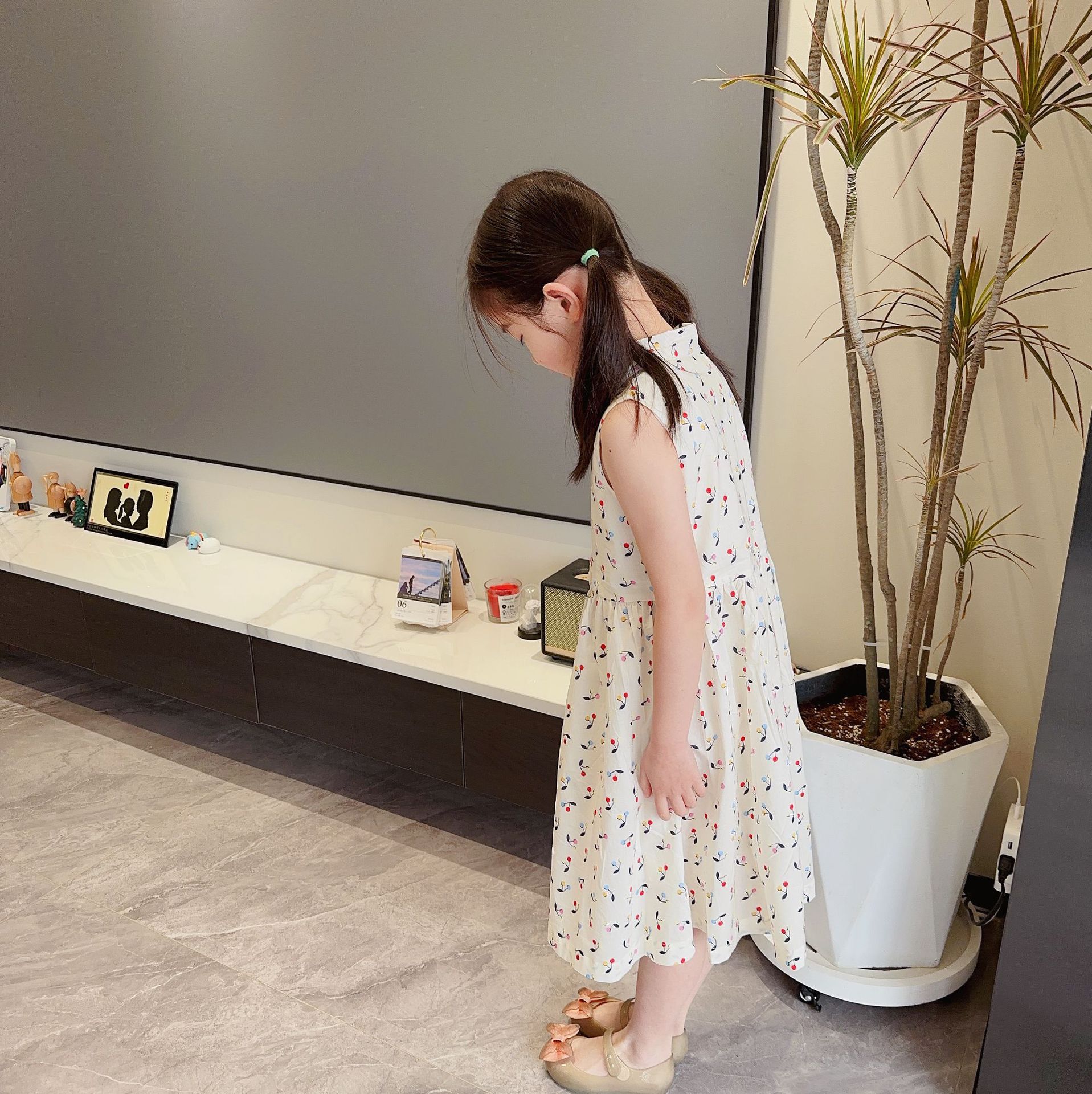 2025 여름 새로운 민소매 드레스 소녀 조끼 드레스 체리 프린트 코튼 롱 드레스 어린이 달콤한스토어 가기