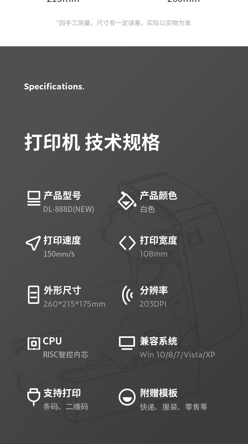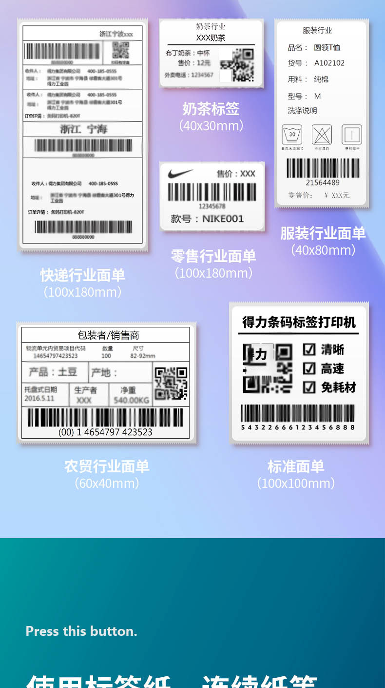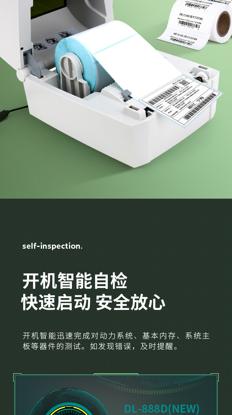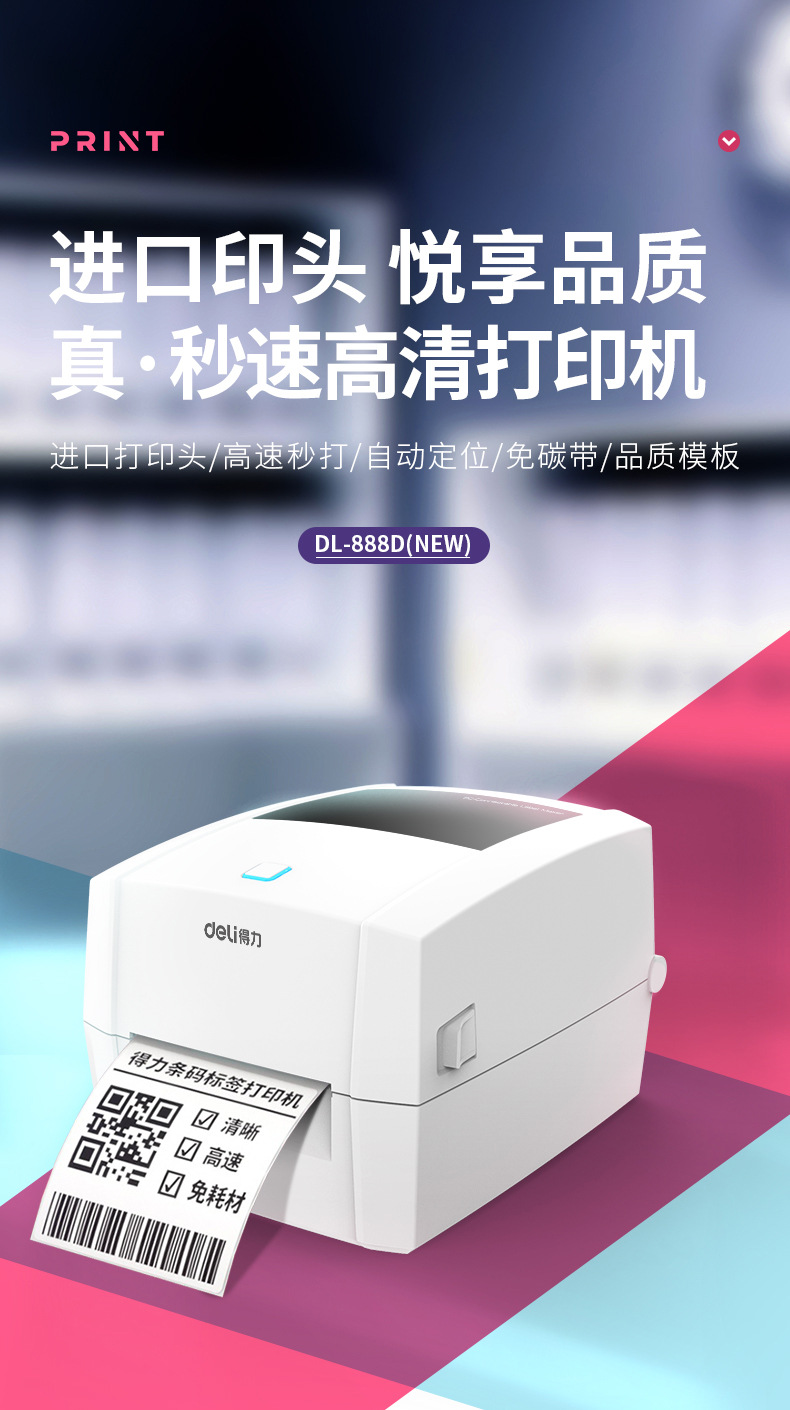 델리 열 라벨 프린터 DL-888DS 자체 접착 2 차원 코드 바코드 익스프레스 전자 얼굴 싱글 독립형