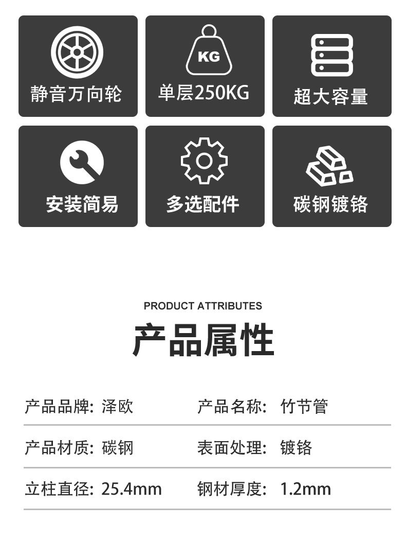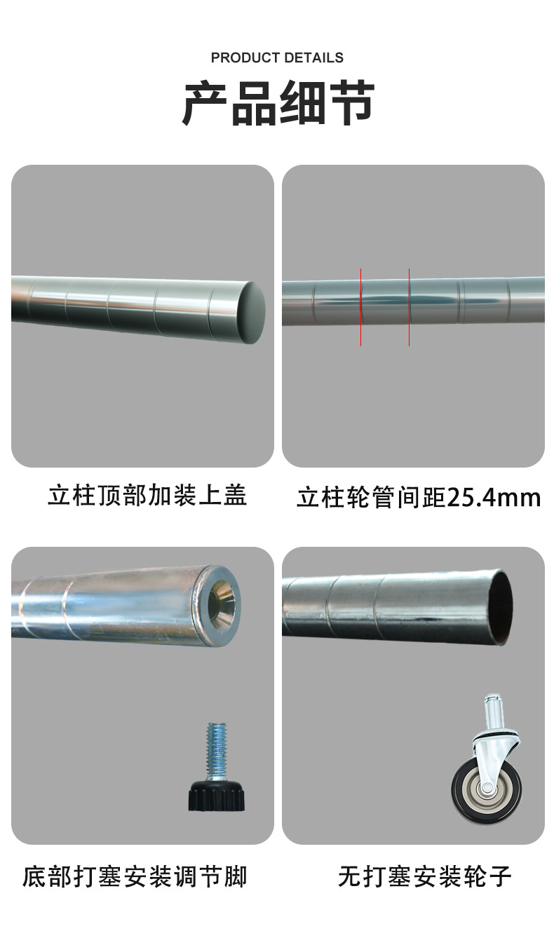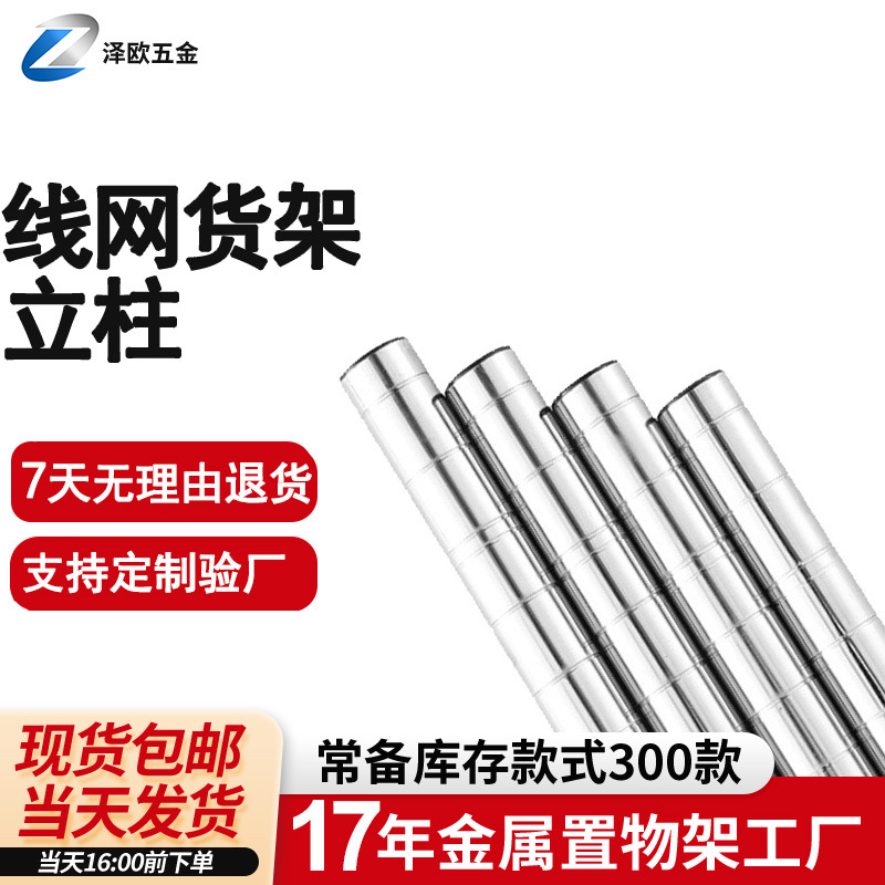 线网货架立柱  镀铬置物架收纳架配件竹节管大管直径25.4mm加粗管