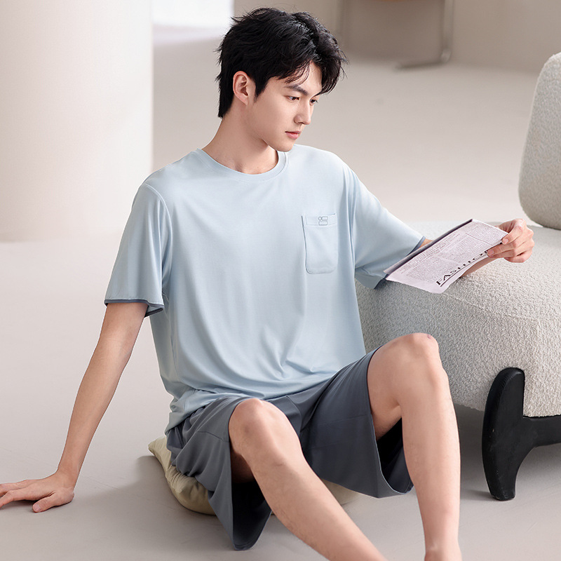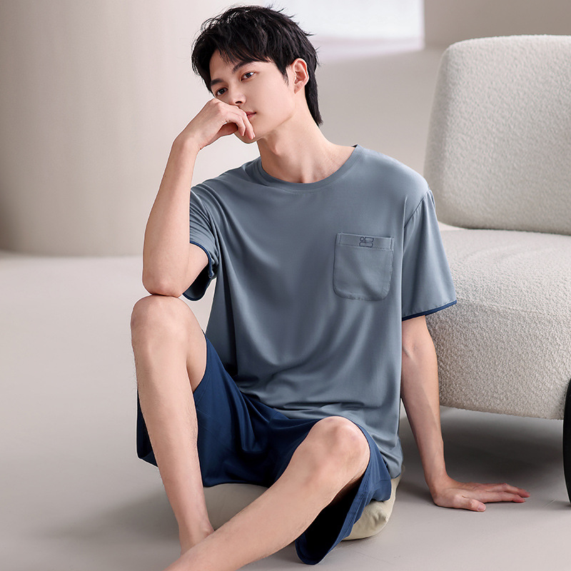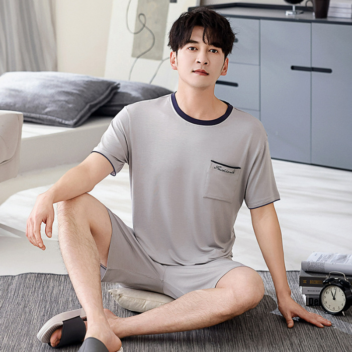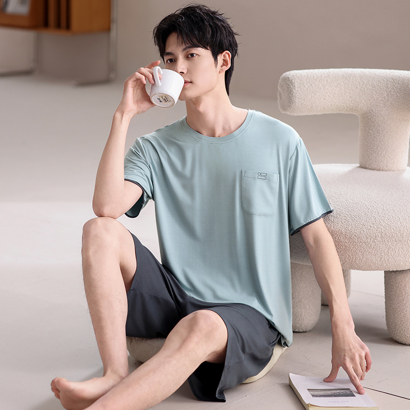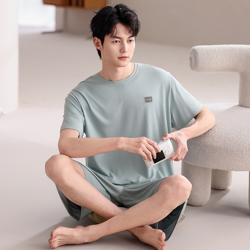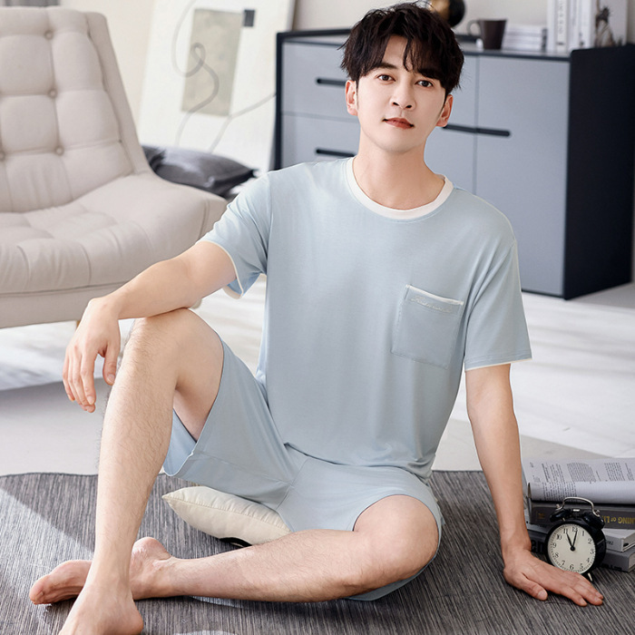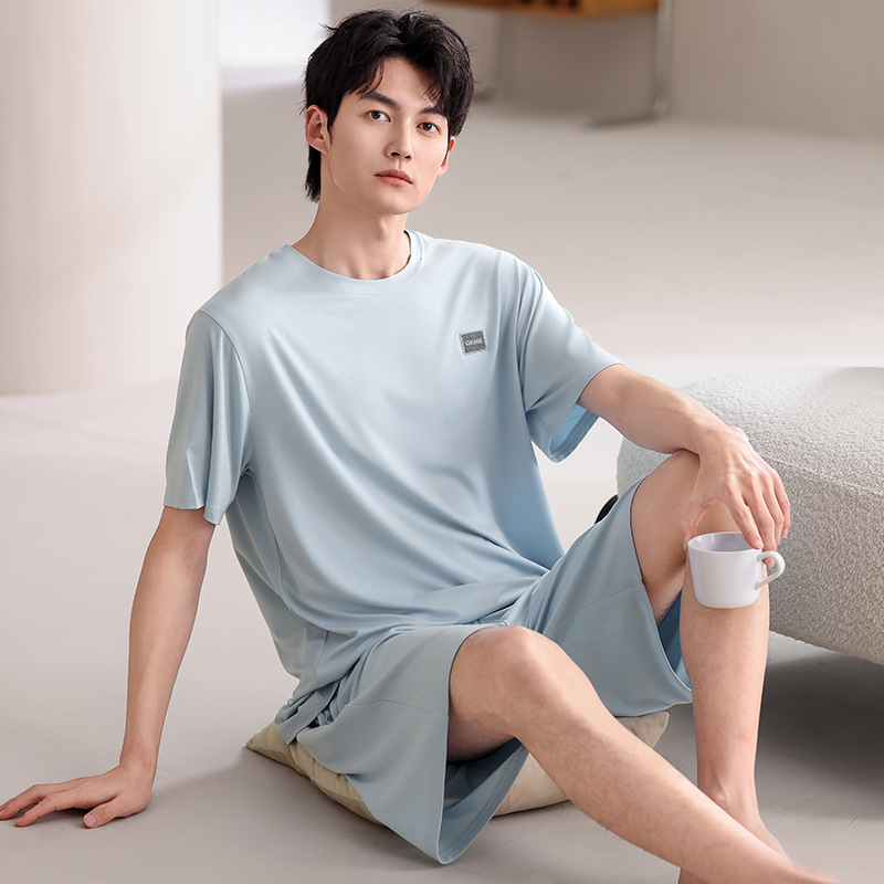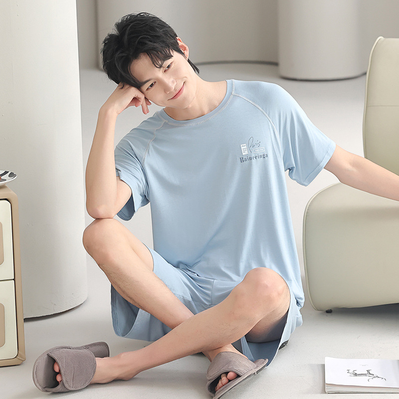 여름 남성 잠옷, 모달 코튼 반팔, 대형 캐주얼 남성 아우터 잠옷, 조끼, 홈웨어 세트, 드롭쉬핑스토어 가기