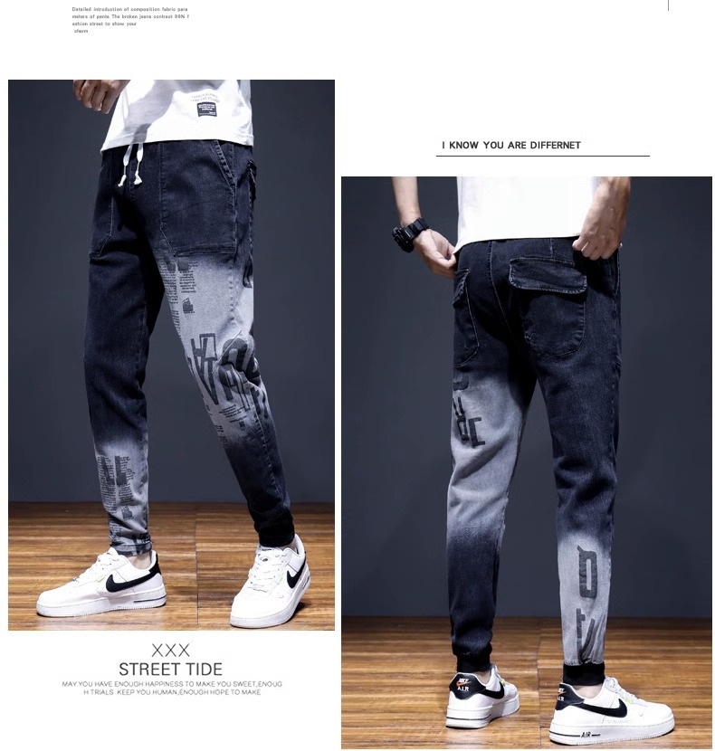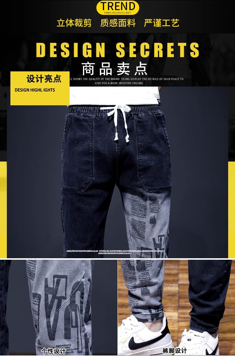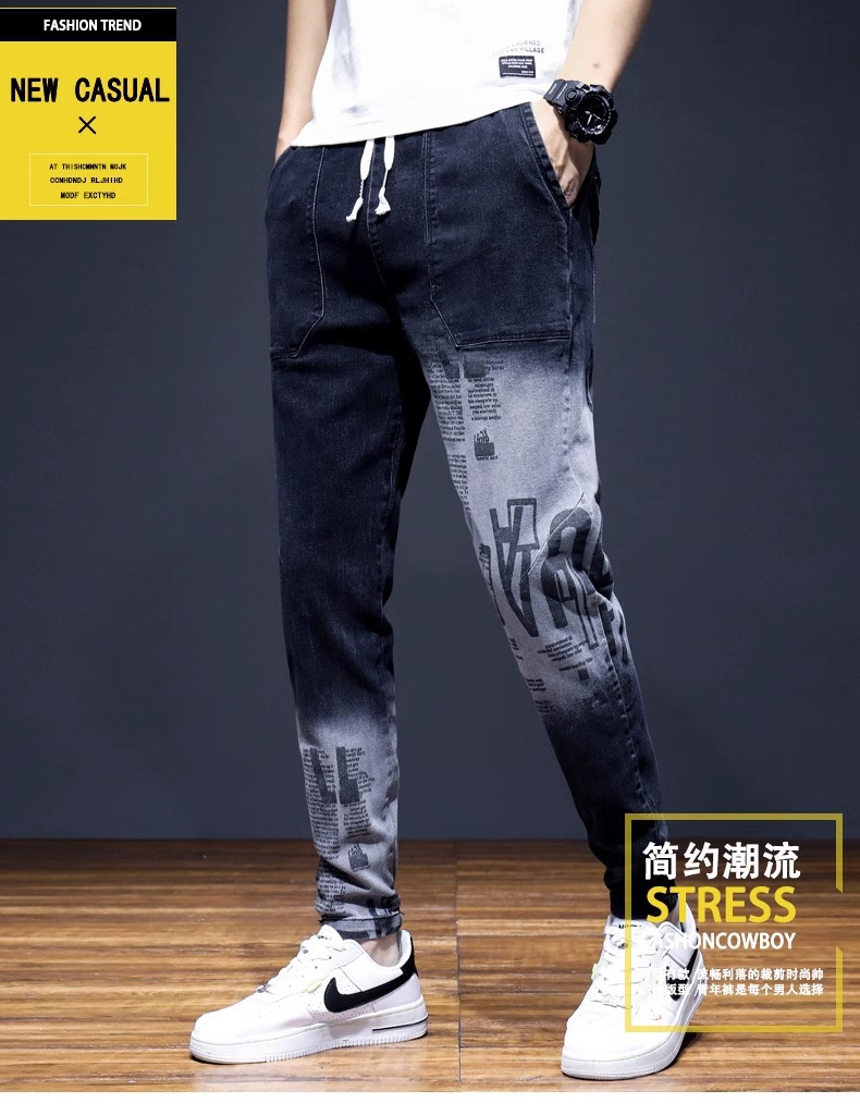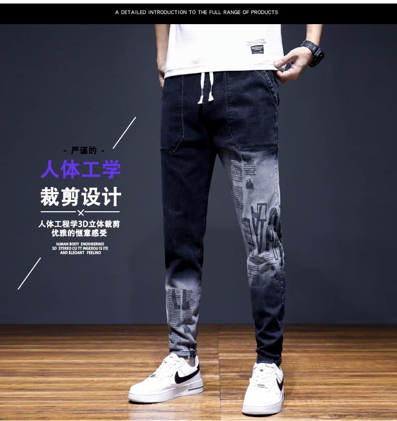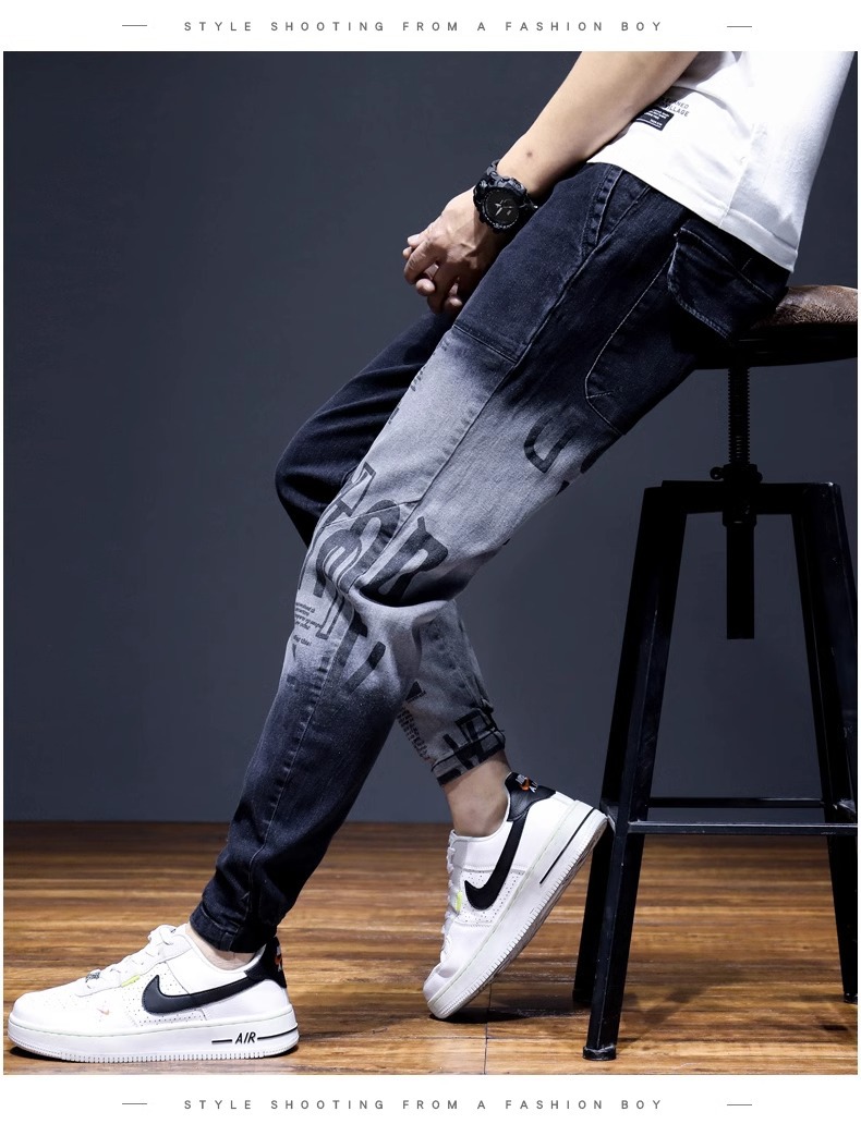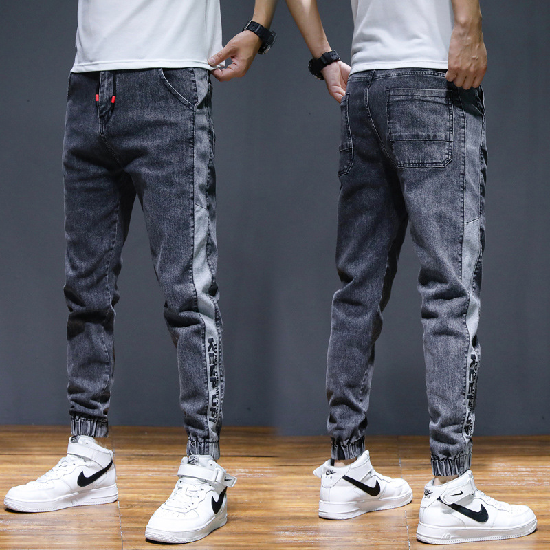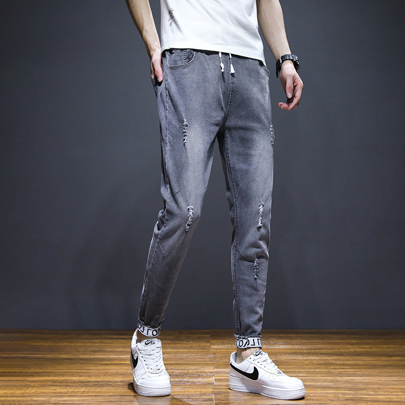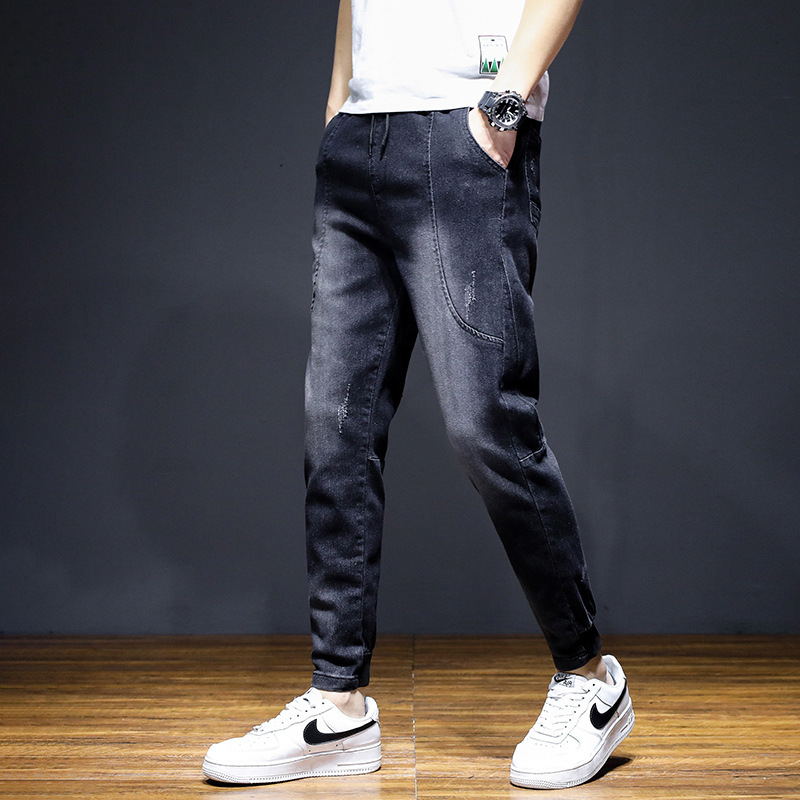 여름 크롭 진 남성 한국 스타일 슬림핏 스키니 팬츠 트렌디 브랜드 남성 봄과 가을 블랙 할란 남성 바지스토어 가기