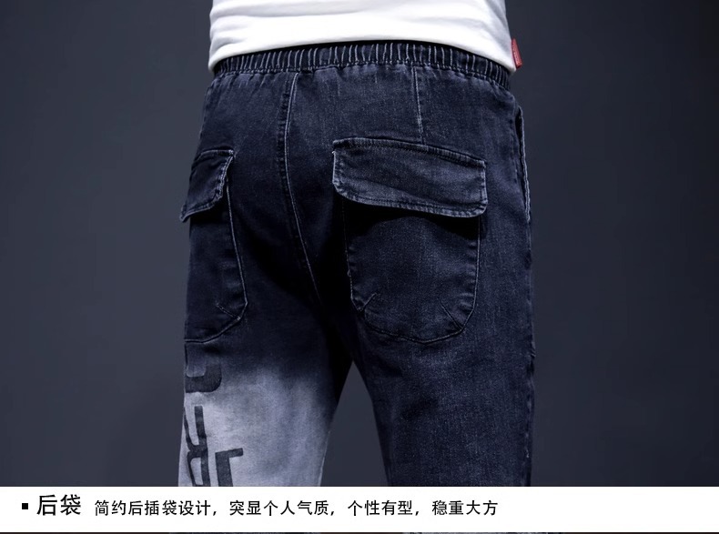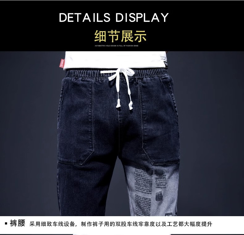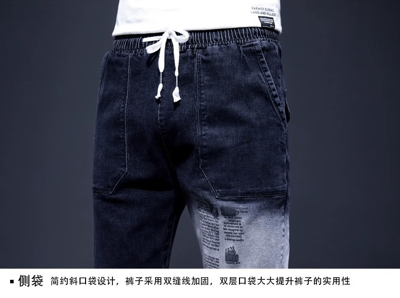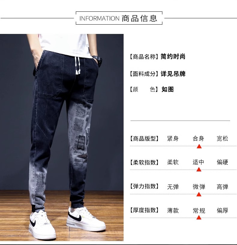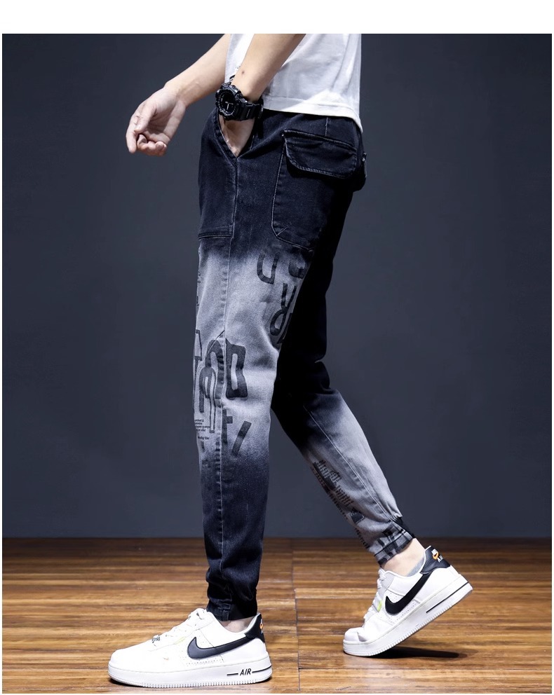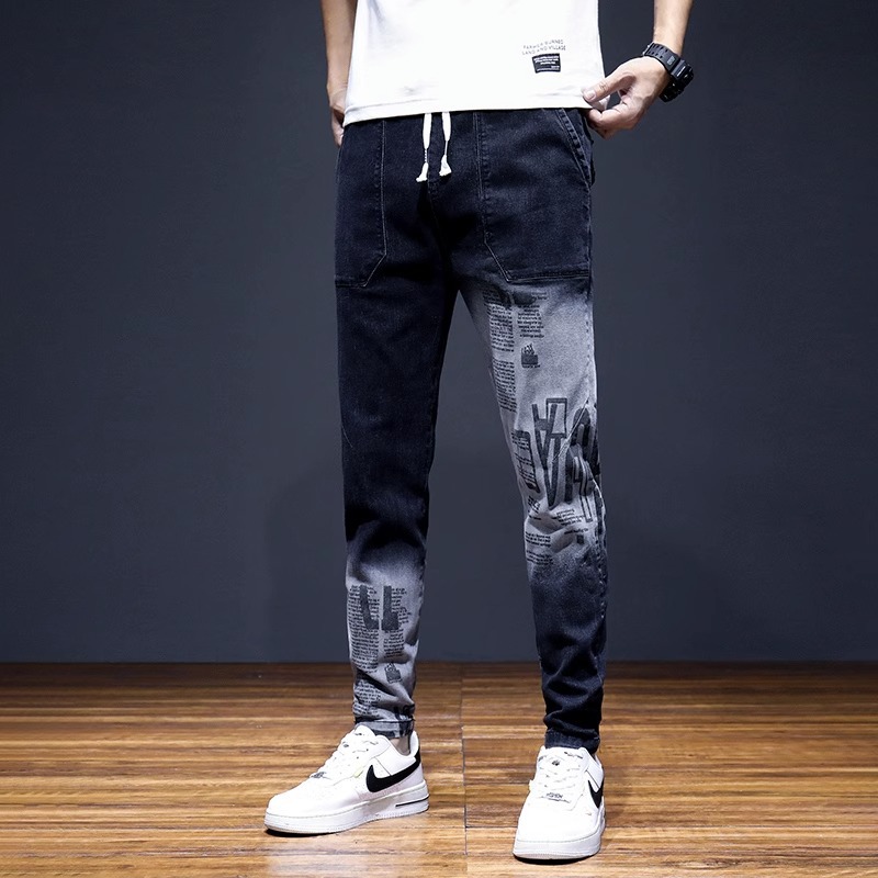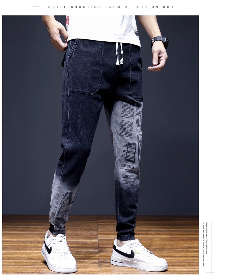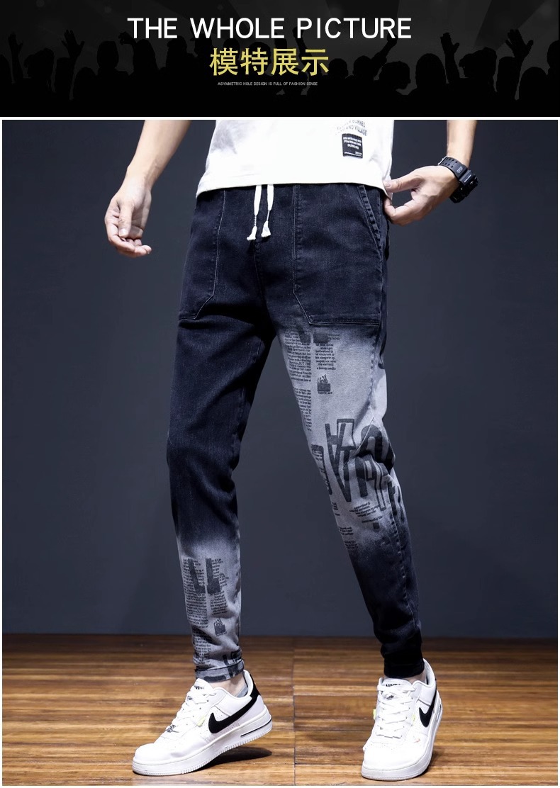 여름 크롭 진 남성 한국 스타일 슬림핏 스키니 팬츠 트렌디 브랜드 남성 봄과 가을 블랙 할란 남성 바지스토어 가기