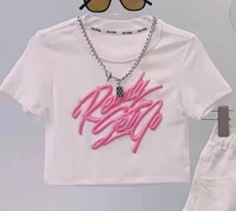여자 여름 세트 2024 여름 원피스 큰 키즈 반팔 니트 스웨터 모피 엣지 반바지 유행 투피스 세트