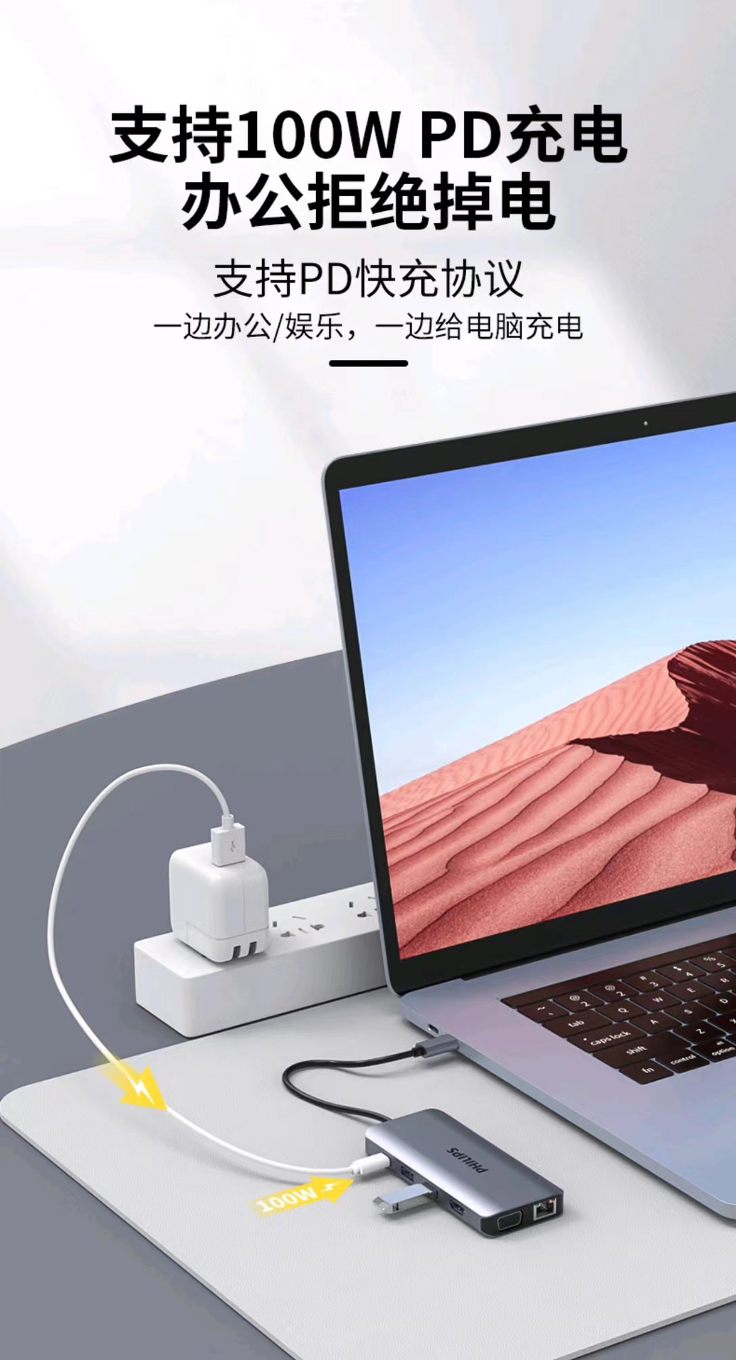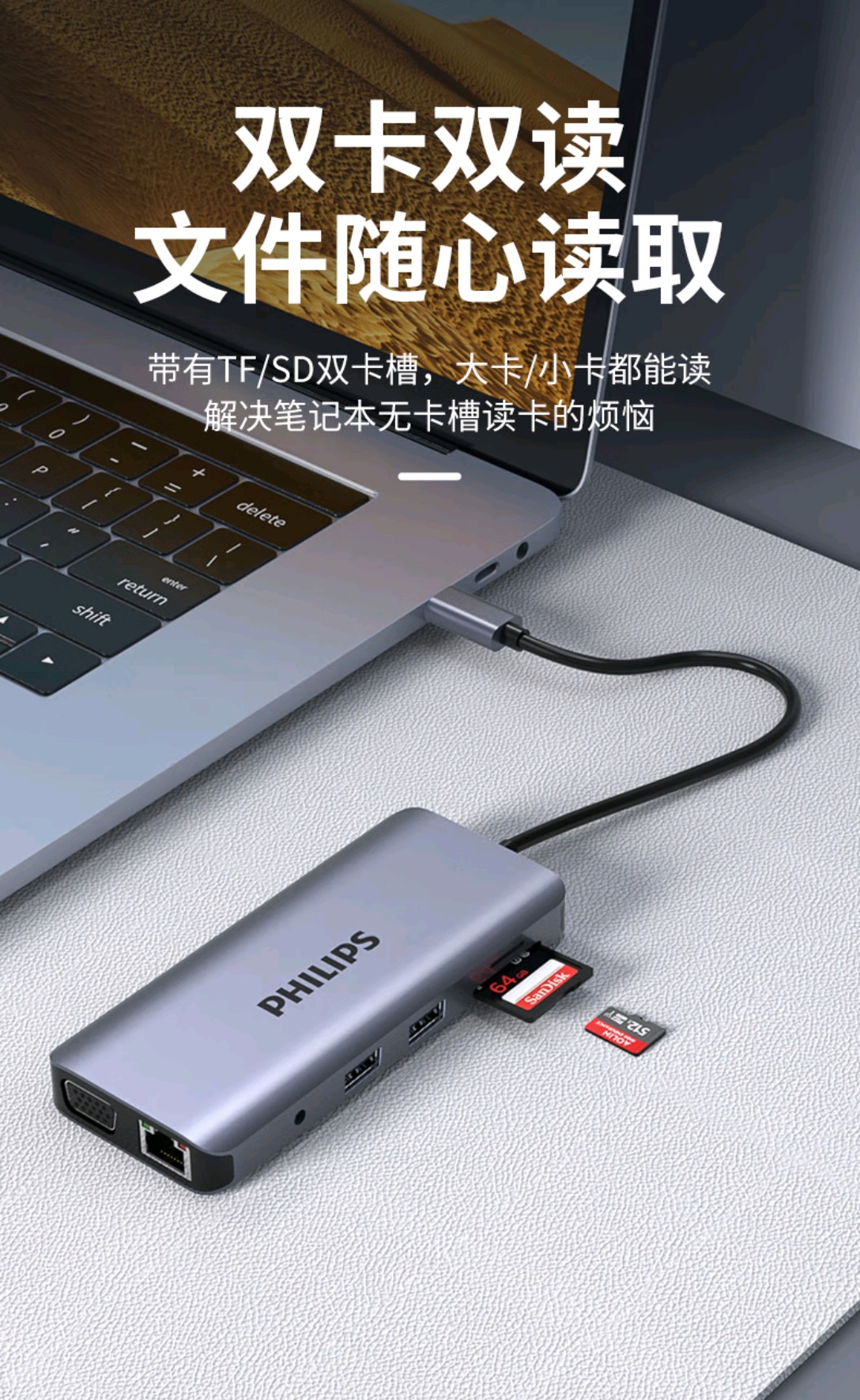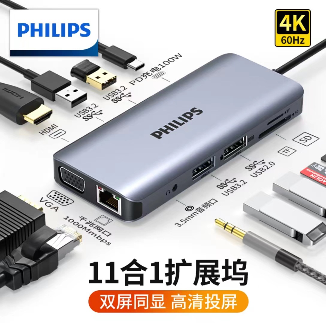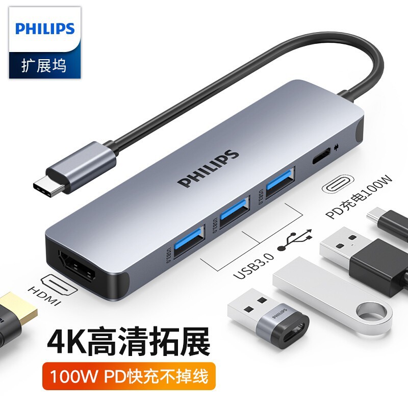 필립스 TypeC 도킹 스테이션 USB-C hdmi 번개 4 도킹 스테이션 USB 스플리터 노트북 컨버터스토어 가기