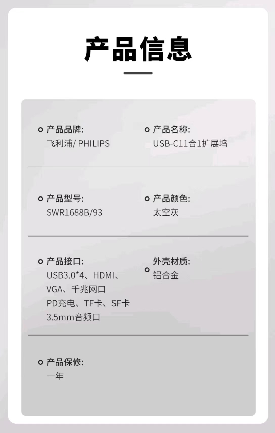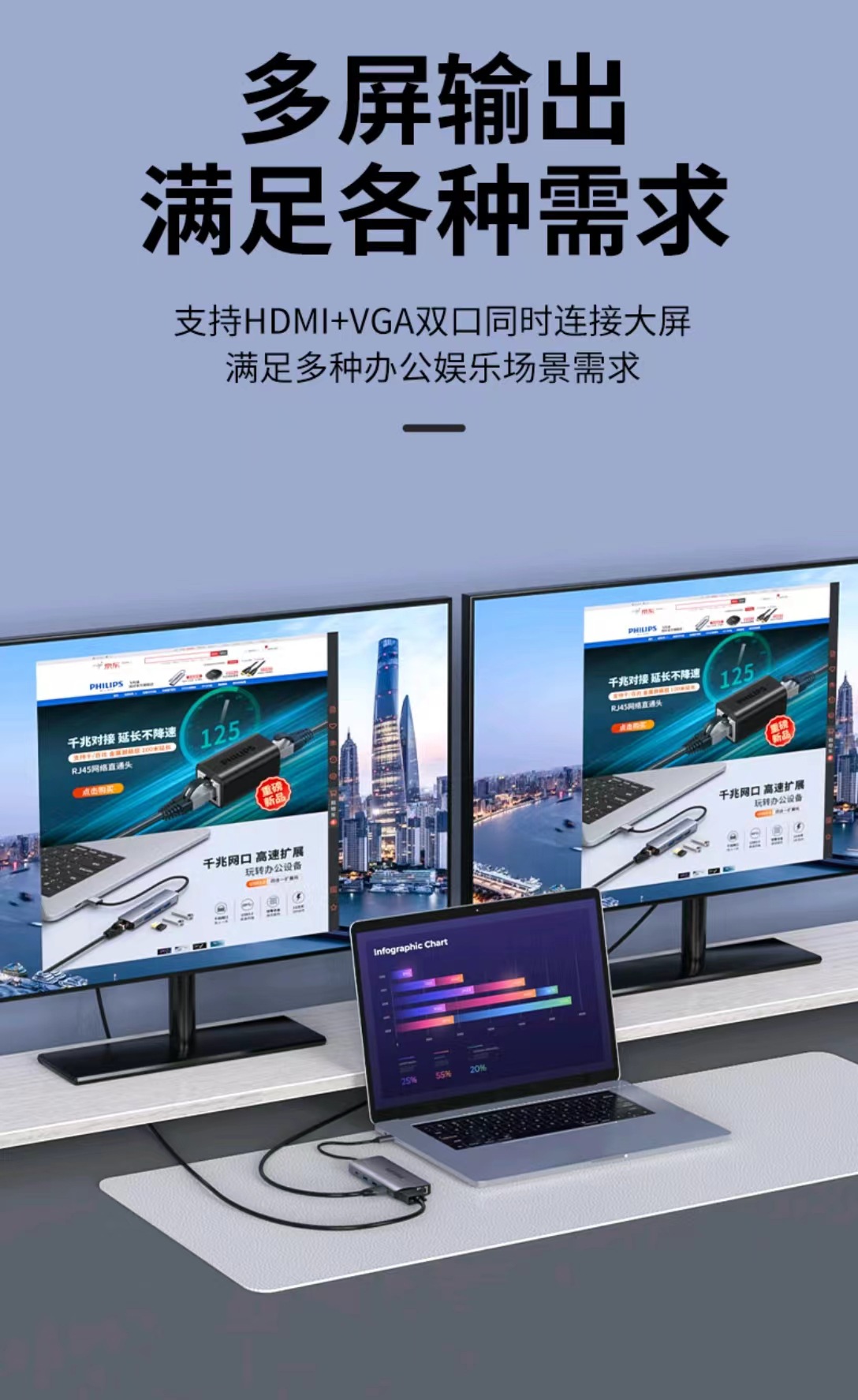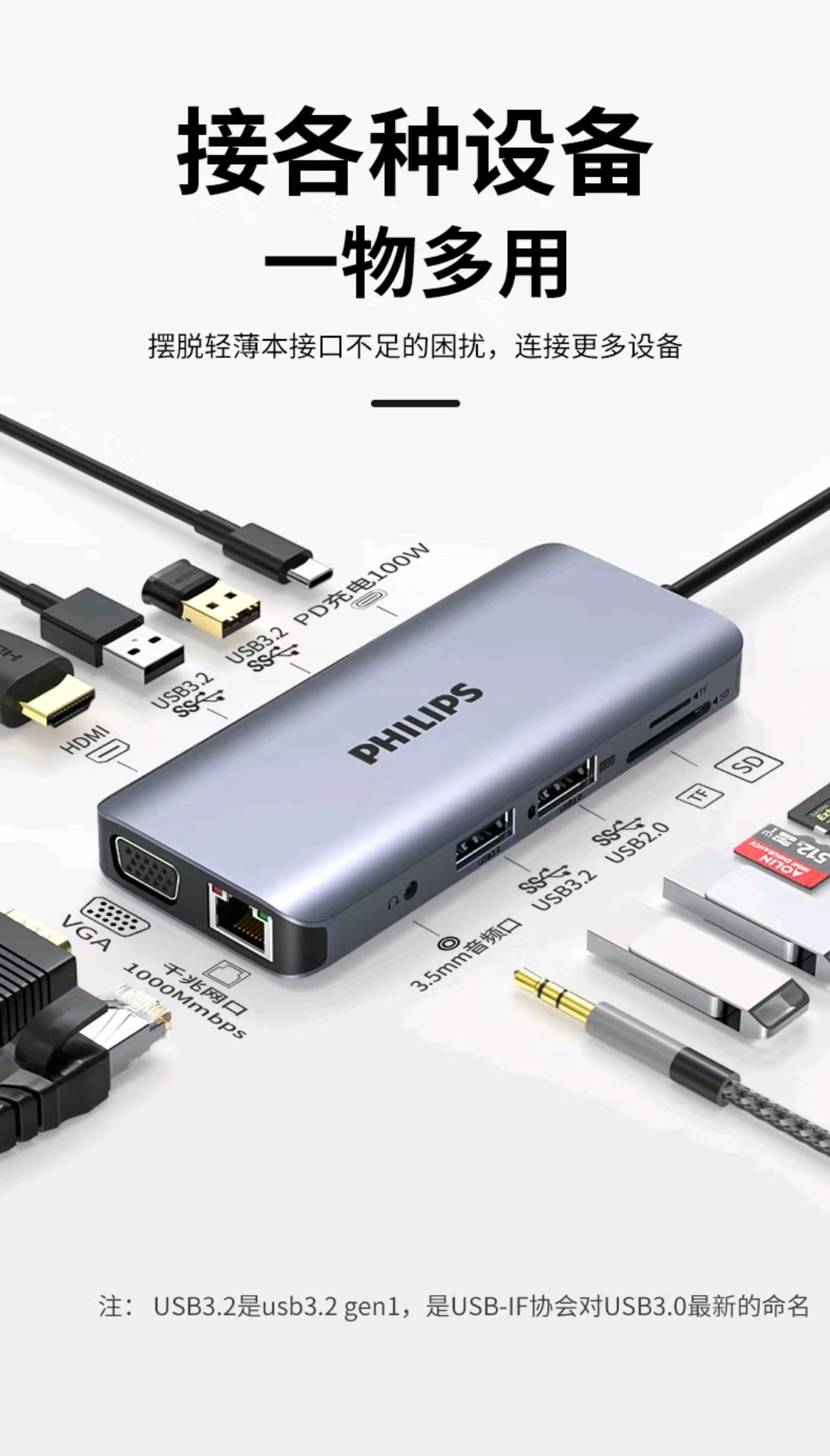 필립스 TypeC 도킹 스테이션 USB-C hdmi 번개 4 도킹 스테이션 USB 스플리터 노트북 컨버터스토어 가기