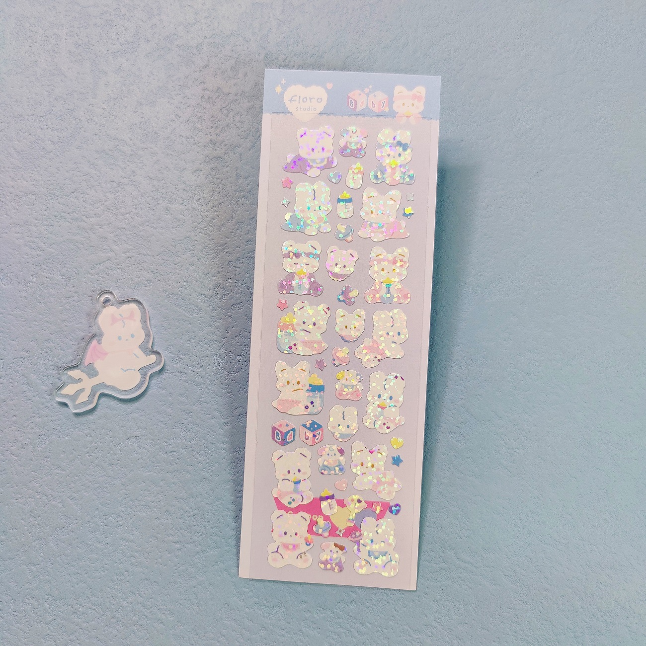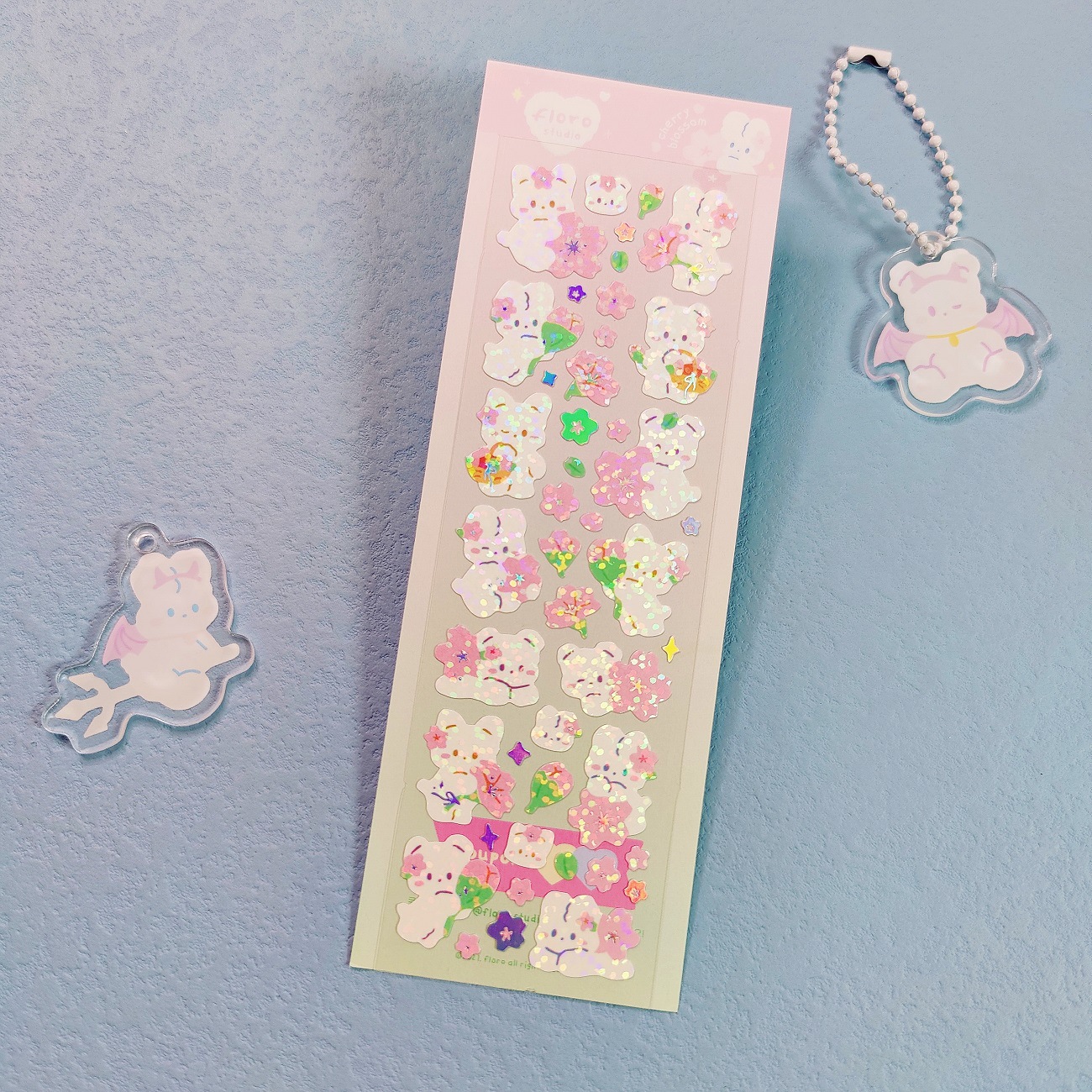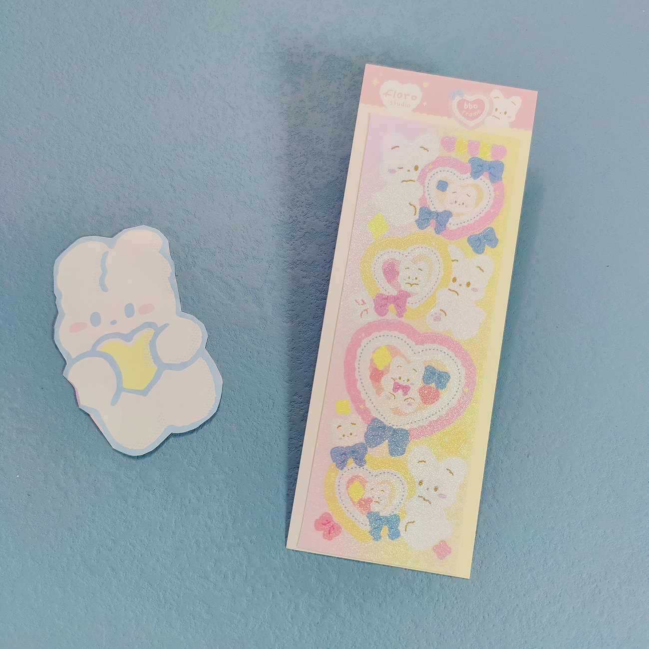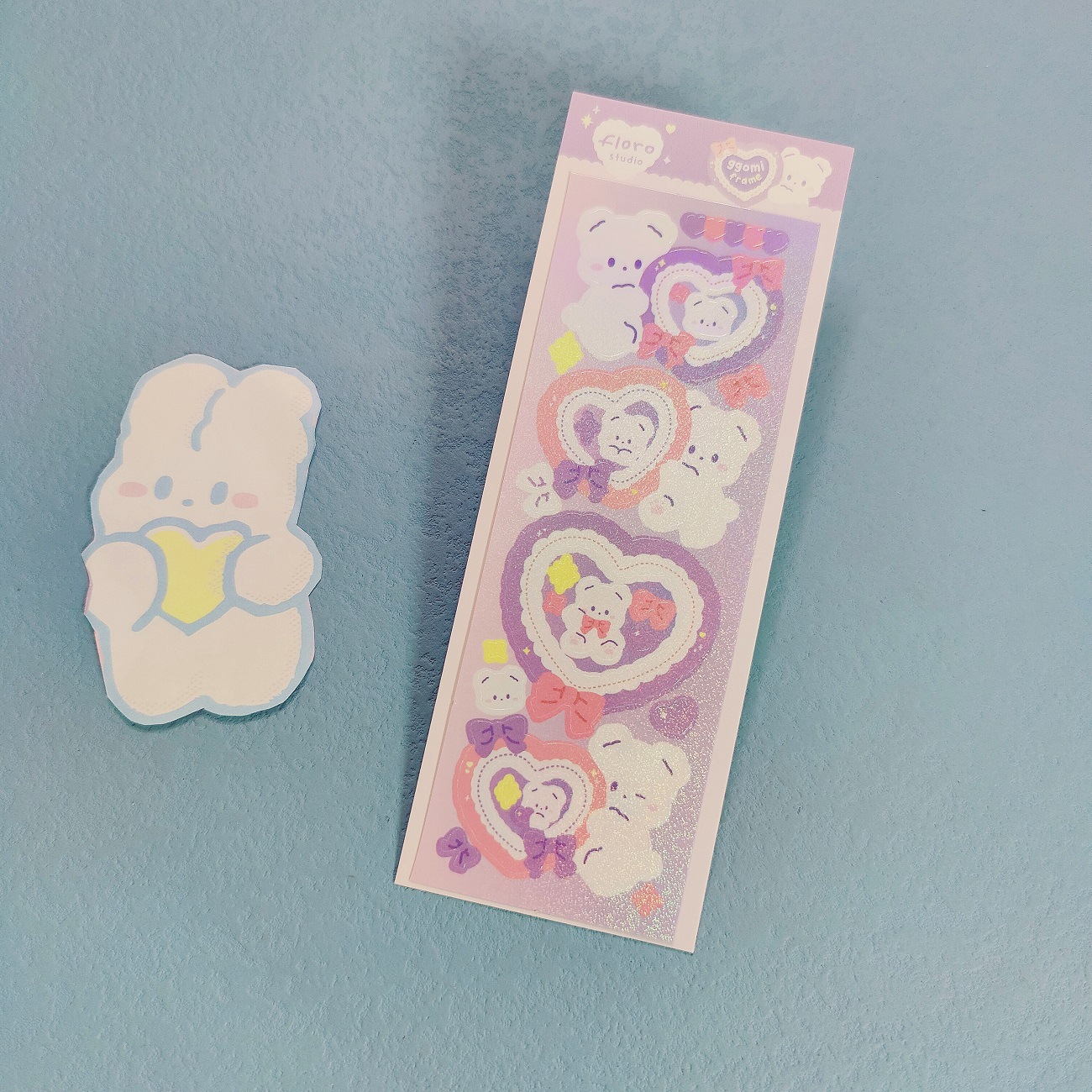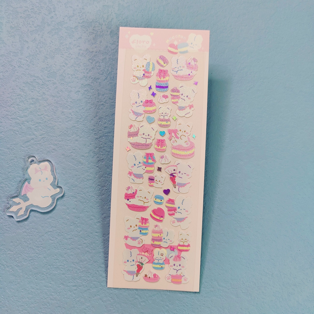 한국 구카 스티커 귀여운 토끼 플로로 은박 반짝이 사진 DIY 스타 추적 스티커 장식 핸드북 재료스토어 가기