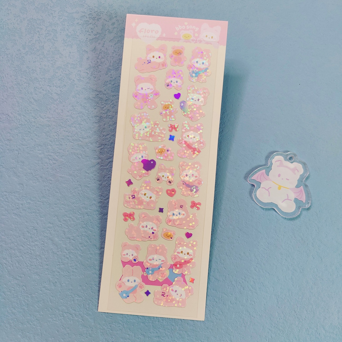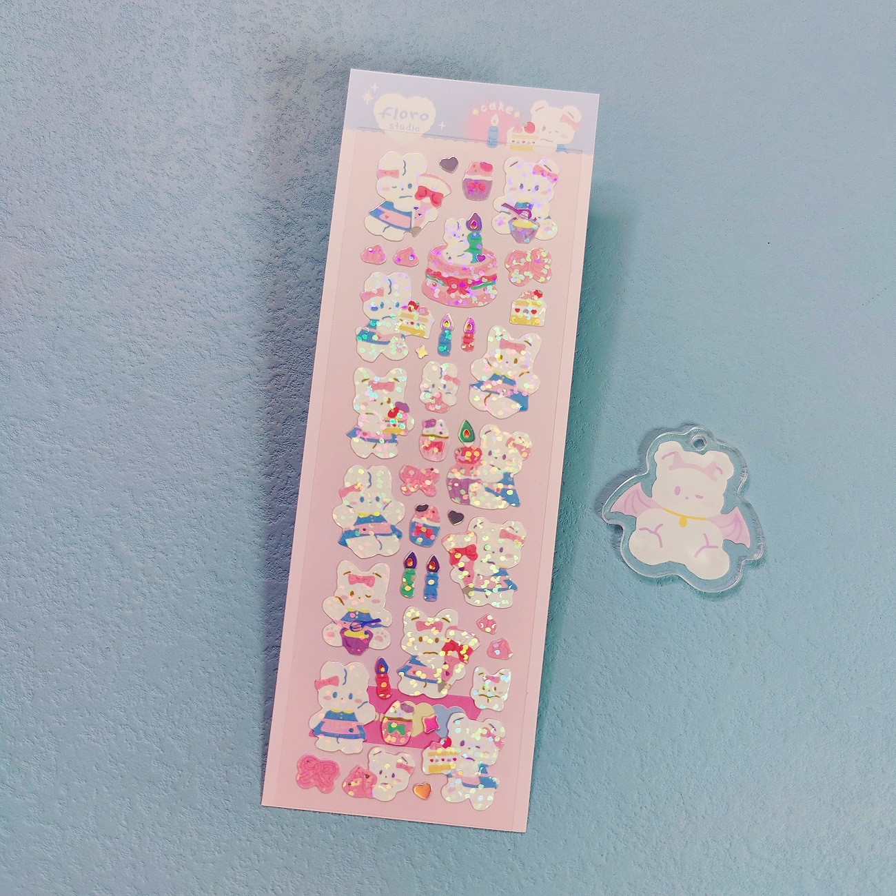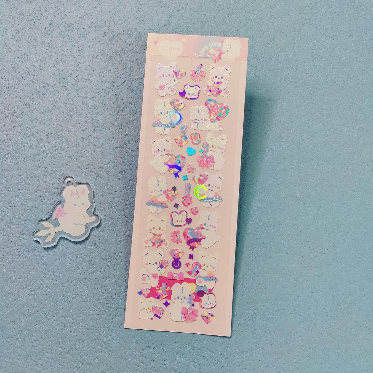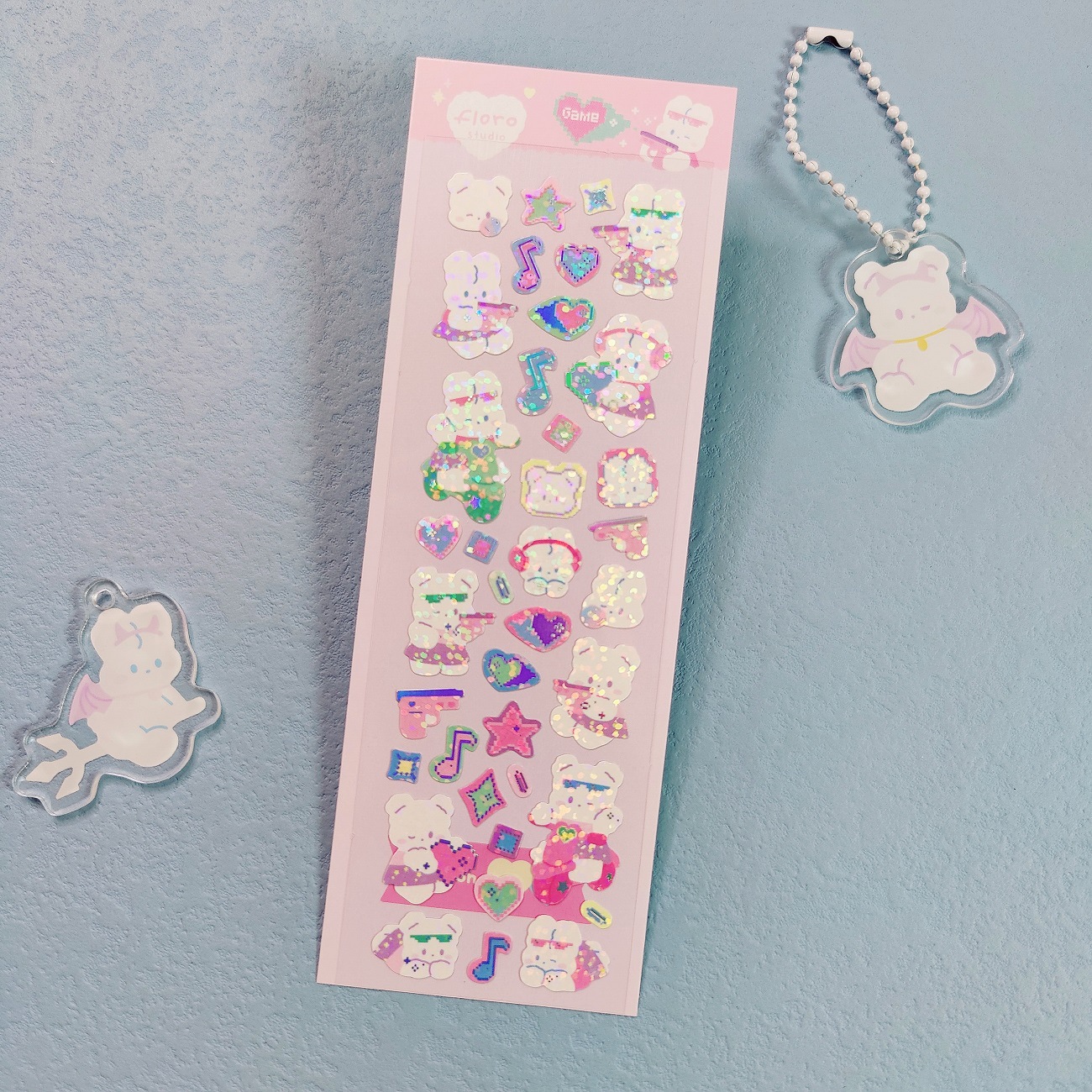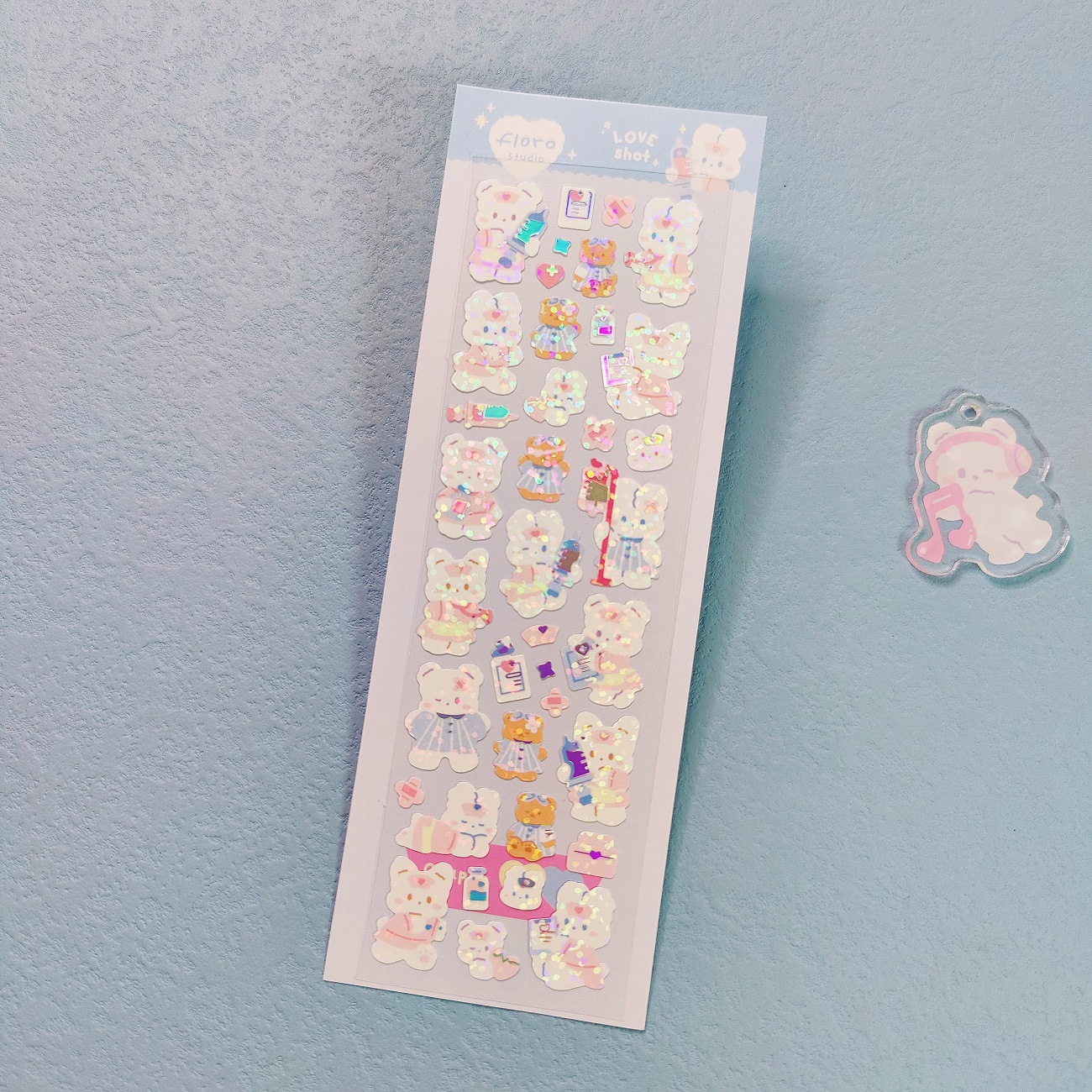 한국 구카 스티커 귀여운 토끼 플로로 은박 반짝이 사진 DIY 스타 추적 스티커 장식 핸드북 재료스토어 가기
