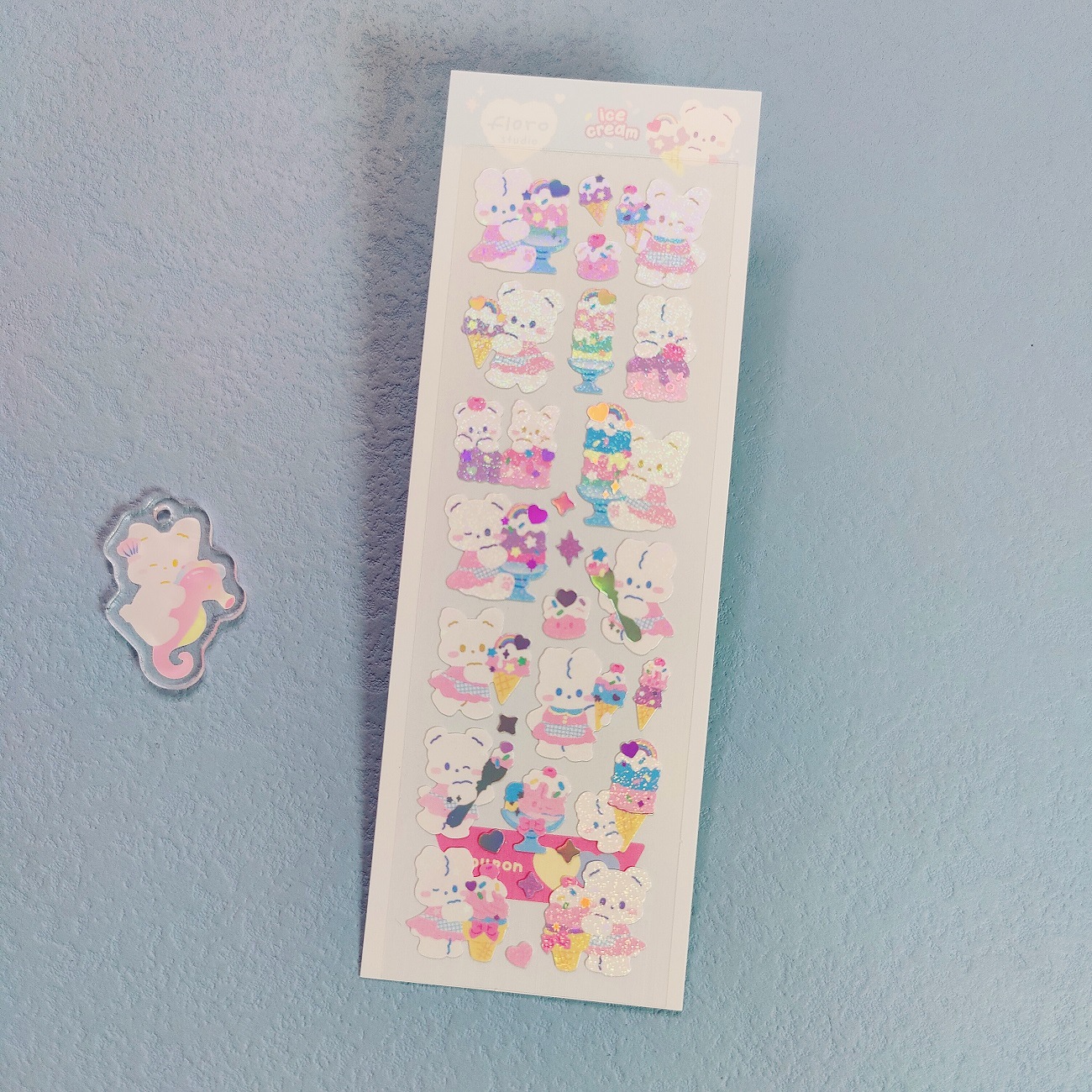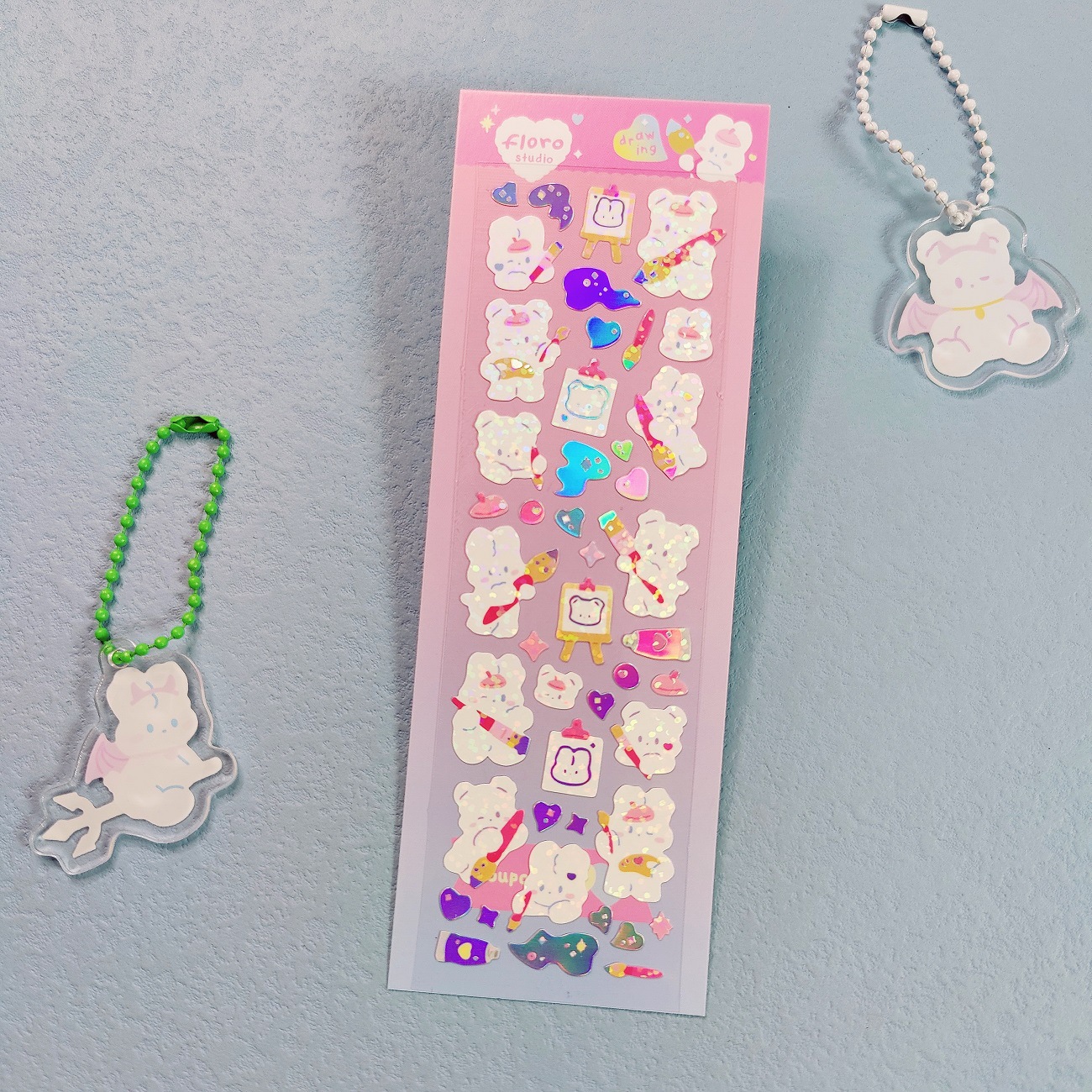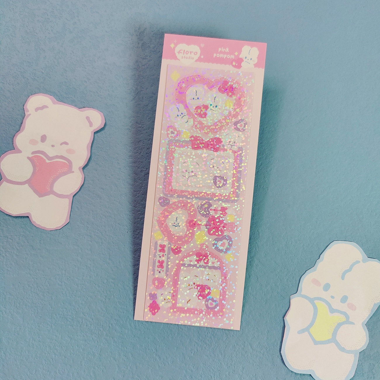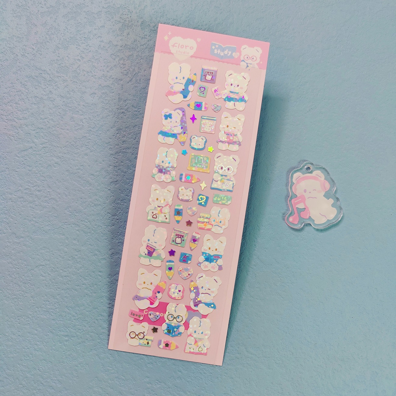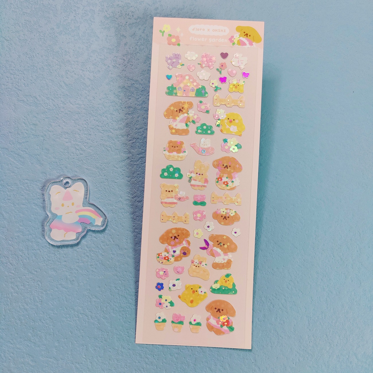 한국 구카 스티커 귀여운 토끼 플로로 은박 반짝이 사진 DIY 스타 추적 스티커 장식 핸드북 재료스토어 가기