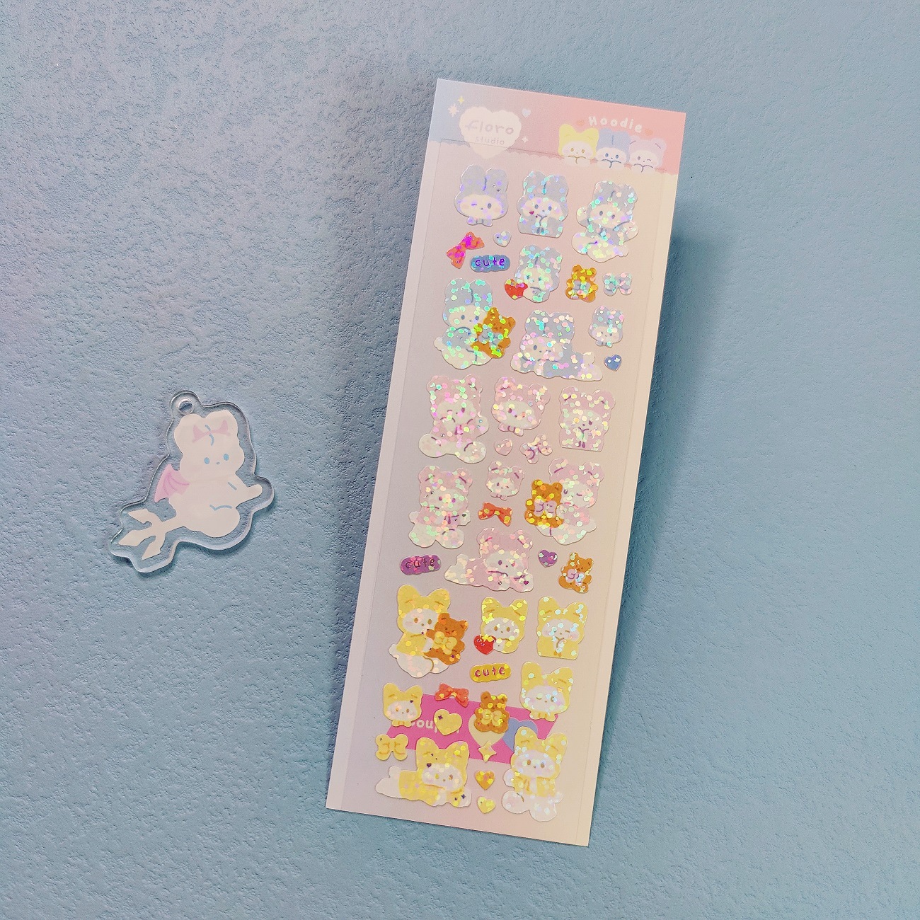 한국 구카 스티커 귀여운 토끼 플로로 은박 반짝이 사진 DIY 스타 추적 스티커 장식 핸드북 재료