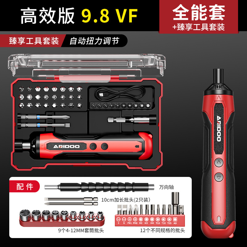 • 고효율 버전 9.8Vf [자동 토크 조정] 만능 세트 + 10 피스 레인보우 배치 헤드
